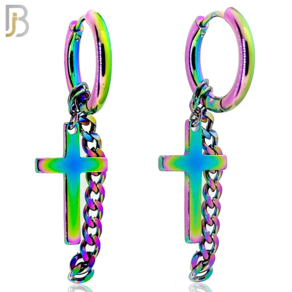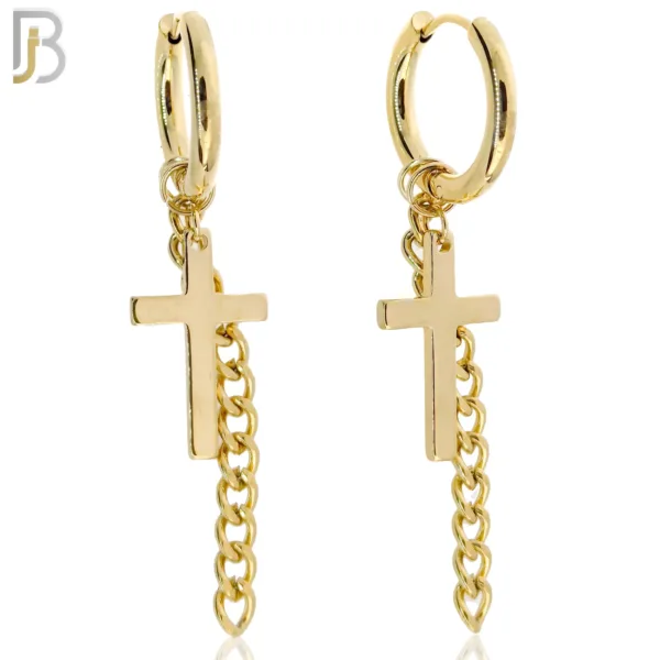 316L Stainless Steel Dangling Cross with Chain Design Huggies Clip On