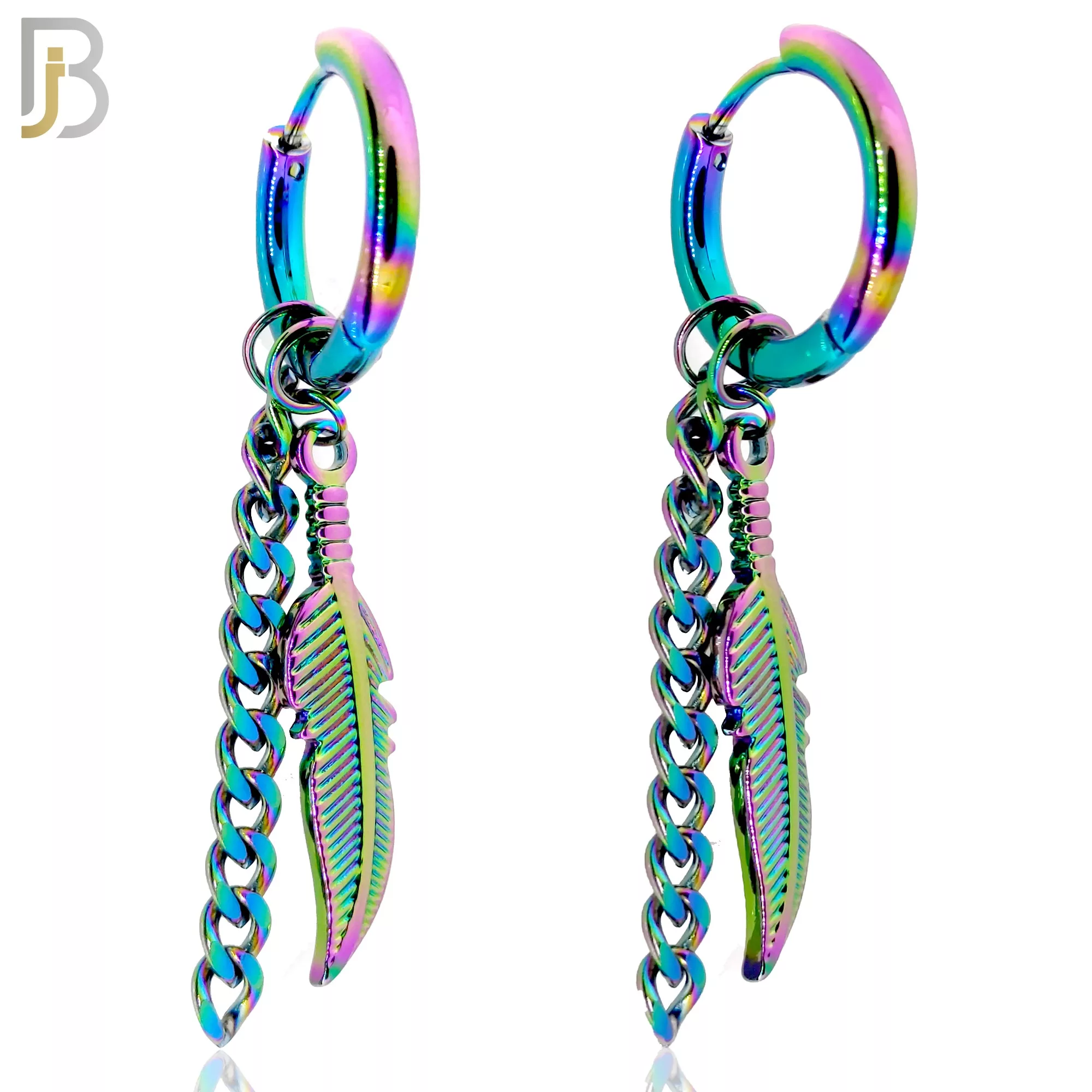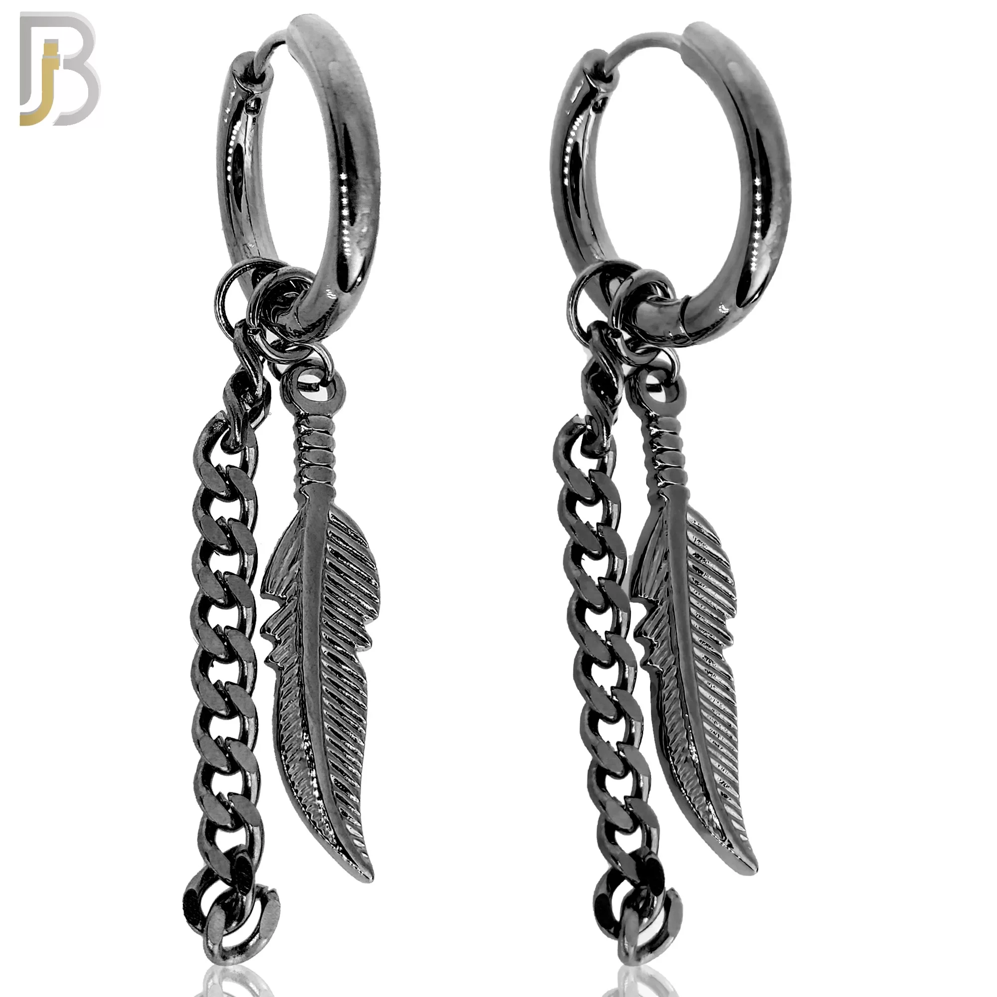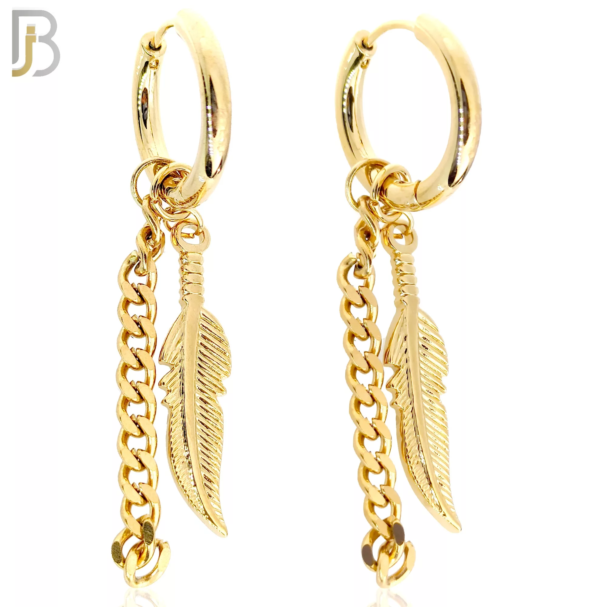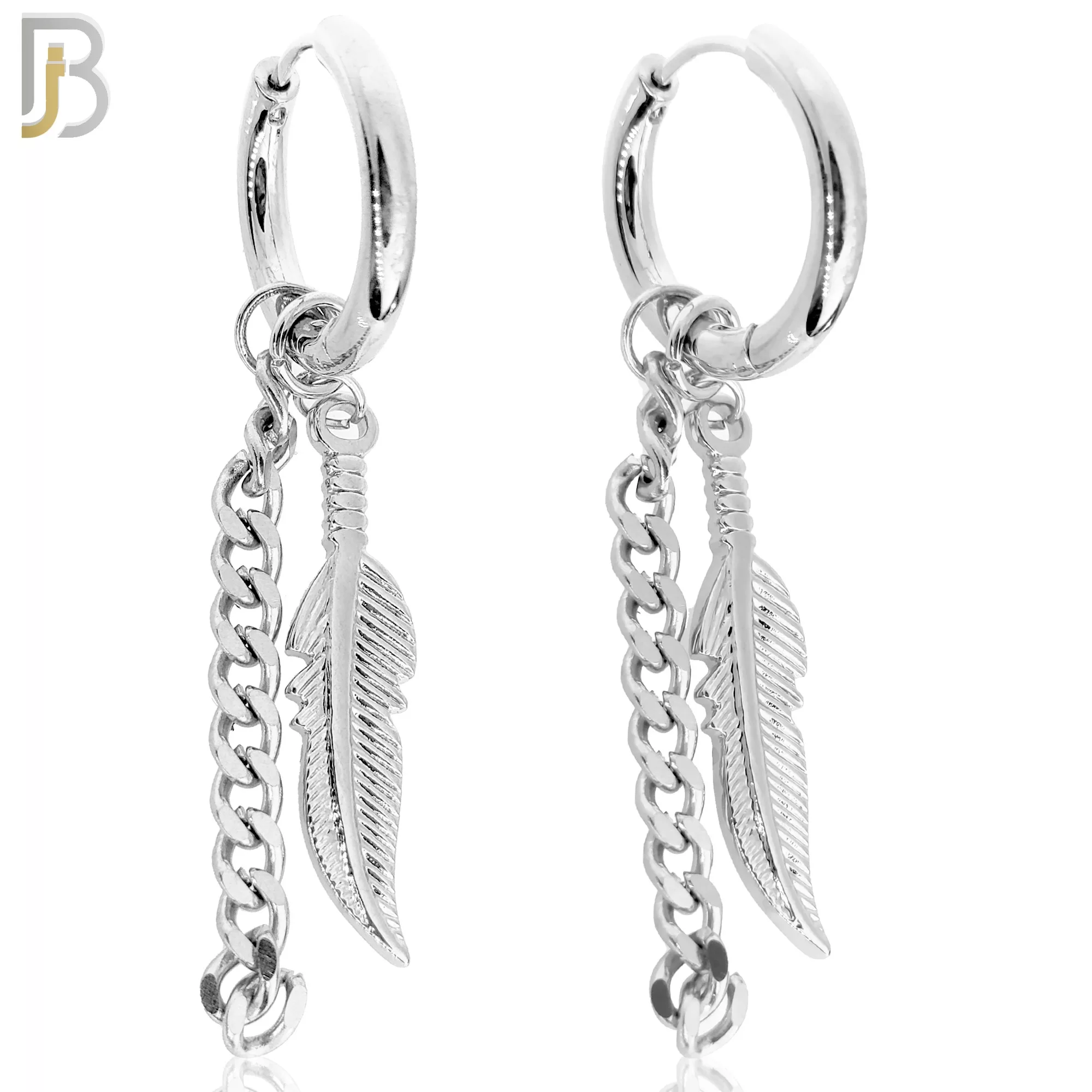 316L Stainless Steel Dangling Feather with Chain Design Huggies Clip On