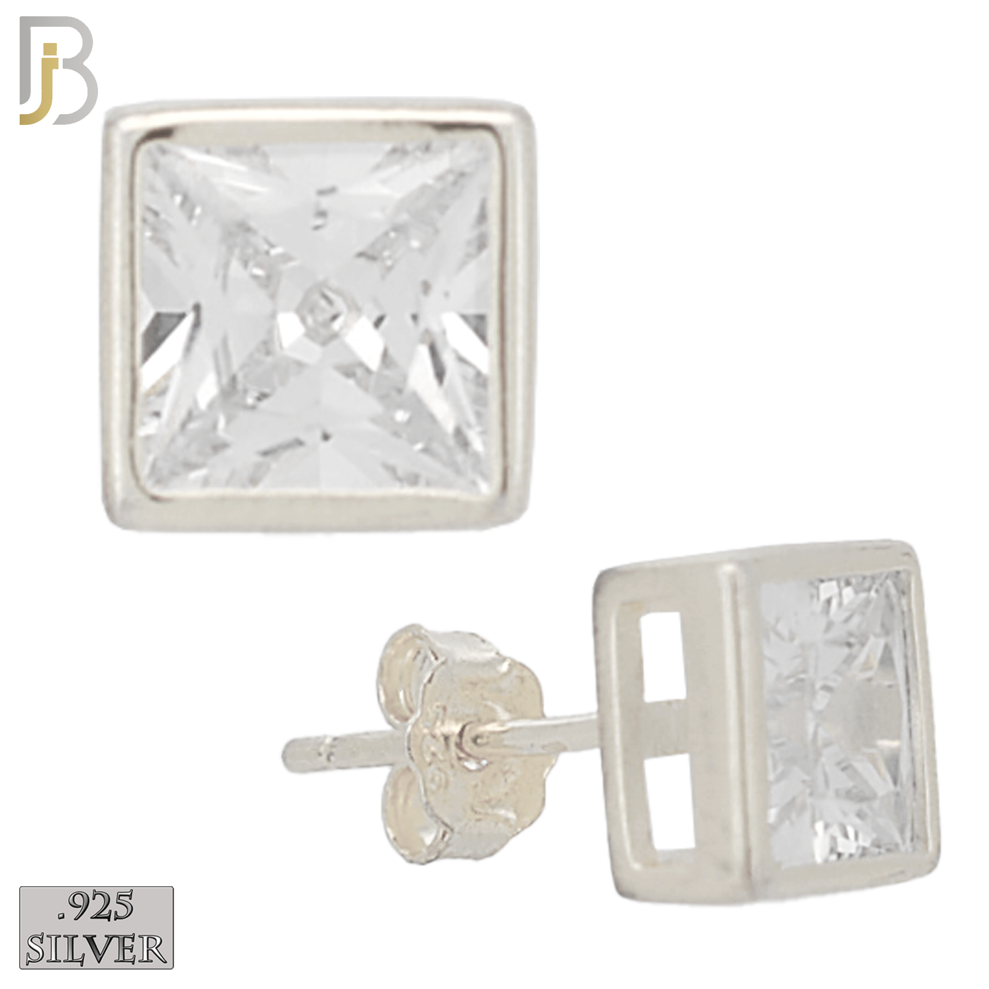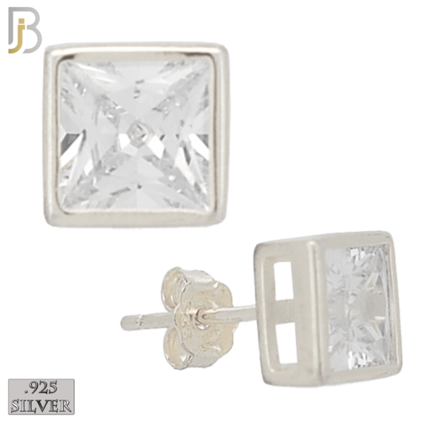 .925 Sterling Silver Ear Stud Square Bezel Setting Clear Zircon