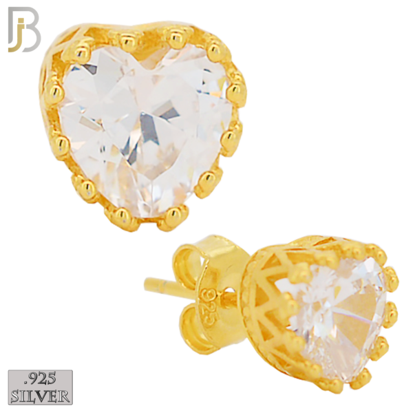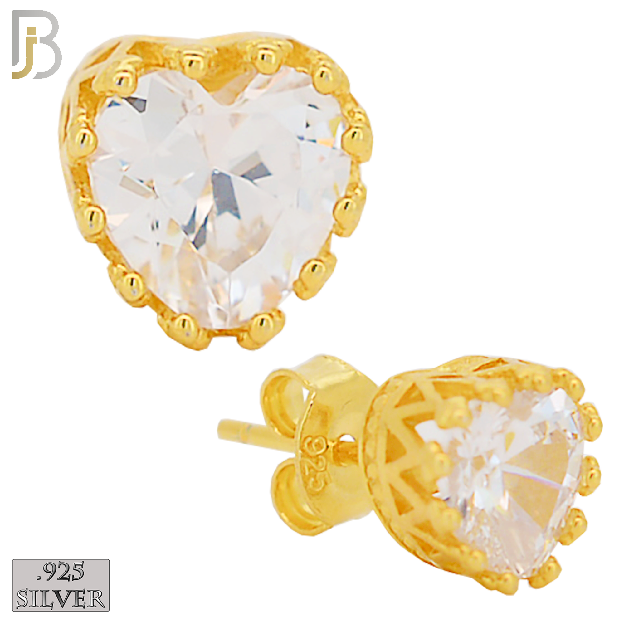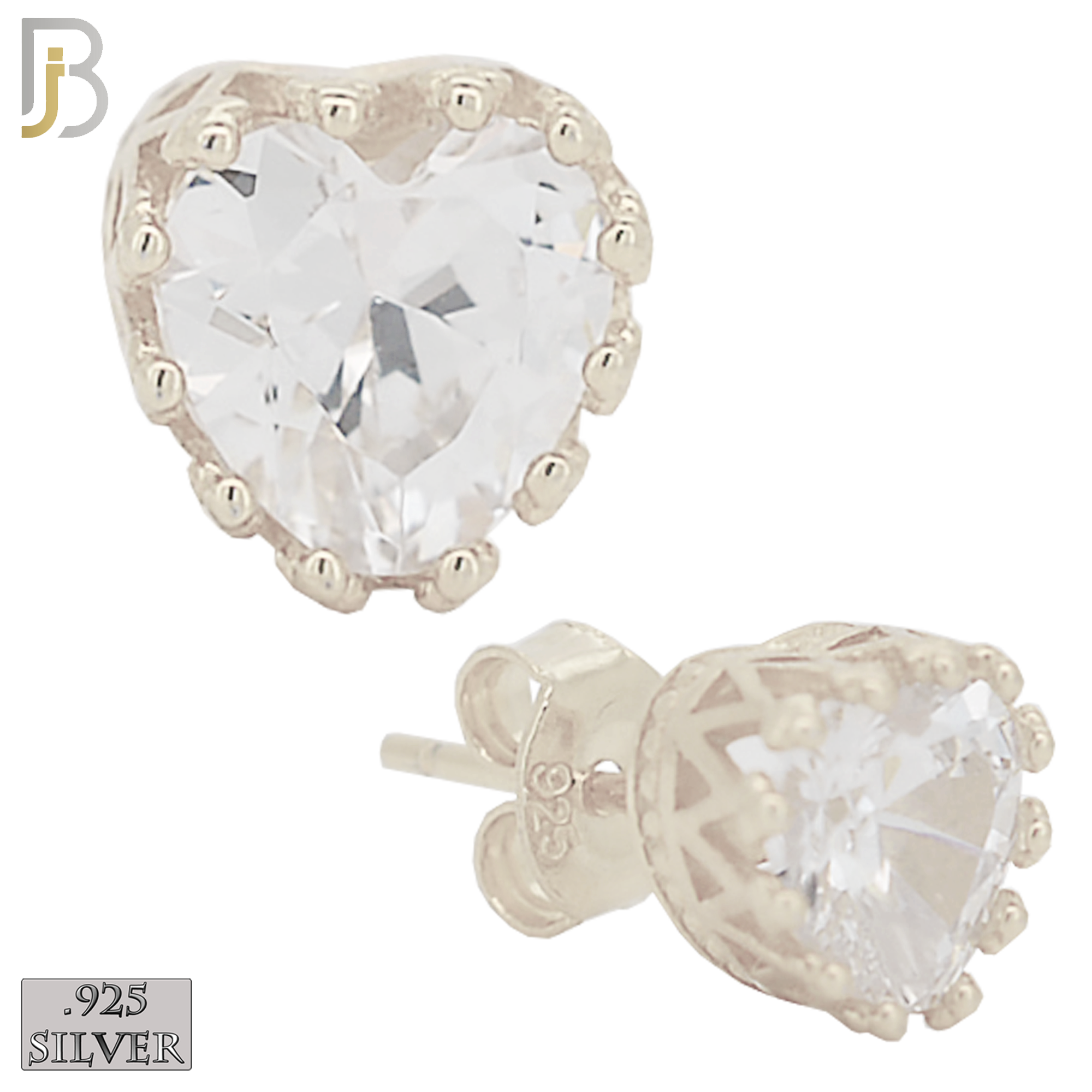.925 Sterling Silver Heart Crown Design Prong Zircon Earring Stud