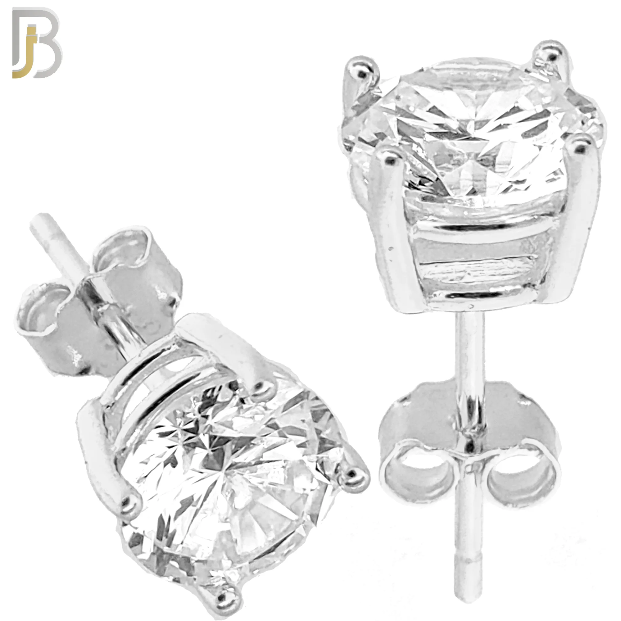 316L Surgical Steel Push Back Stud Earrings Casting Prong Setting with Round Clear Zircon