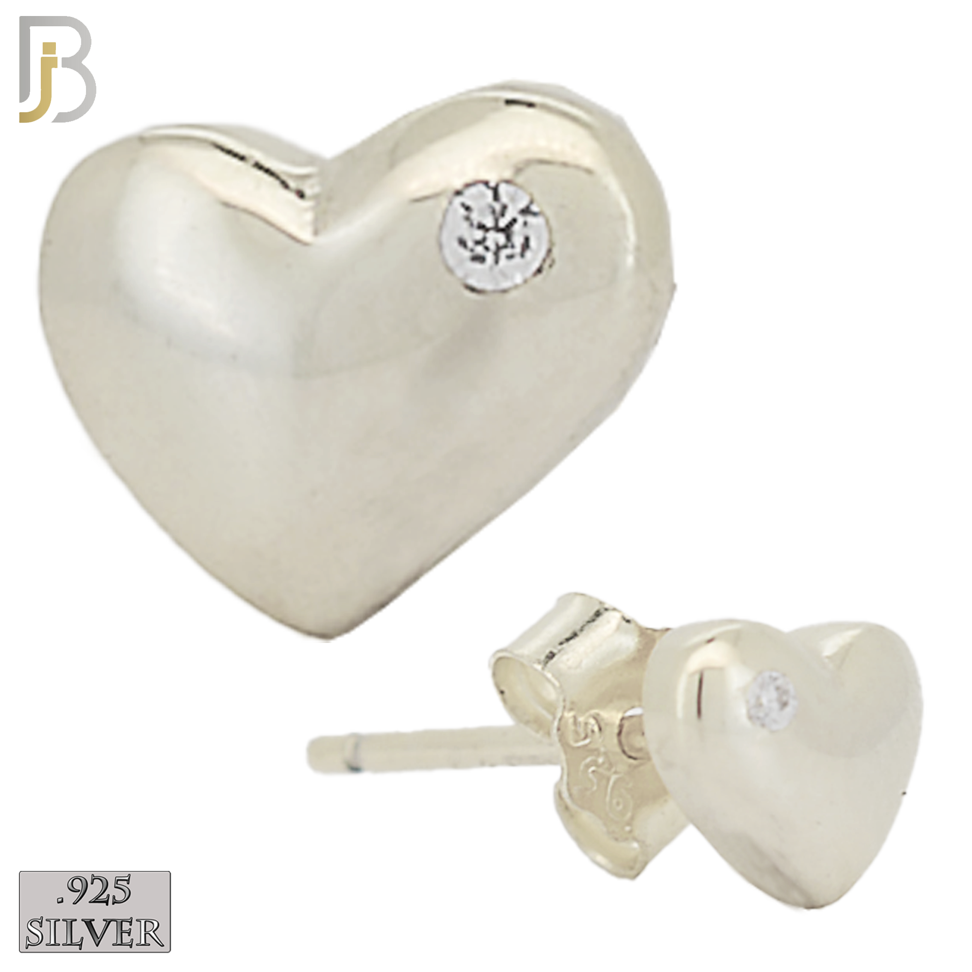 .925 Sterling Silver Heart Design with Zircon Earring Stud