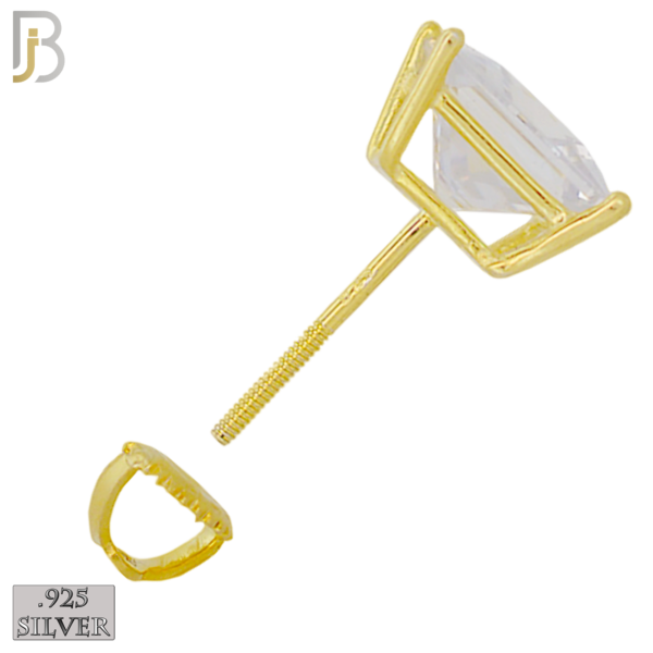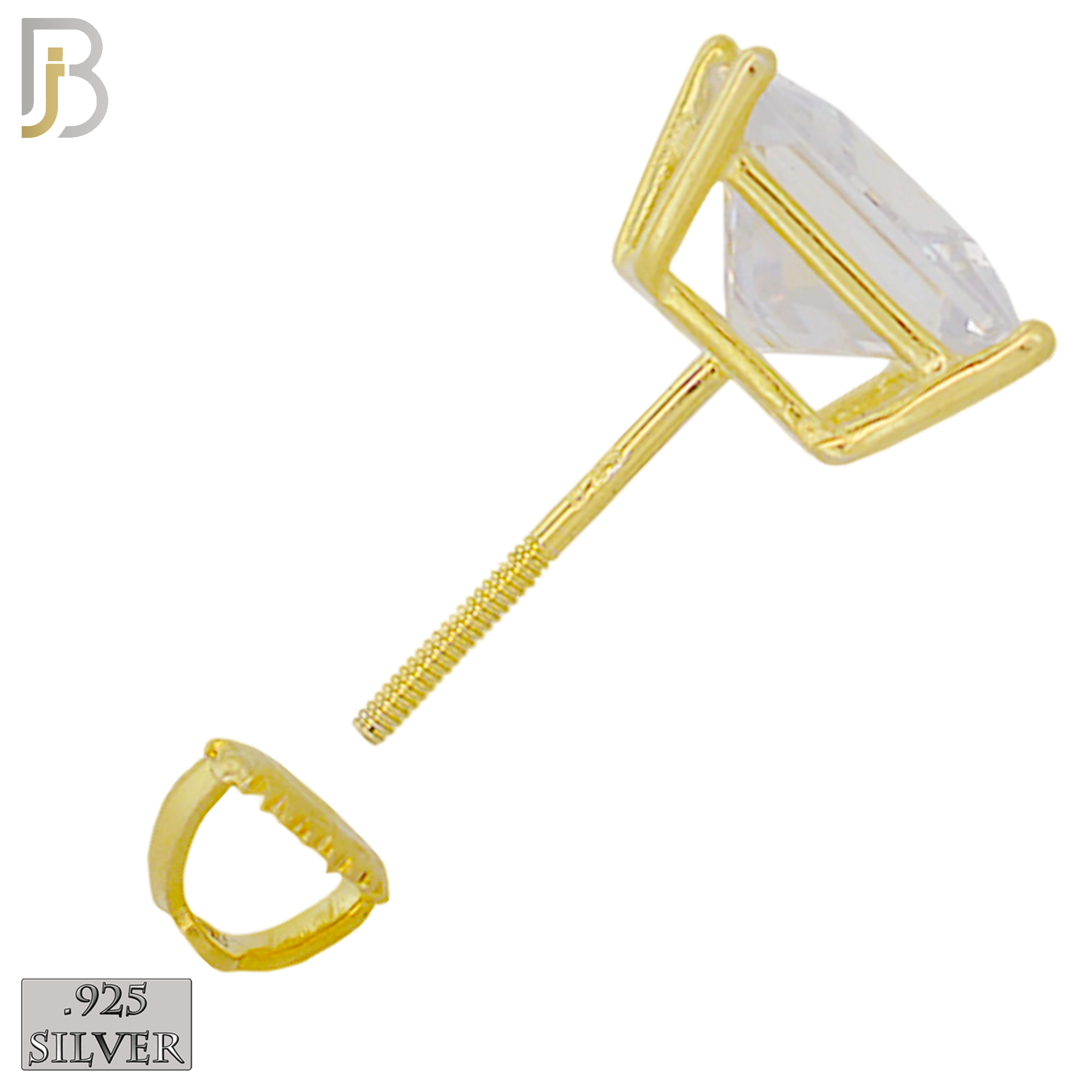 ES80R-GC – .925 Sterling Silver Screw Back Stud Earrings with Square Clear Zircon in Casting Prong Setting