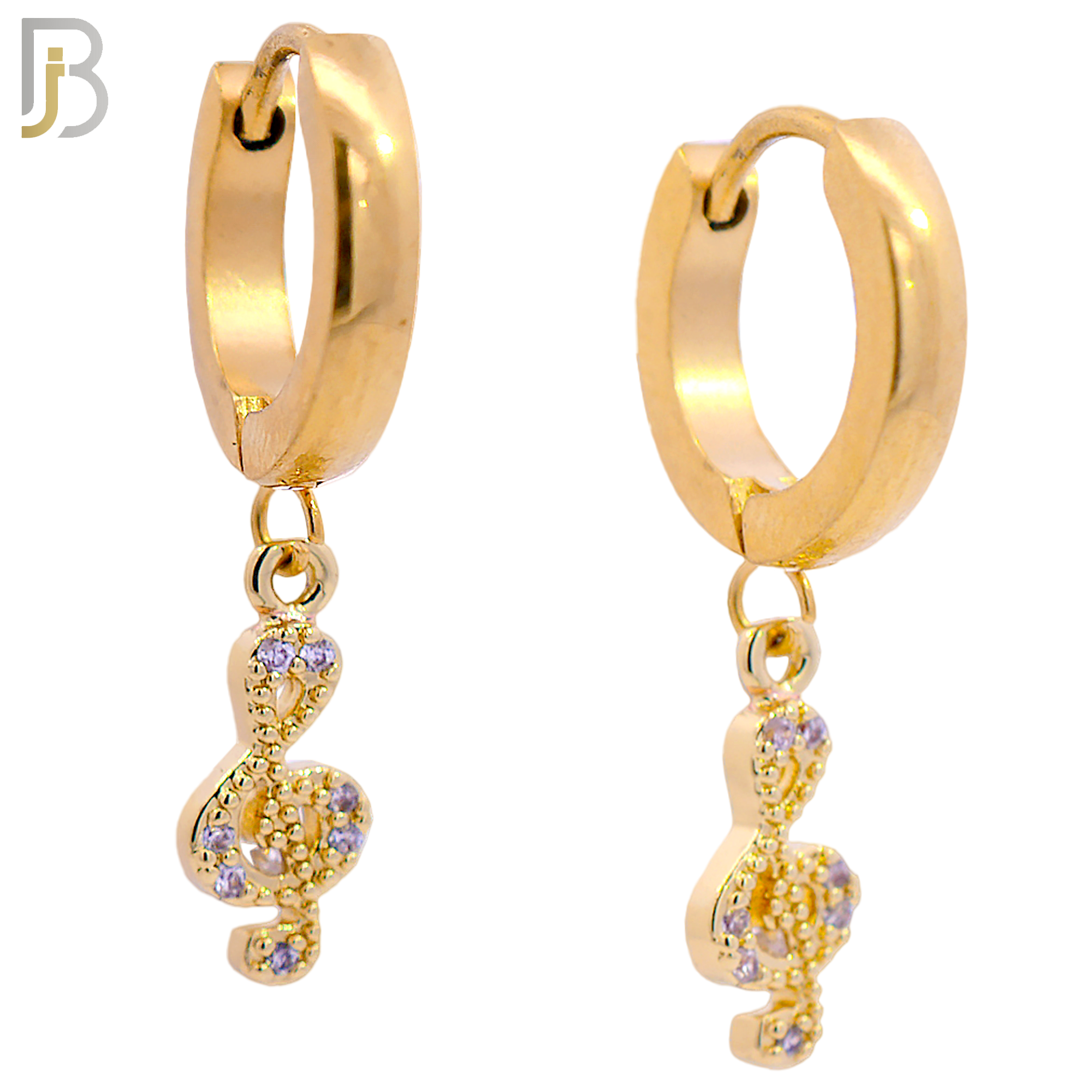 316L Stainless Steel Dangling Treble Clef Notes Zircon Design Huggies Clip On