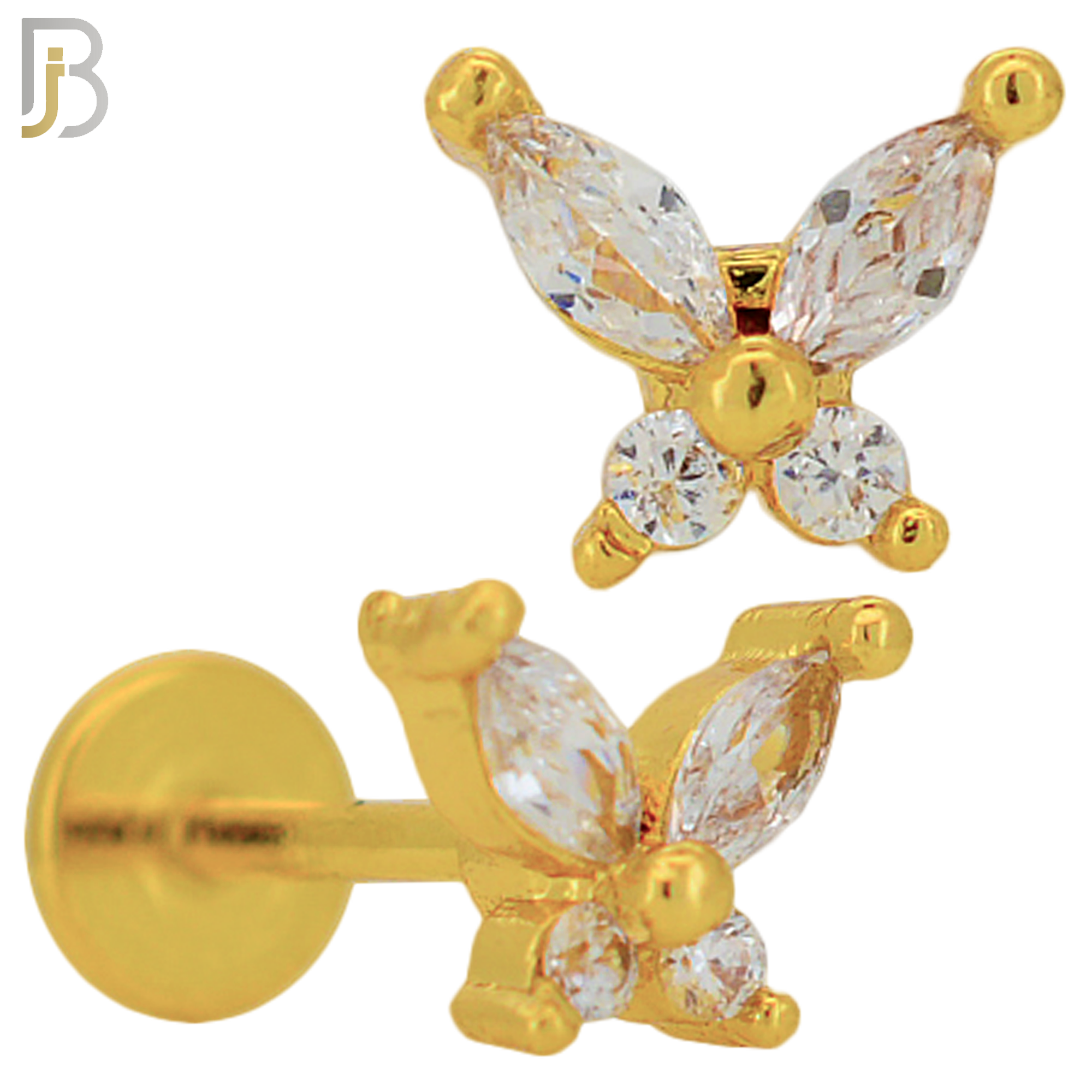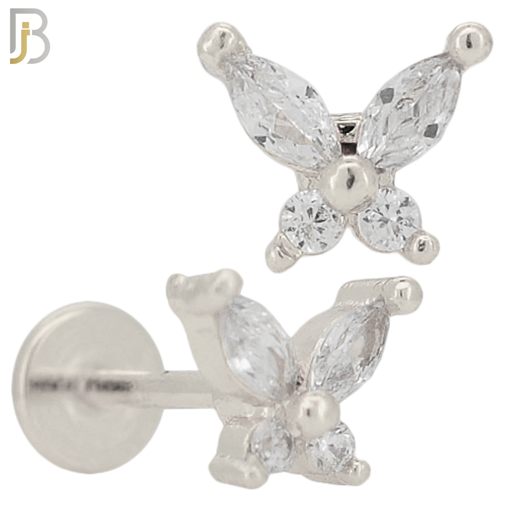 316L Surgical Steel 6mm Tragus / Cartilage Piercing Butterfly with Clear Cubic Zirconia