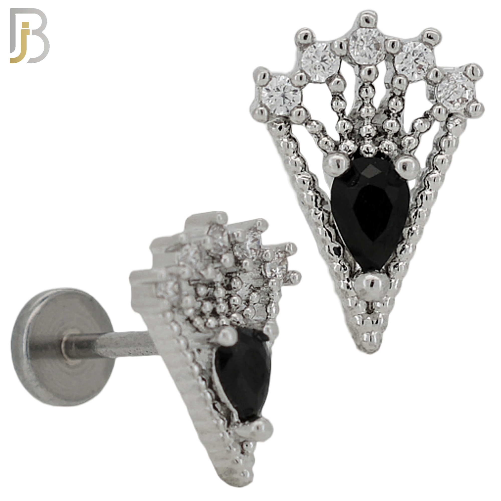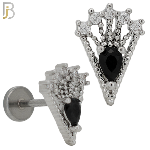 316L Surgical Steel 6mm Tragus / Cartilage Piercing with Triangular Design with Black Cubic Zirconia