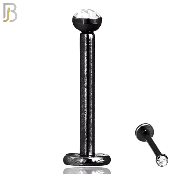 316L Surgical Steel Black Plated Bar Press Fit Zircon Bezel Monroe Labret Screw Internally Threaded Flat Back