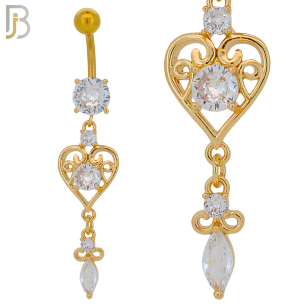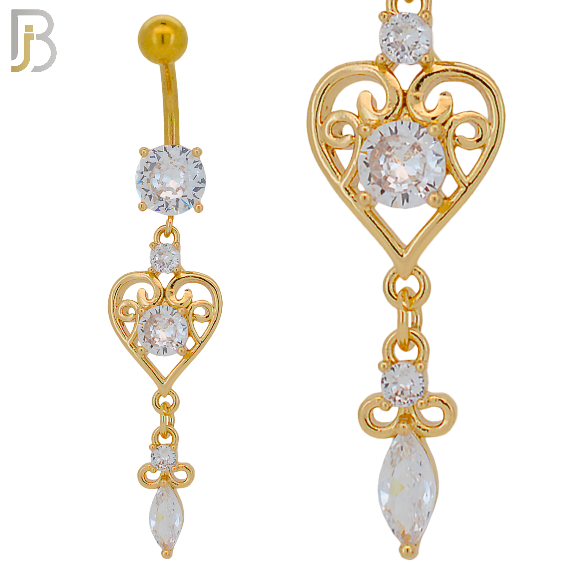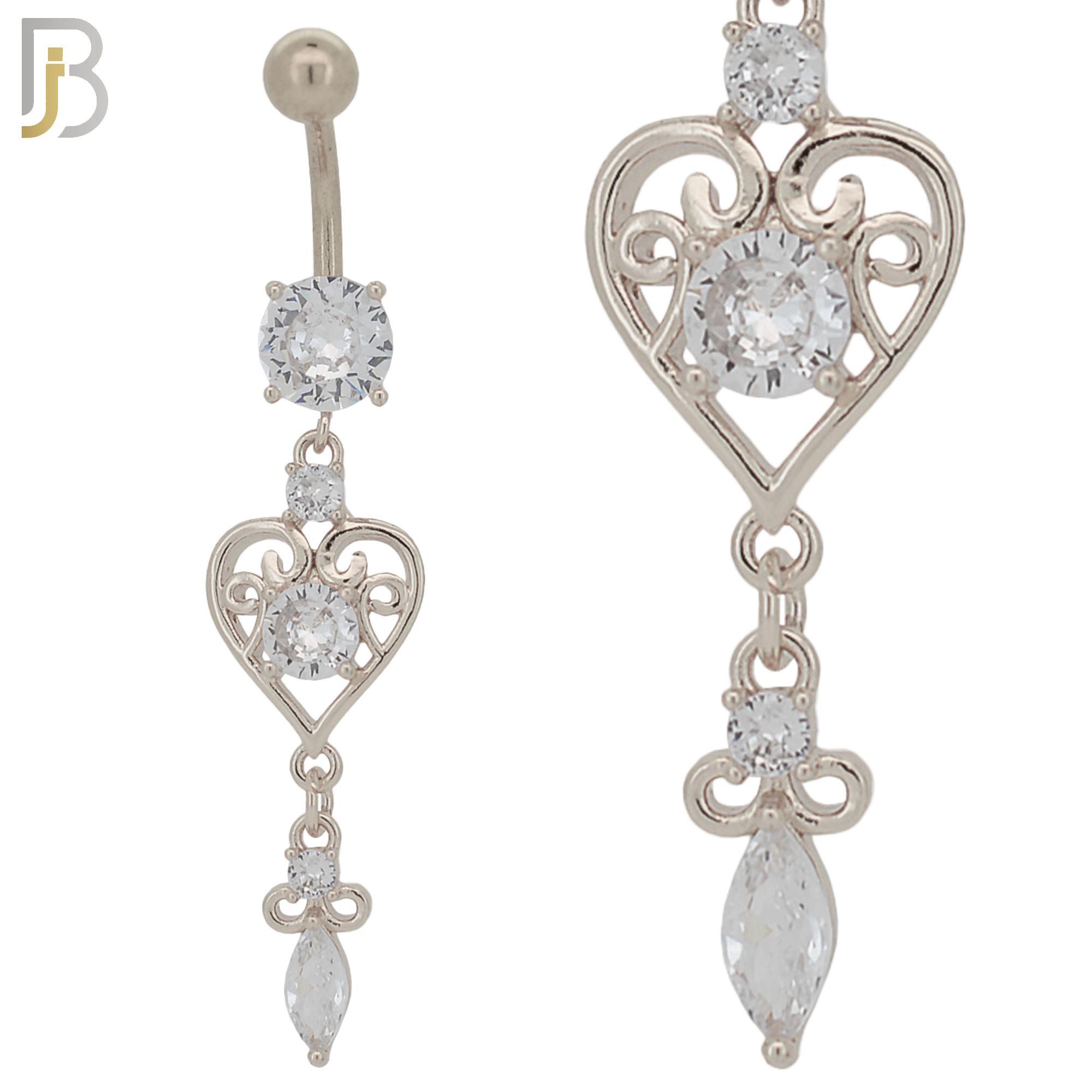 316L Stainless Steel Round Zircon with Dangling Ornate Heart with Zircon Belly Ring