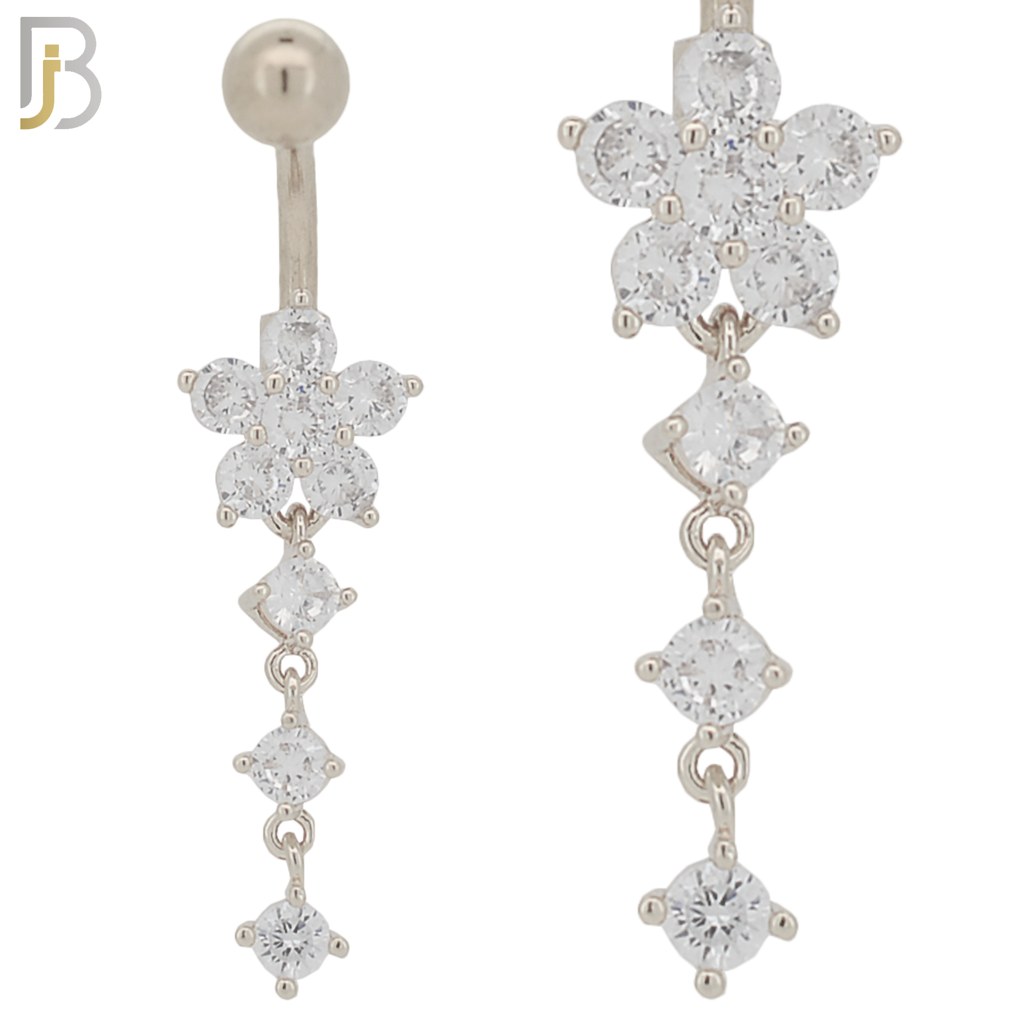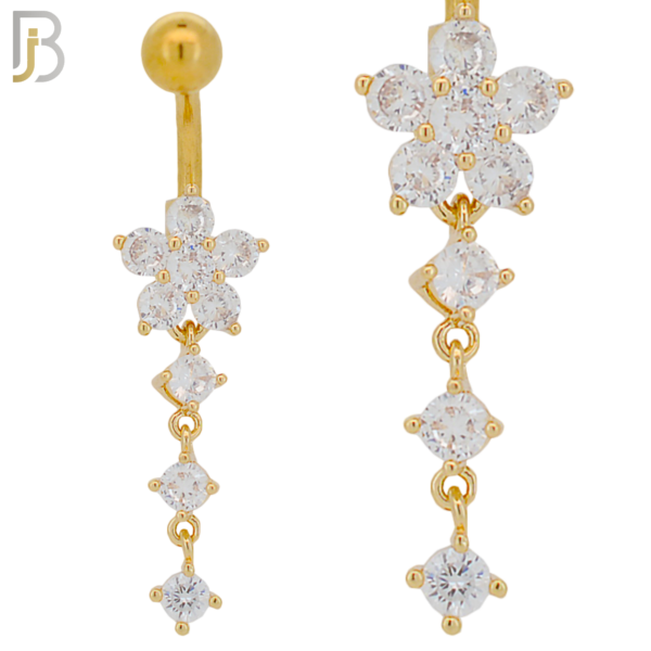 316L Stainless Steel Flower with Three Dangling Line of Zircon Belly Ring