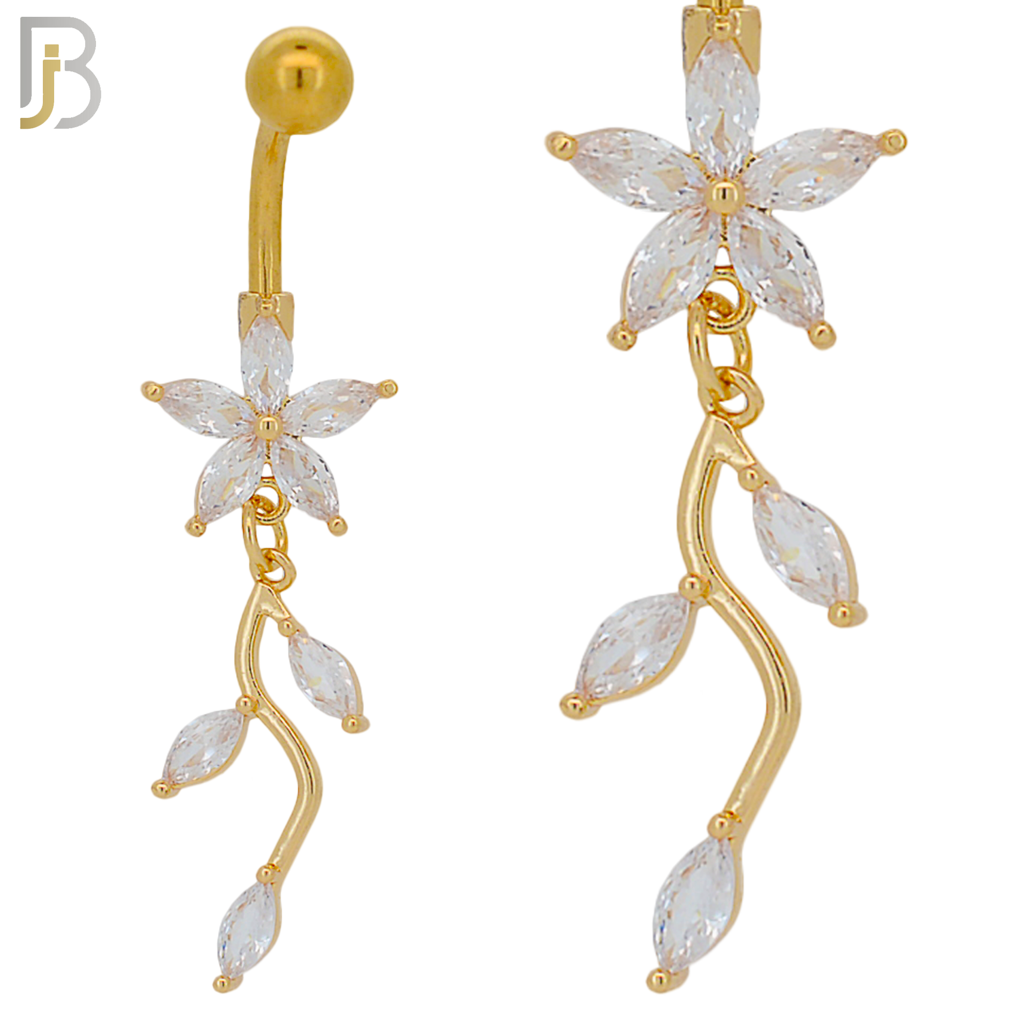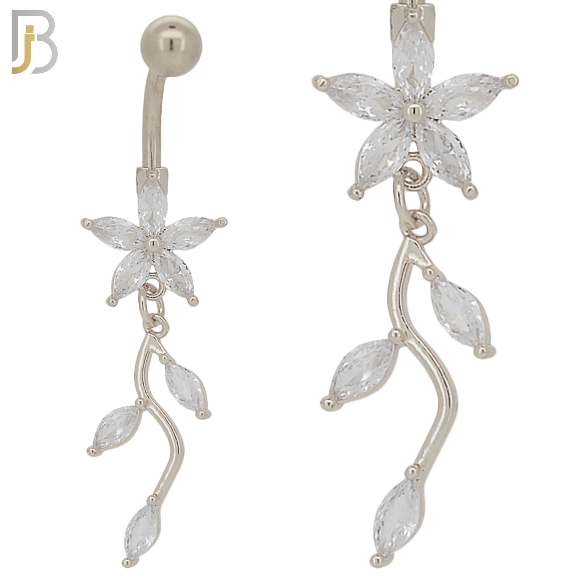 316L Stainless Steel Flower with Dangling Vine with Zircon Belly Ring