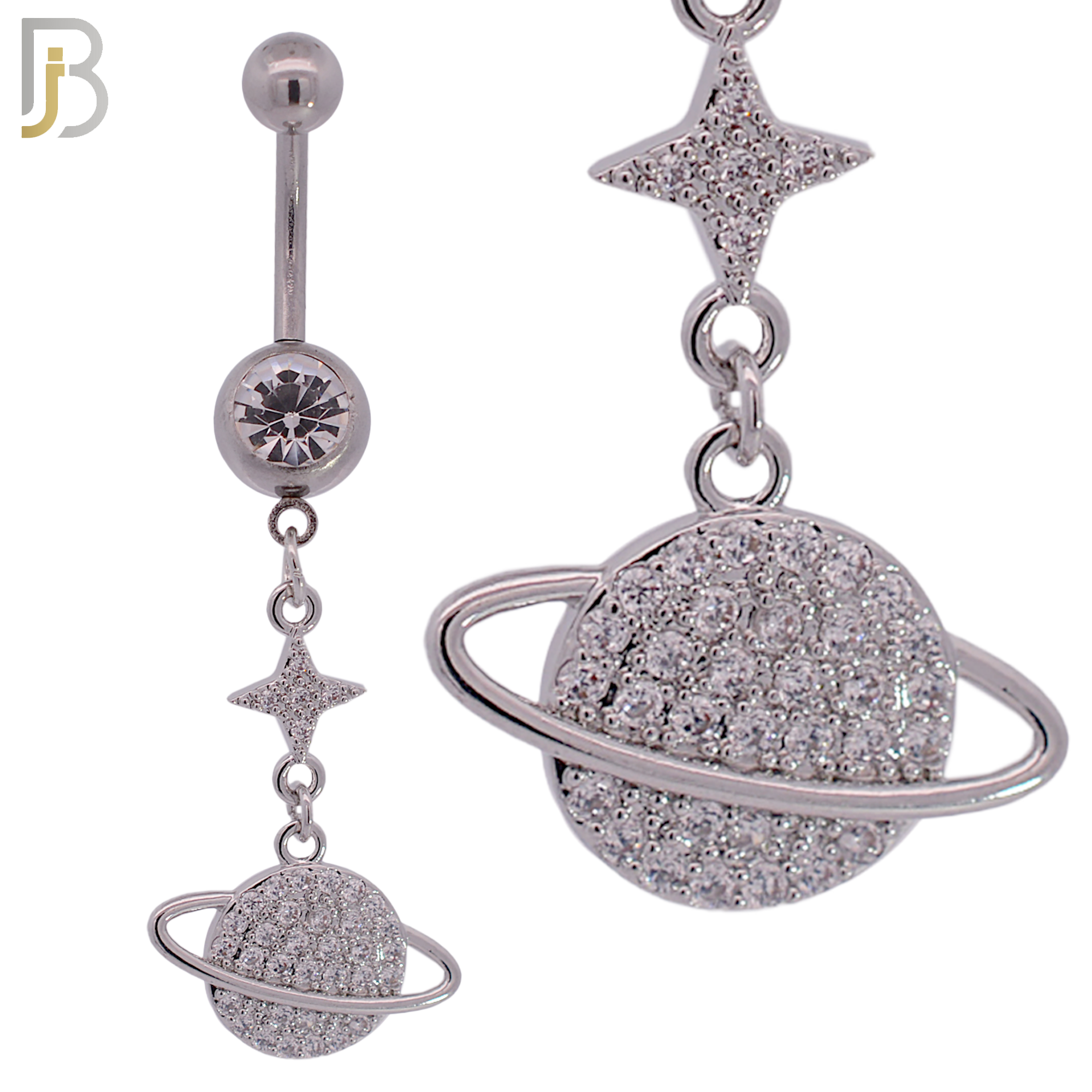 316L Stainless Steel Dangling Planet Saturn with Multi Zircon Belly Ring