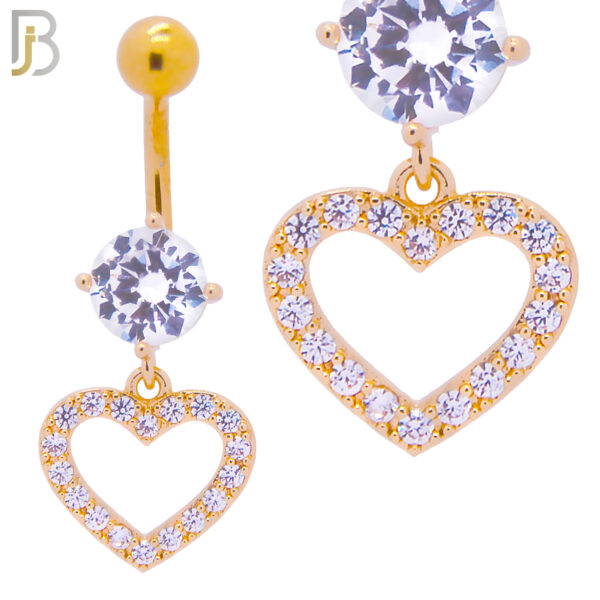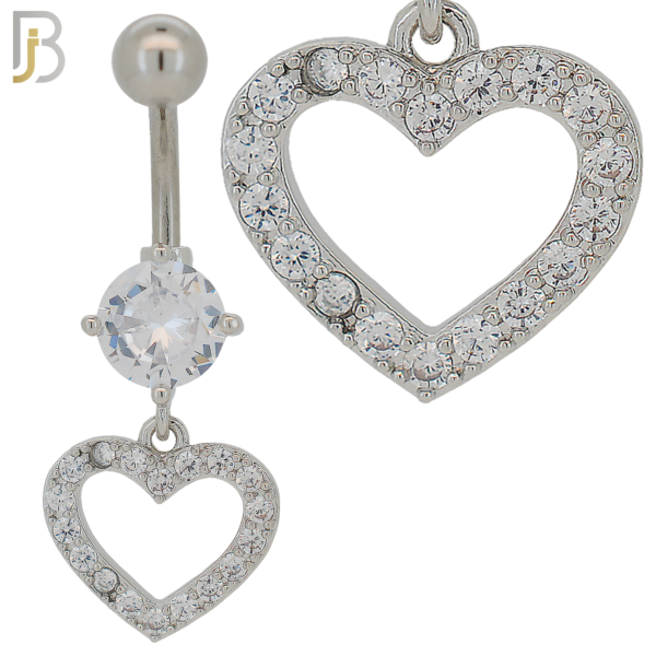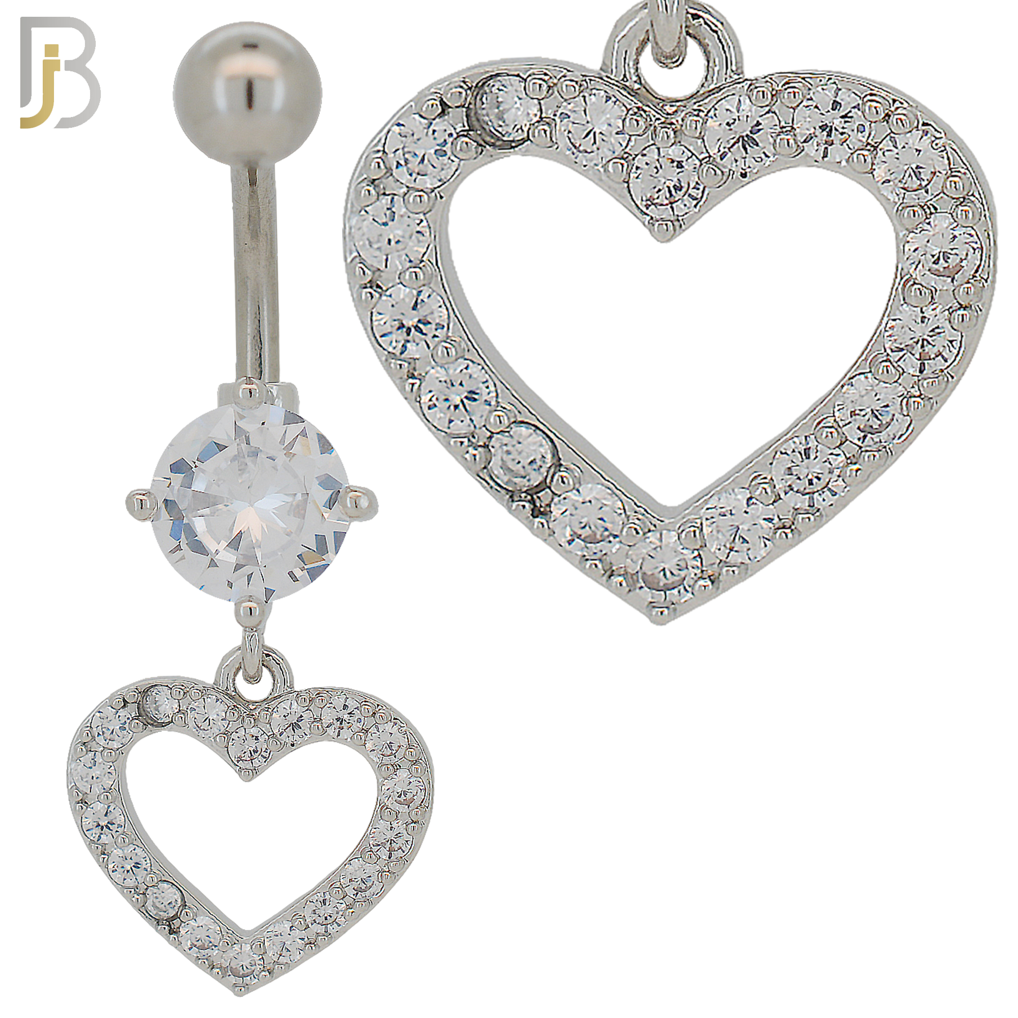 316L Stainless Steel Dangling Hollow Heart with ZIrcon Design Belly Ring with 5mm Screw Ball