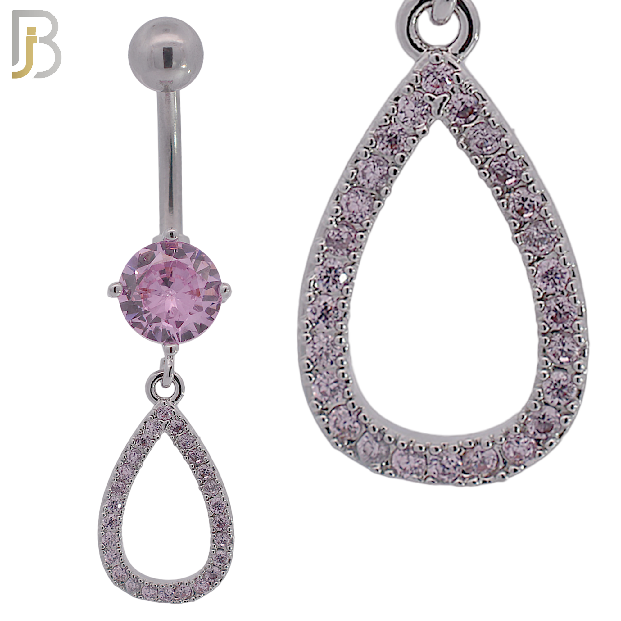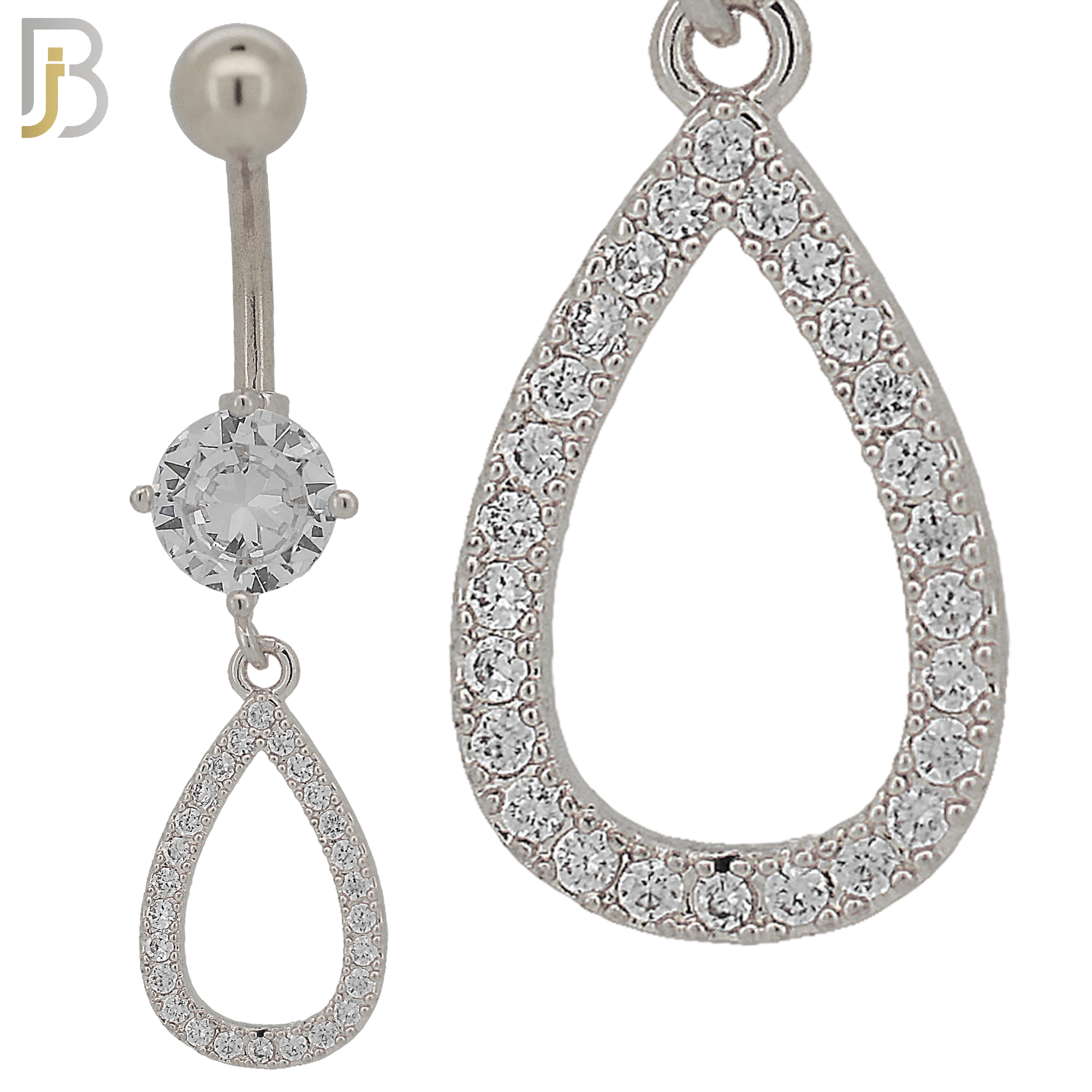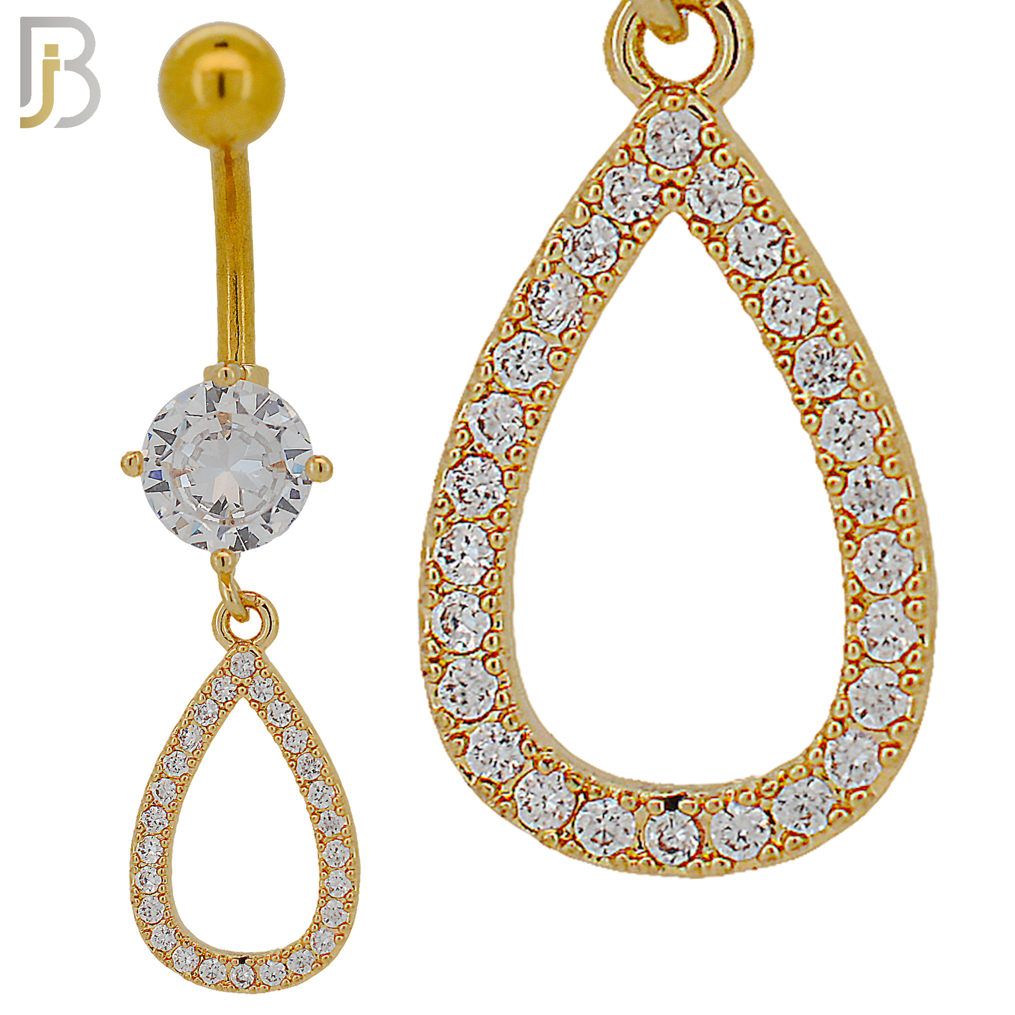 N034 – 316L Stainless Steel Dangling Hollow Teardrop with Zircon Design Belly Ring with 5mm Screw Ball