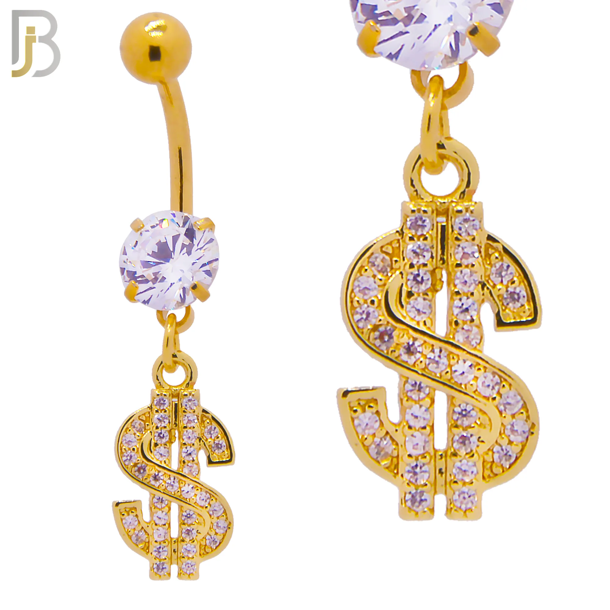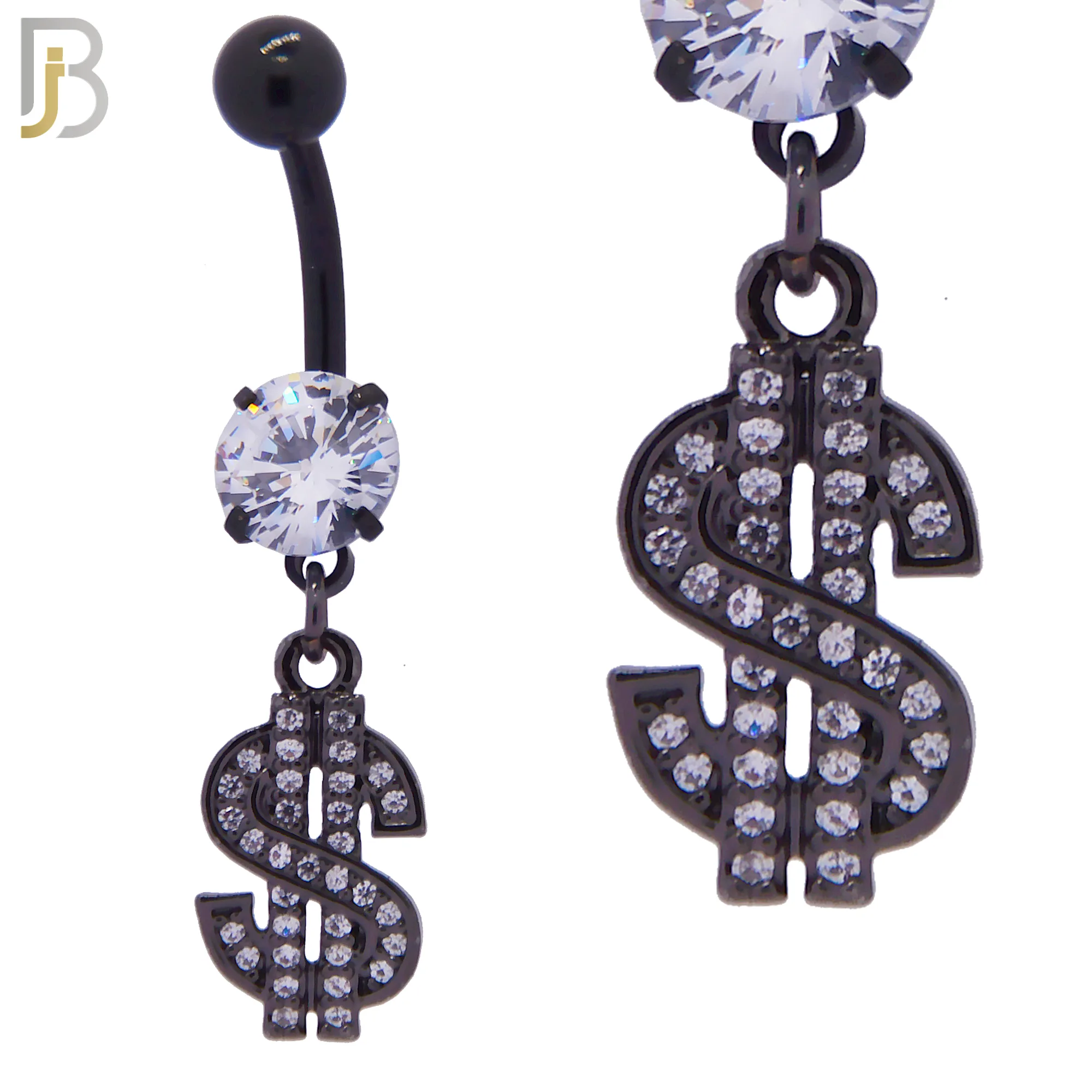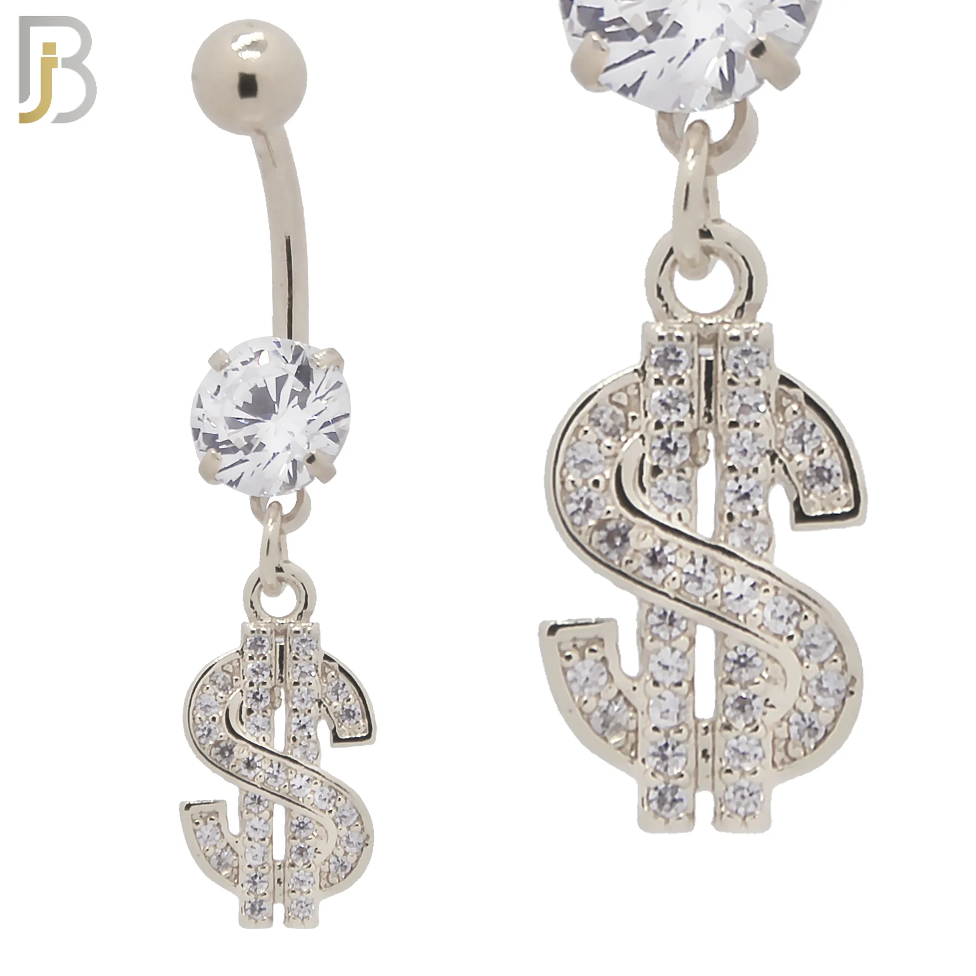 316L Stainless Steel Dangling Dollar Sign with Zircon Design Belly Ring with 5mm Screw Ball