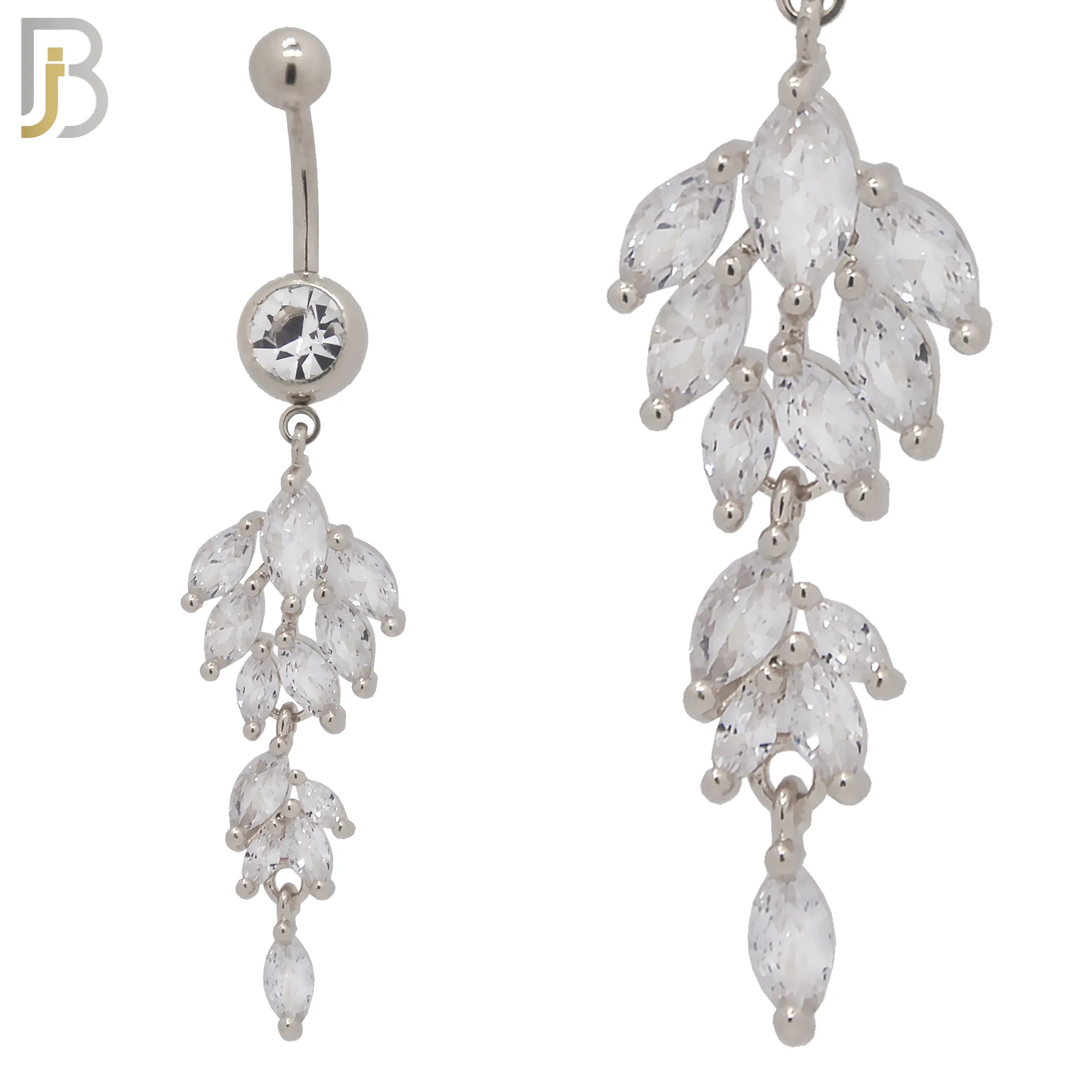 316L Stainless Steel Dangling Leaves Design Belly Ring with 5mm Screw Ball Top