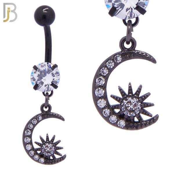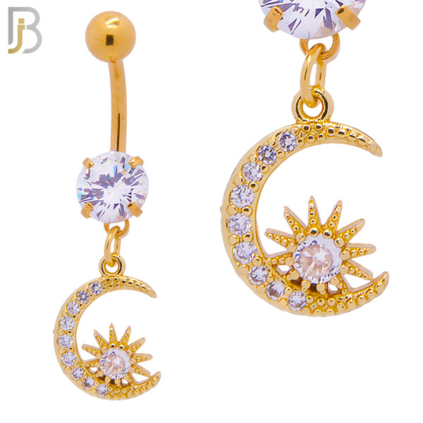 N069 – 316L Stainless Steel Dangling Moon and Sun Zircon Design Belly Ring with 5mm Screw Ball