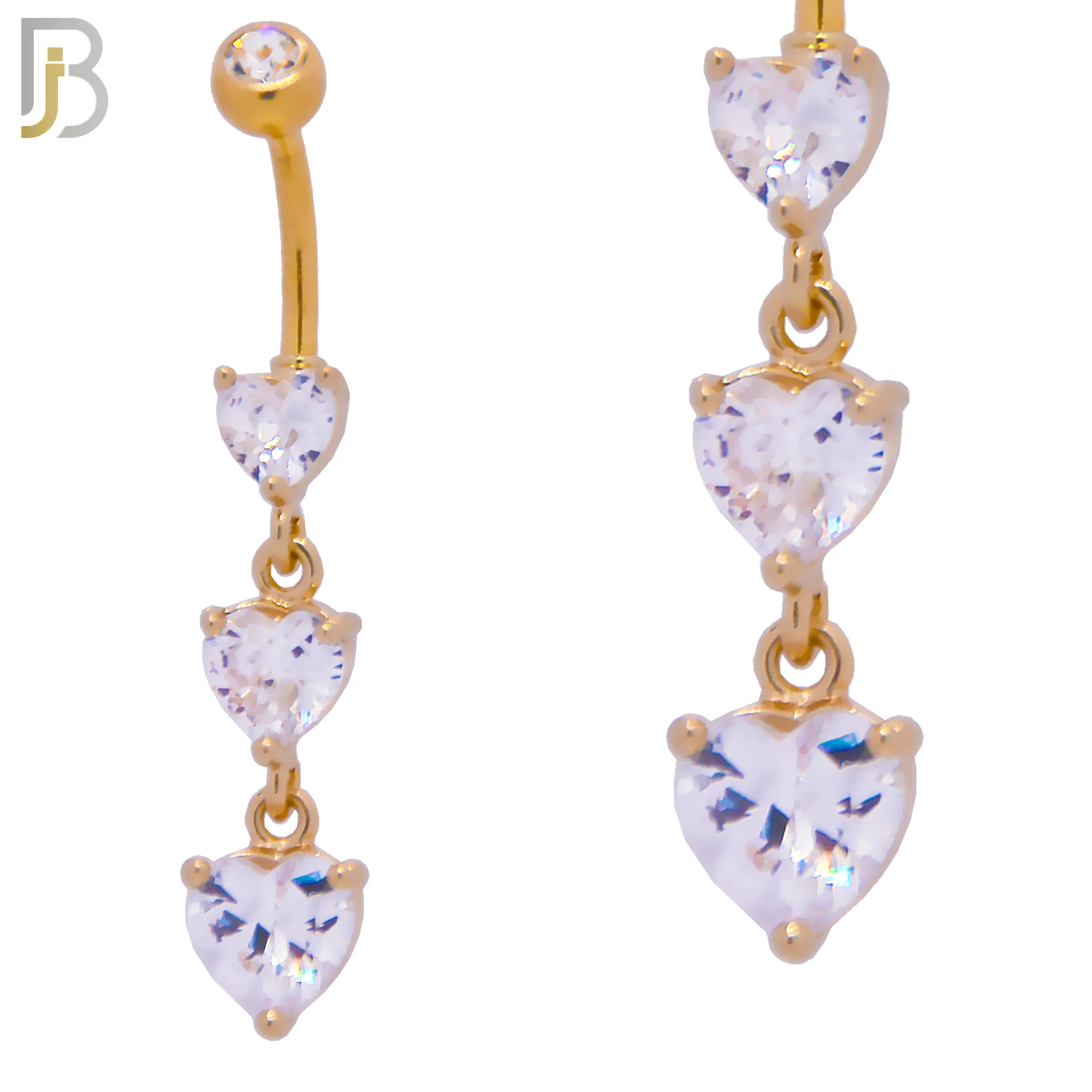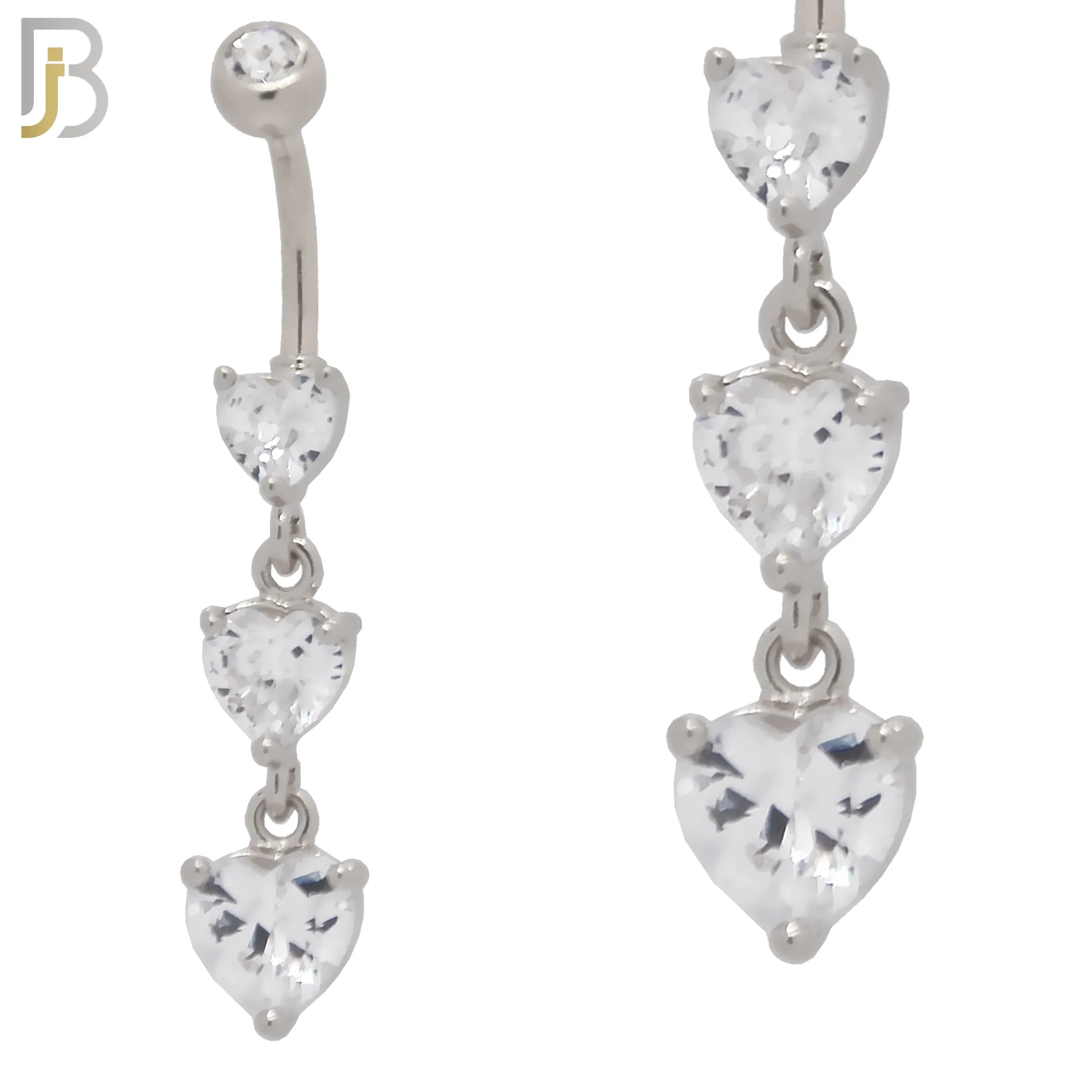 N082 – 316L Stainless Steel Three Heart Shaped CZ Dangling Belly Ring