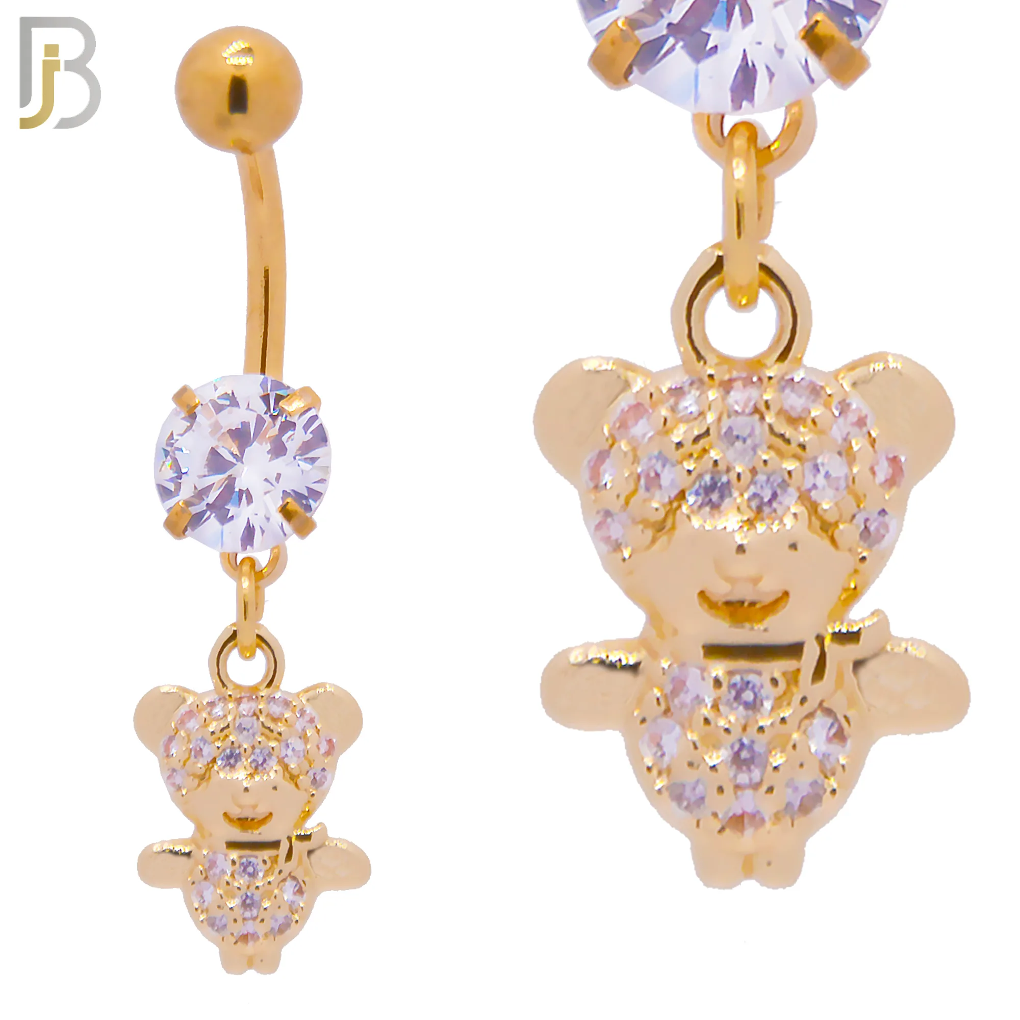 316L Stainless Steel Dangling Teddy Bear with CZ Belly Ring
