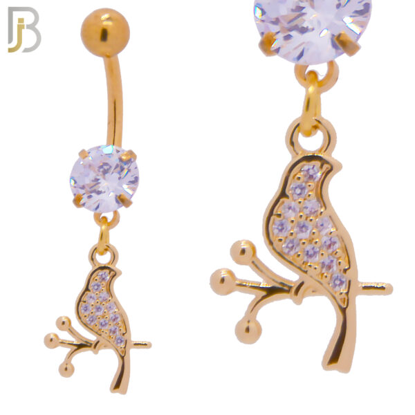 316L Stainless Steel Dangling Bird on Branch with CZ Belly Ring