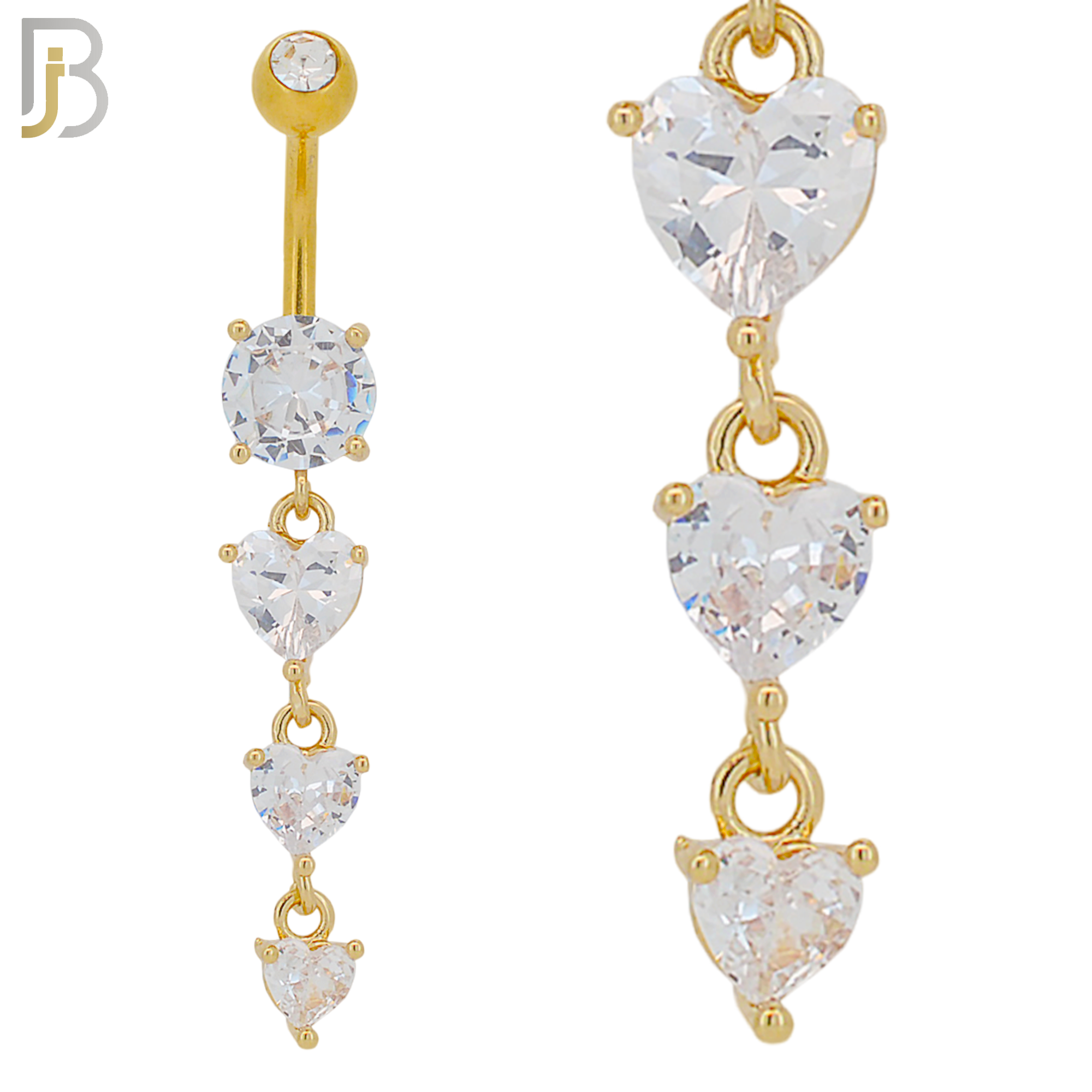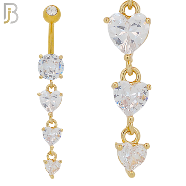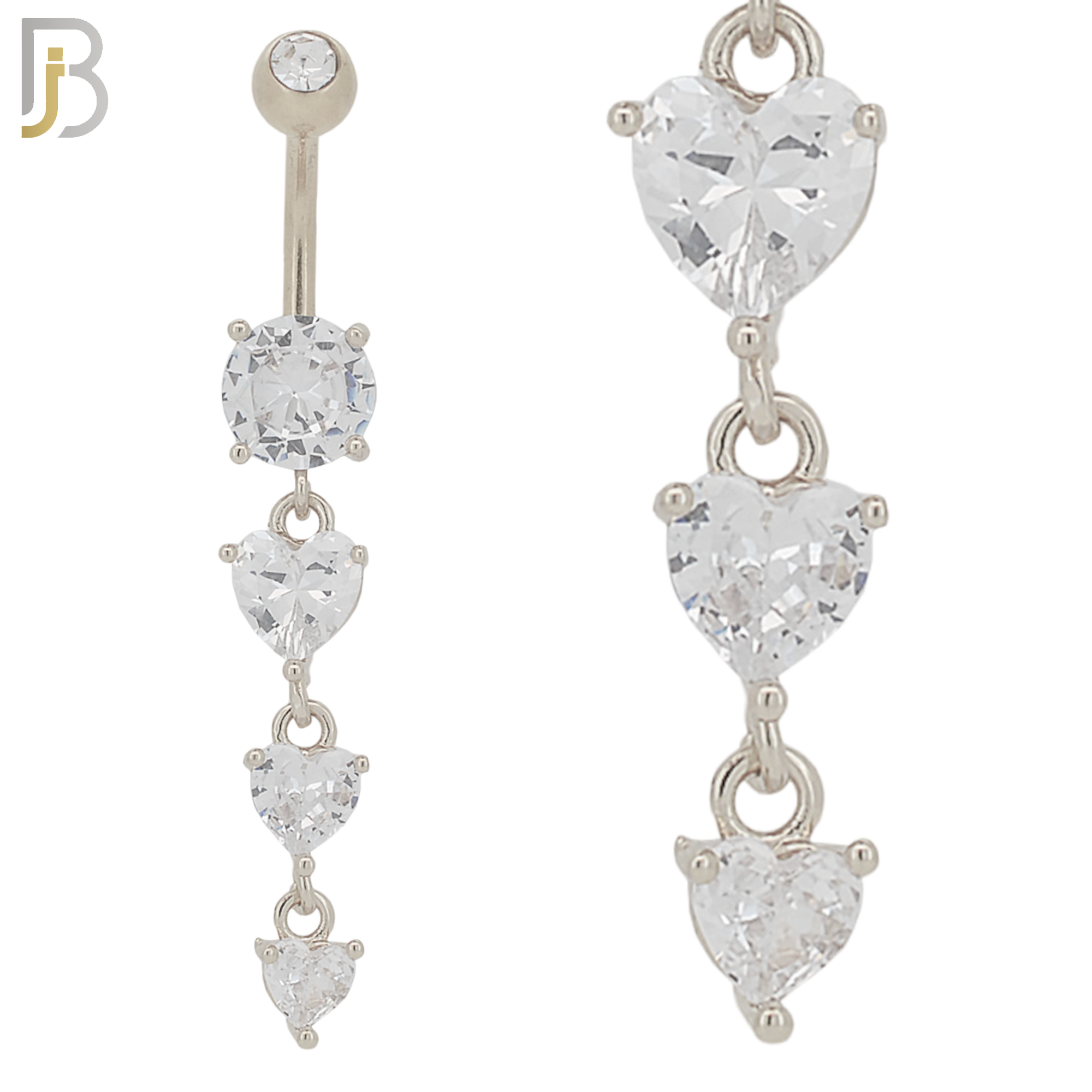 N091 – 316L Stainless Steel Round Zircon with Dangling Line of Heart Shaped Zircon Belly Ring