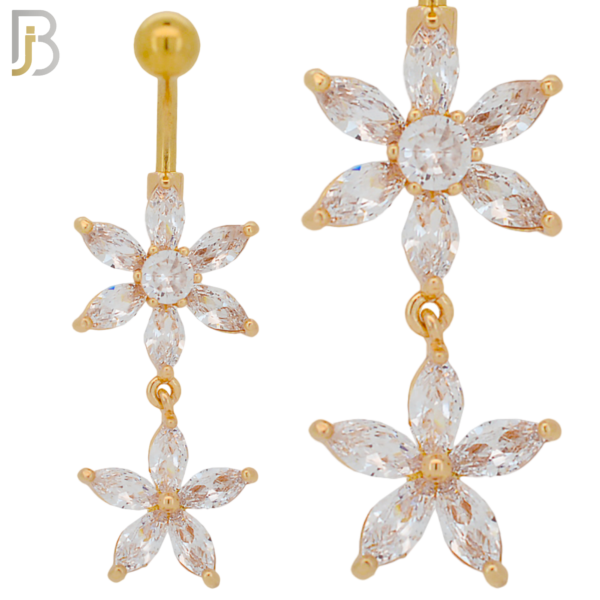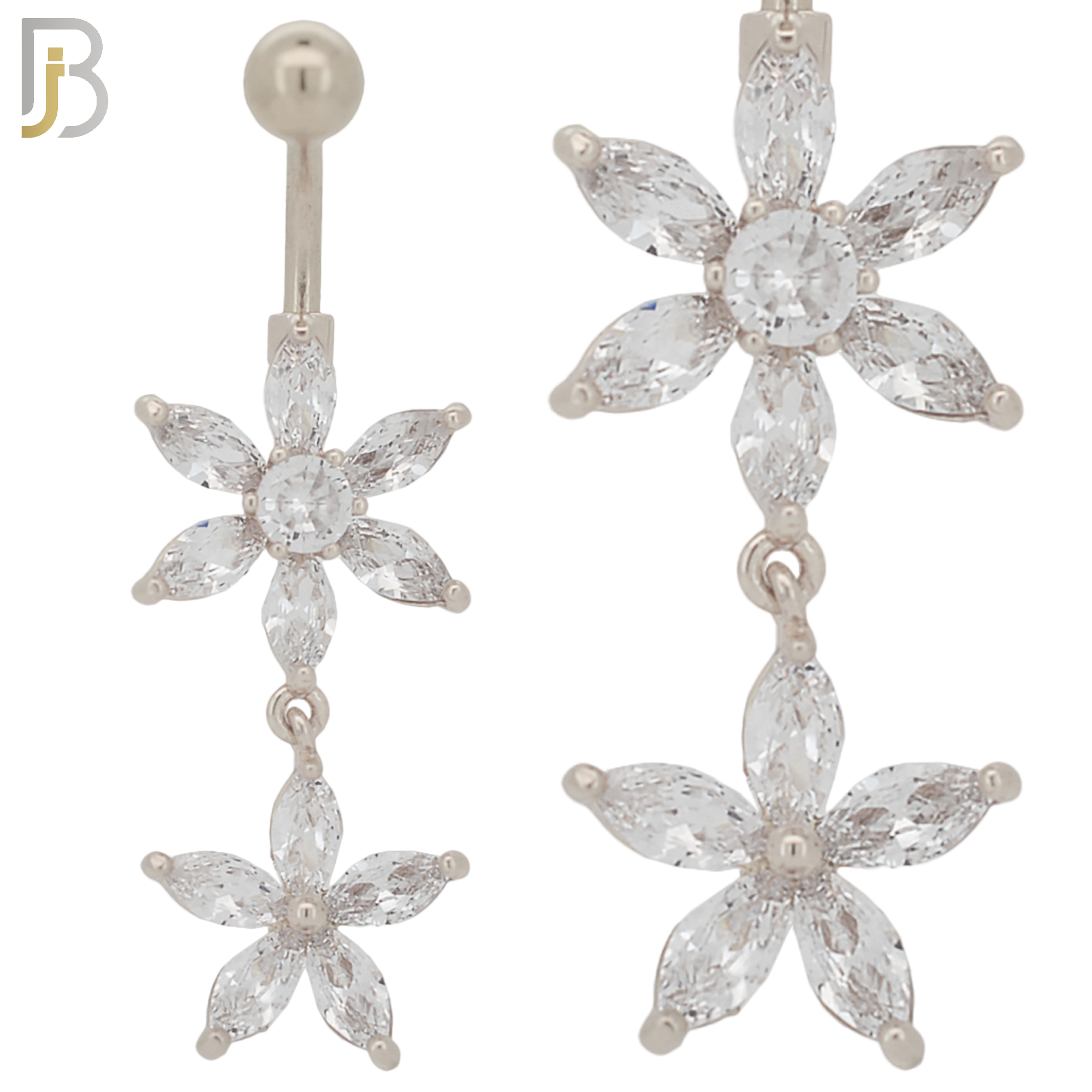 316L Stainless Steel Double Flower Belly Ring with Zircon