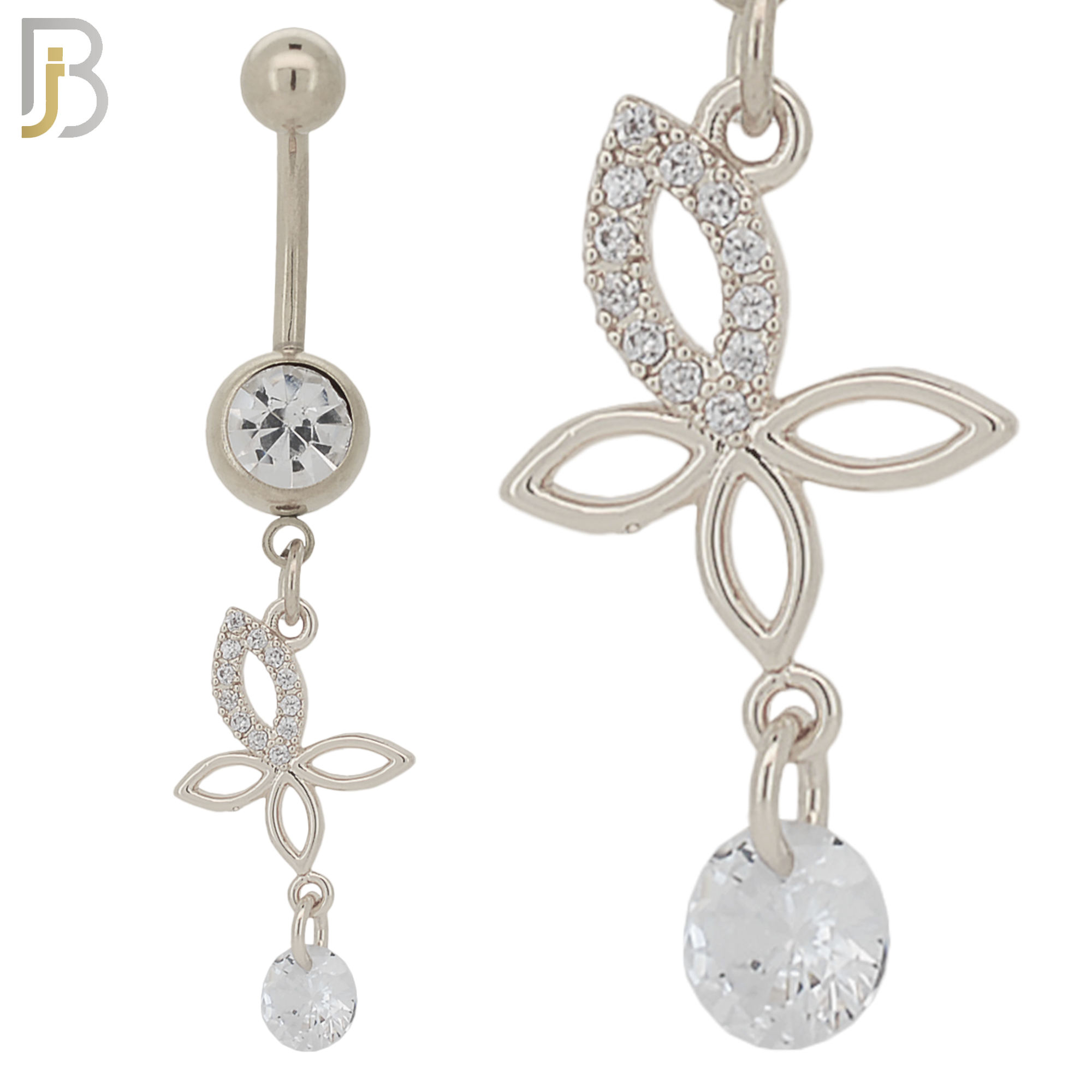 316L Stainless Steel Round Zircon In Bezel Setting with Dangling Butterfly with Round Zircon Belly Ring