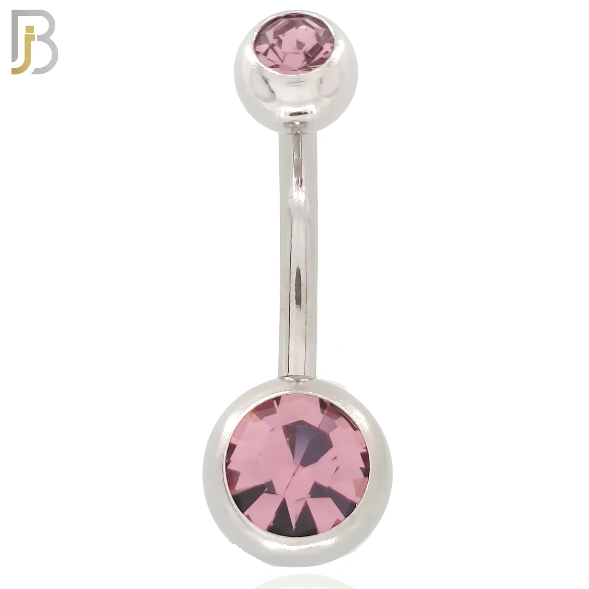 316L Stainless Steel Double Gem Bezel Set Light Amethyst Zircon Plain Banana Belly Navel Ring