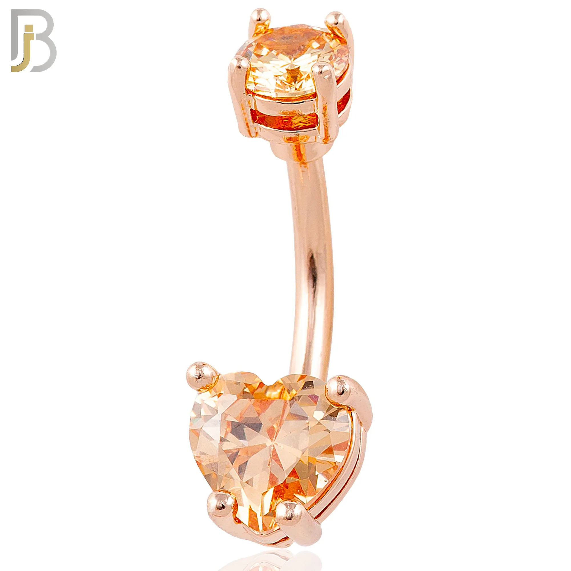 316L Stainless Steel Rose Gold Plated Heart Prong Setting Zircon Banana Belly Navel Ring