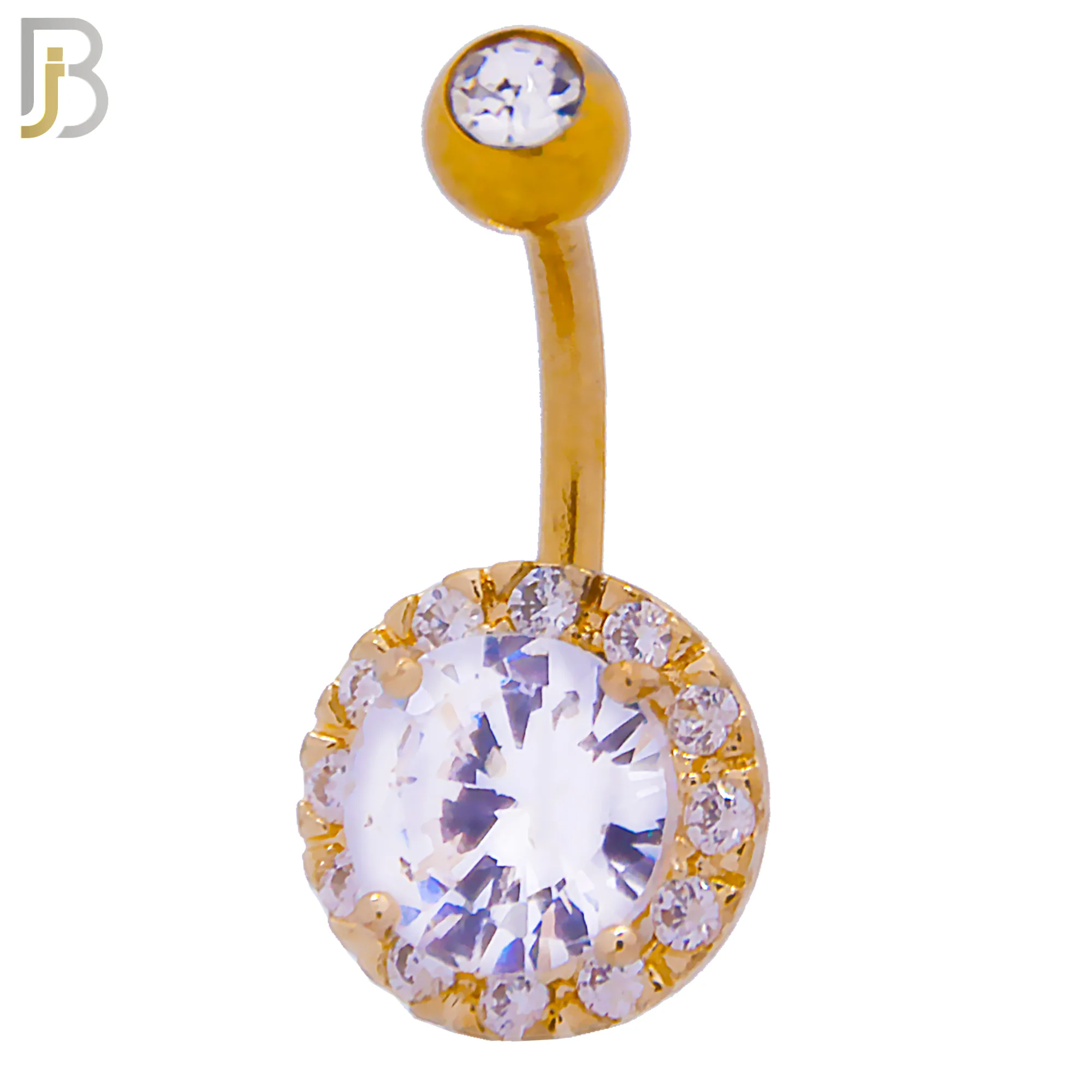 316L Stainless Steel Round Prong with Zircon Around Banana Belly Navel Ring