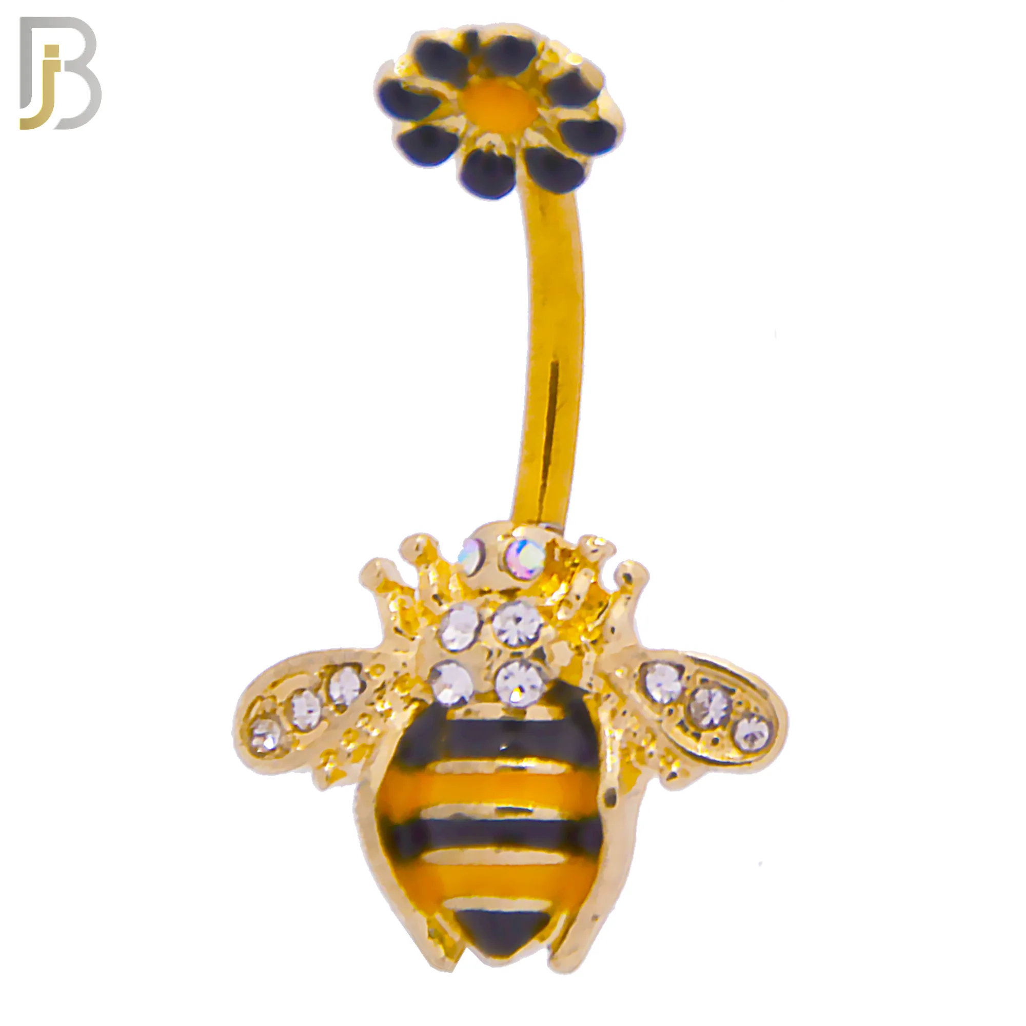 316L Stainless Steel Bee with Flower Top Banana Belly Navel Ring