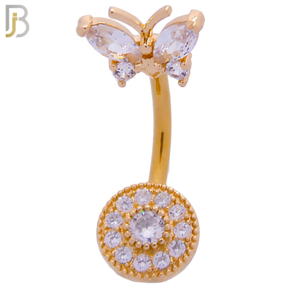 NB30 – 316L Stainless Steel Round with CZ and Butterfly Top Banana Belly Navel Ring