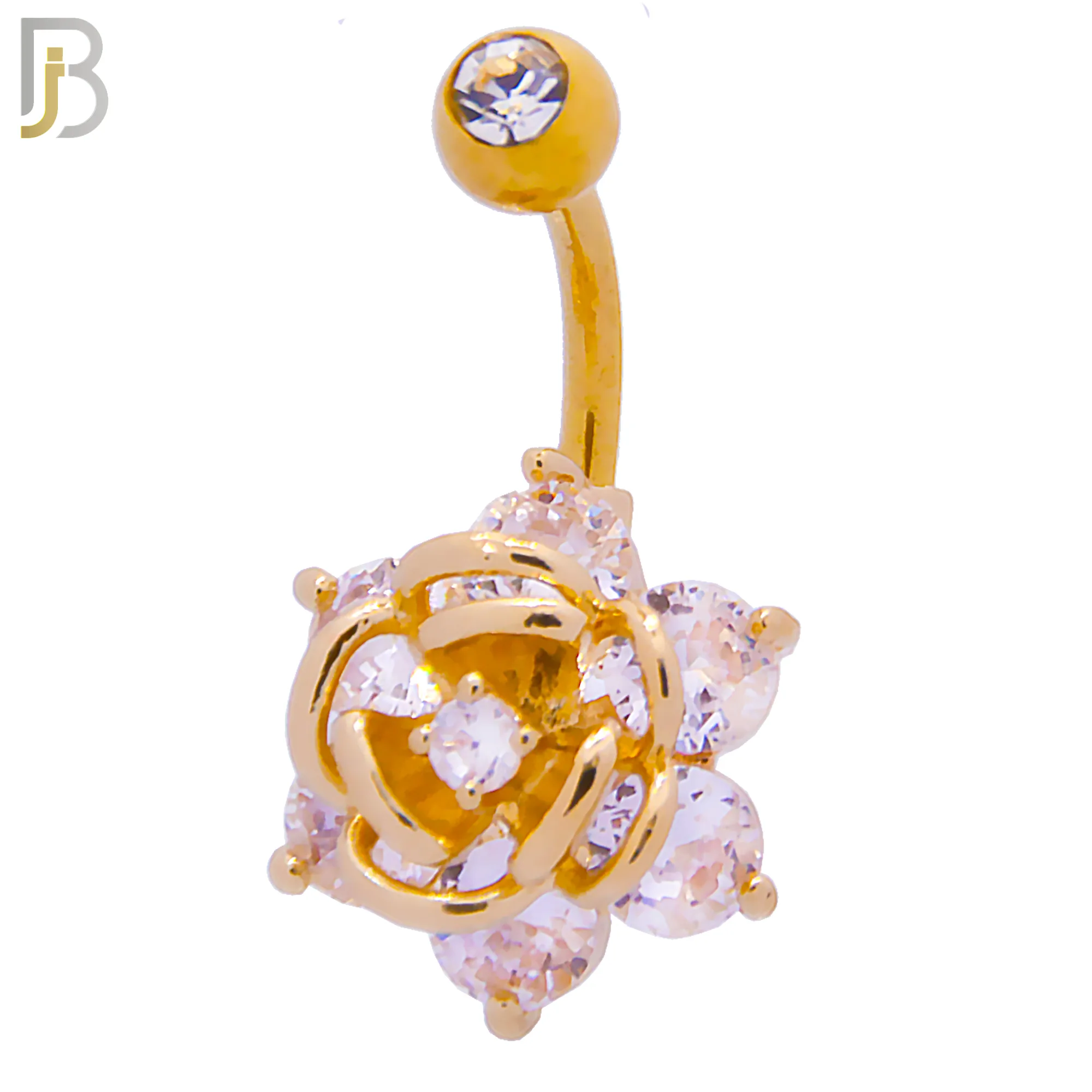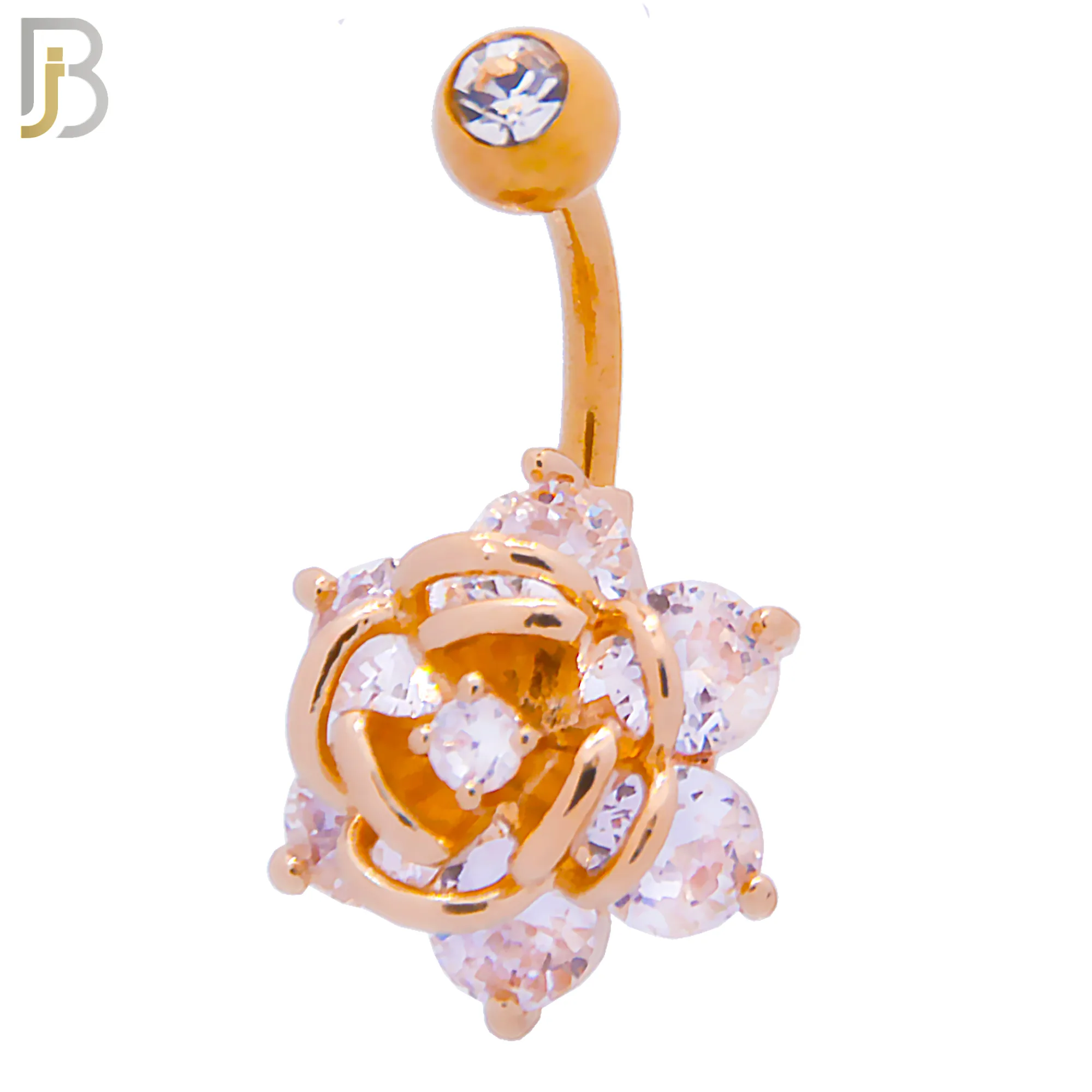 316L Stainless Steel Rose Flower Zircon Banana Belly Navel Ring