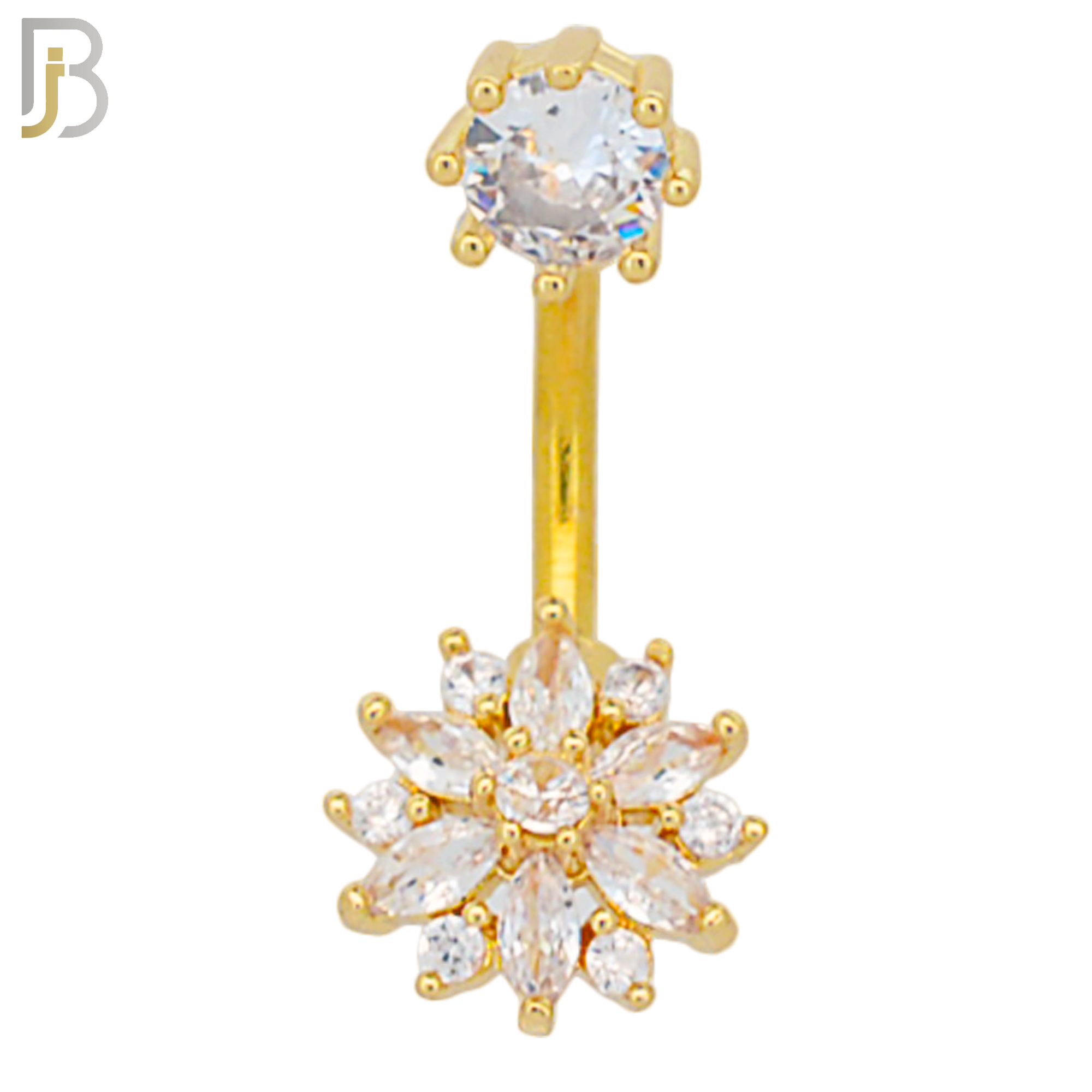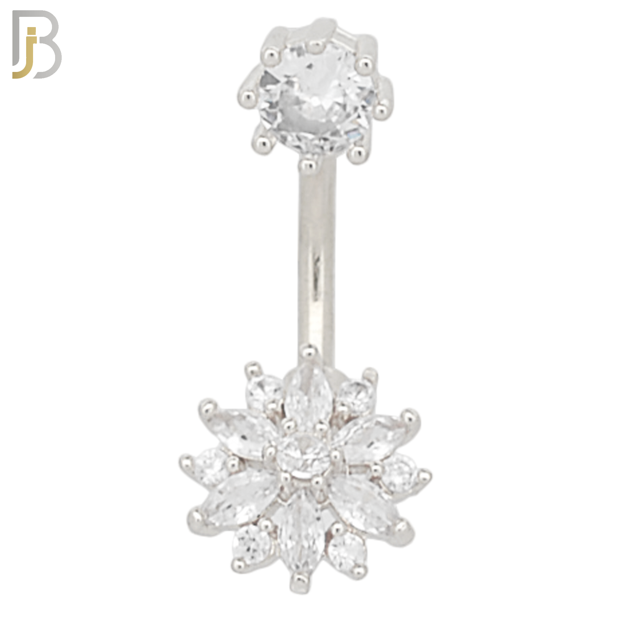 NB53 – 316L Stainless Steel Flower with Zircon Design Banana Belly Ring
