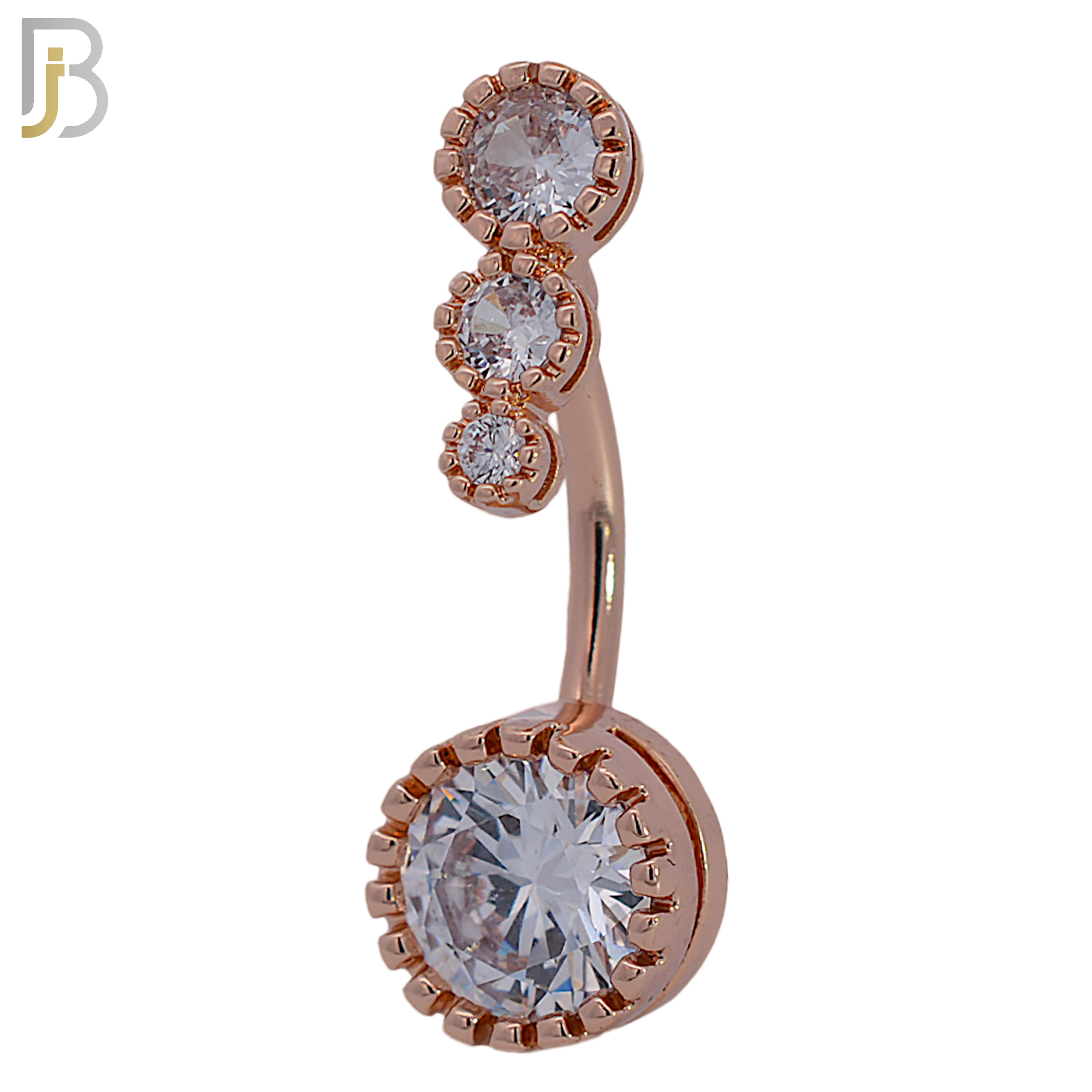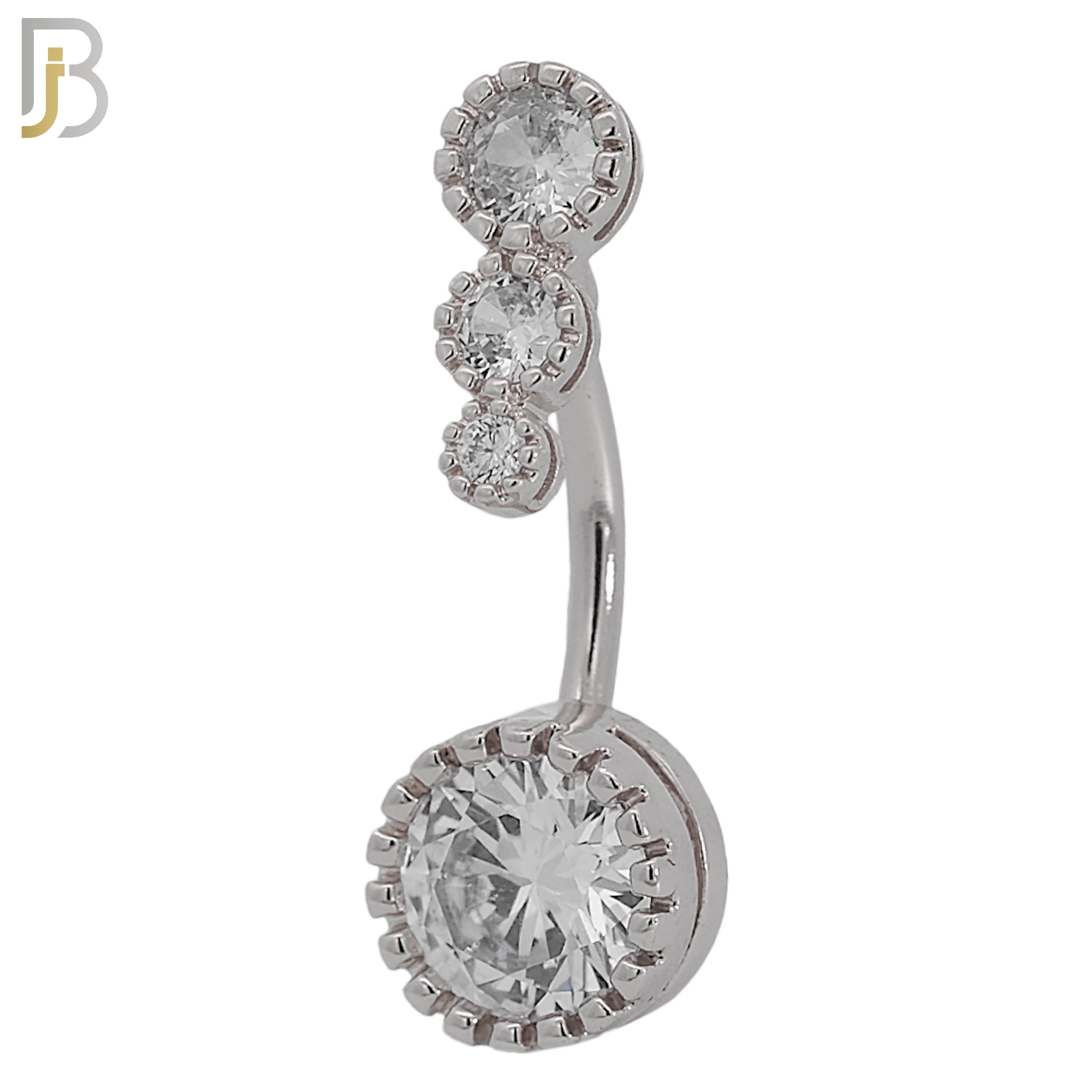 316L Stainless Steel Round Zircon Belly Ring with Triple Round CZ Tail (1.6 x 10)
