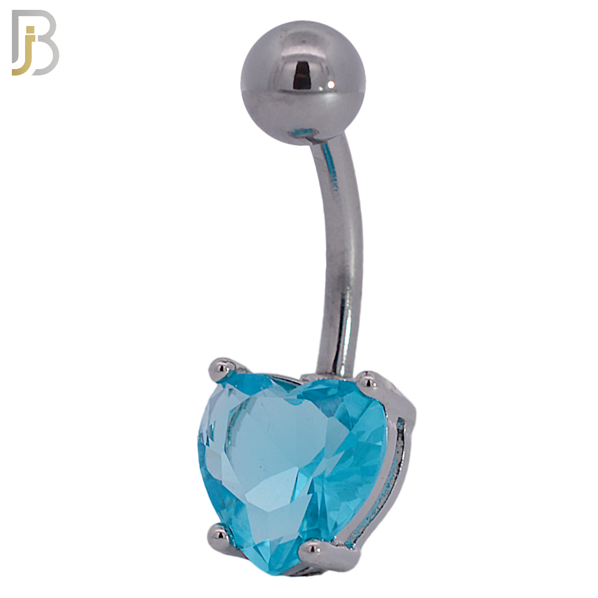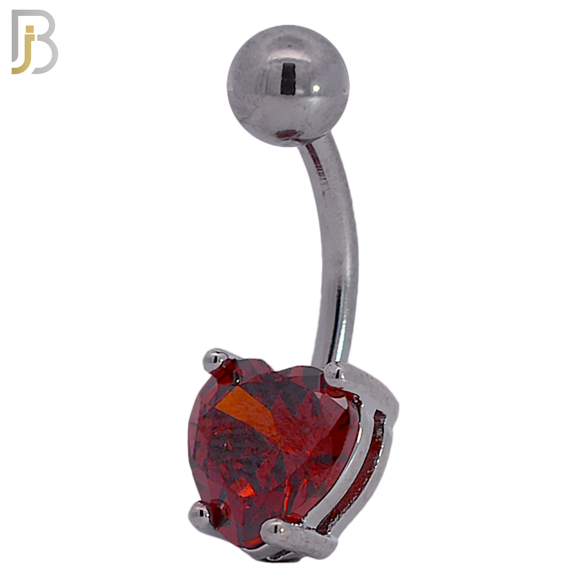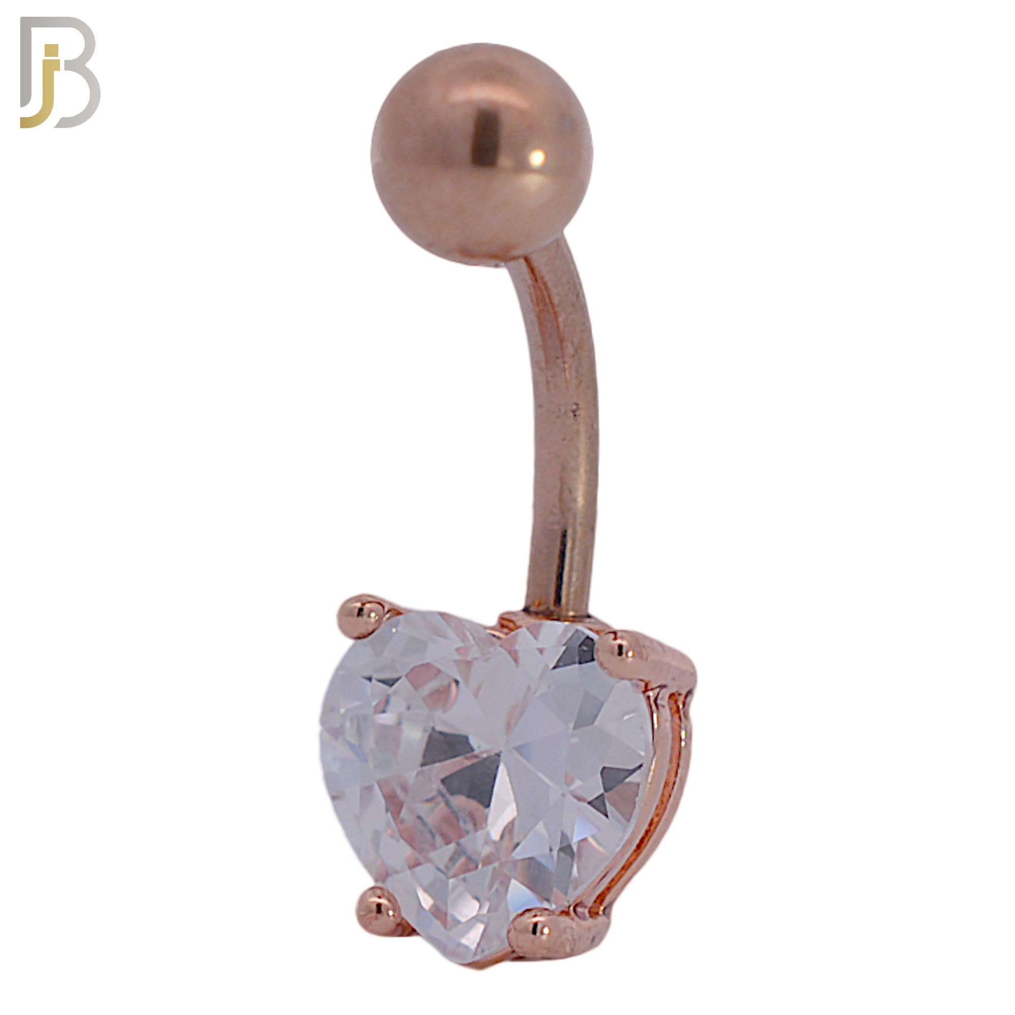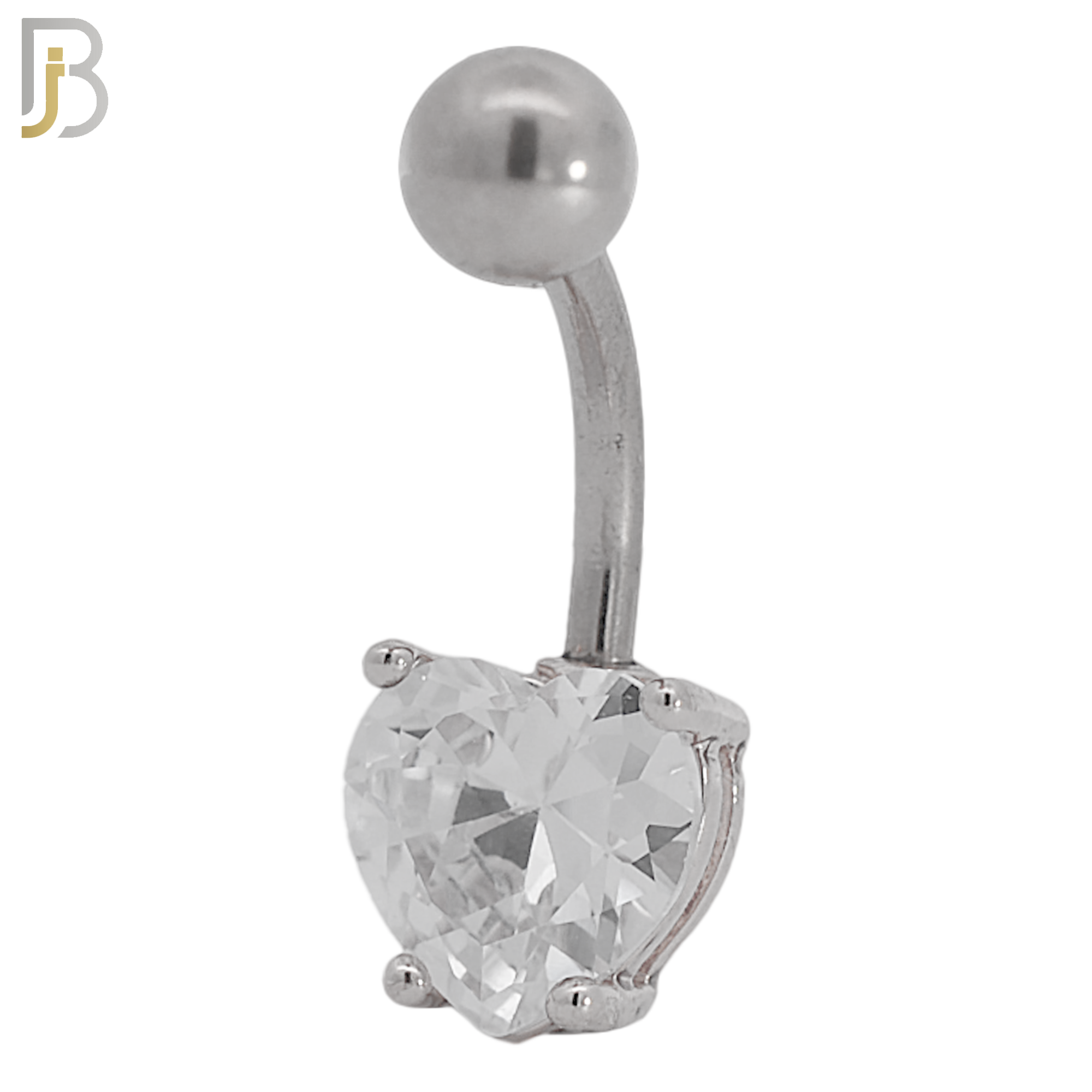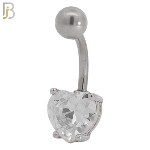16L Stainless Steel Banana Belly Ring with Prong Set 8mm Heart Shaped Cubic Zirconia