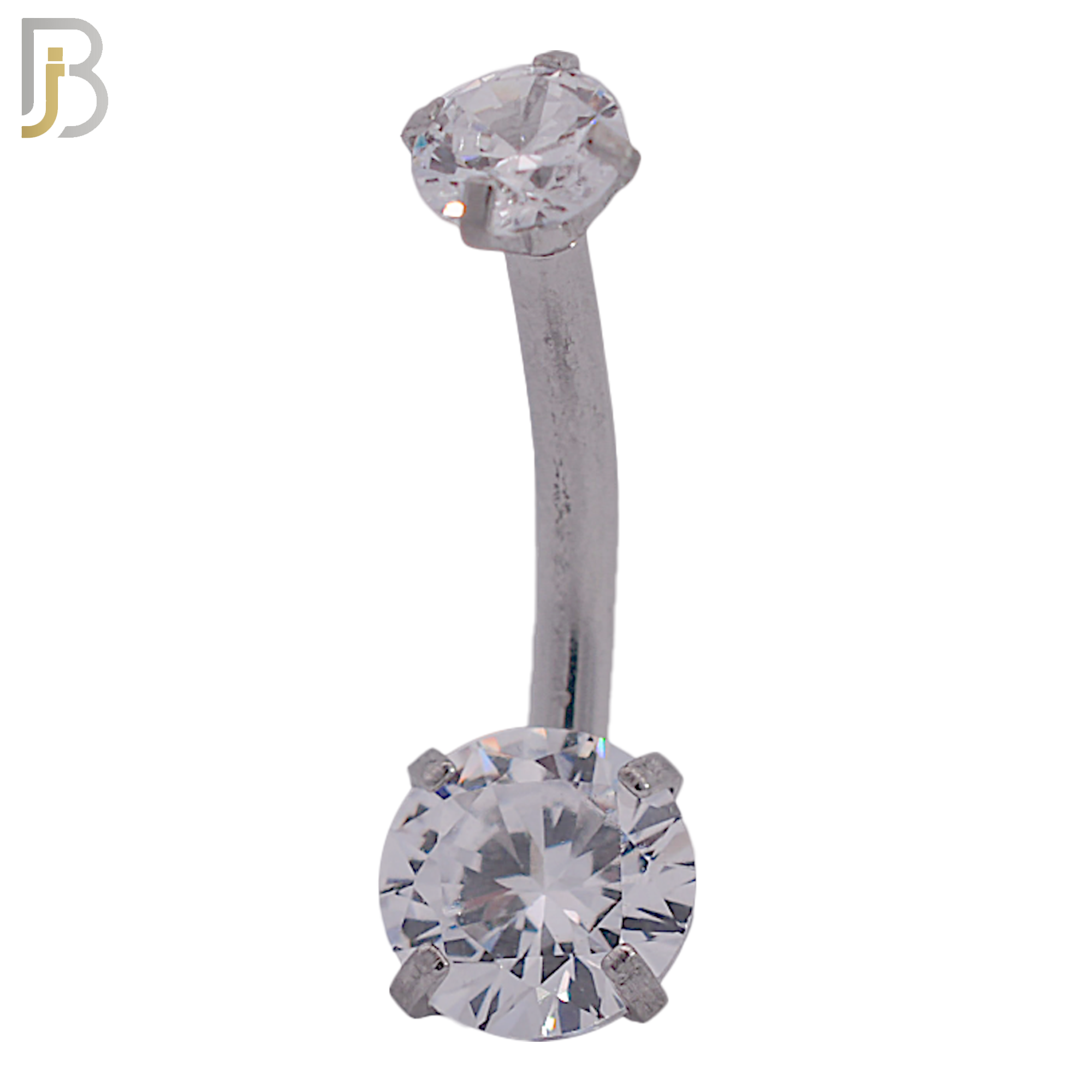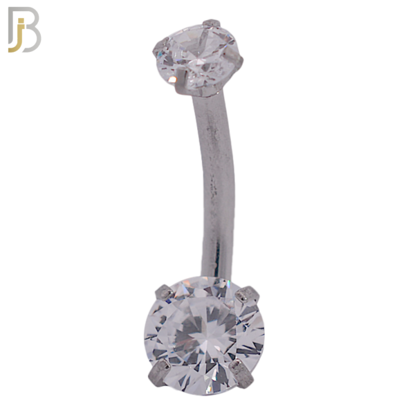 316L Stainless Steel Double Round Zircon in Prong Setting Belly Ring and 5mm Screw Ball (1.6 x 10 x 6cz x 4cz)