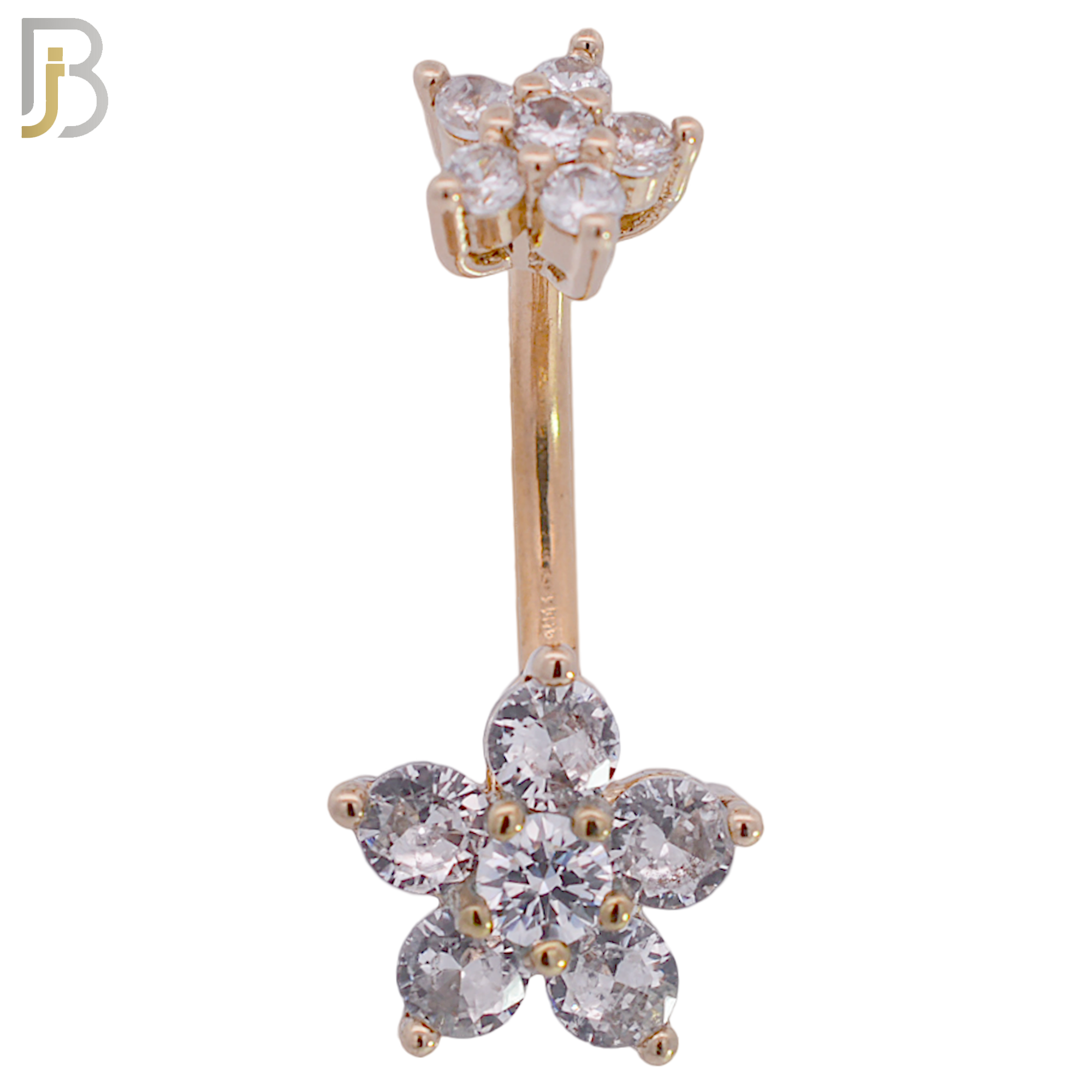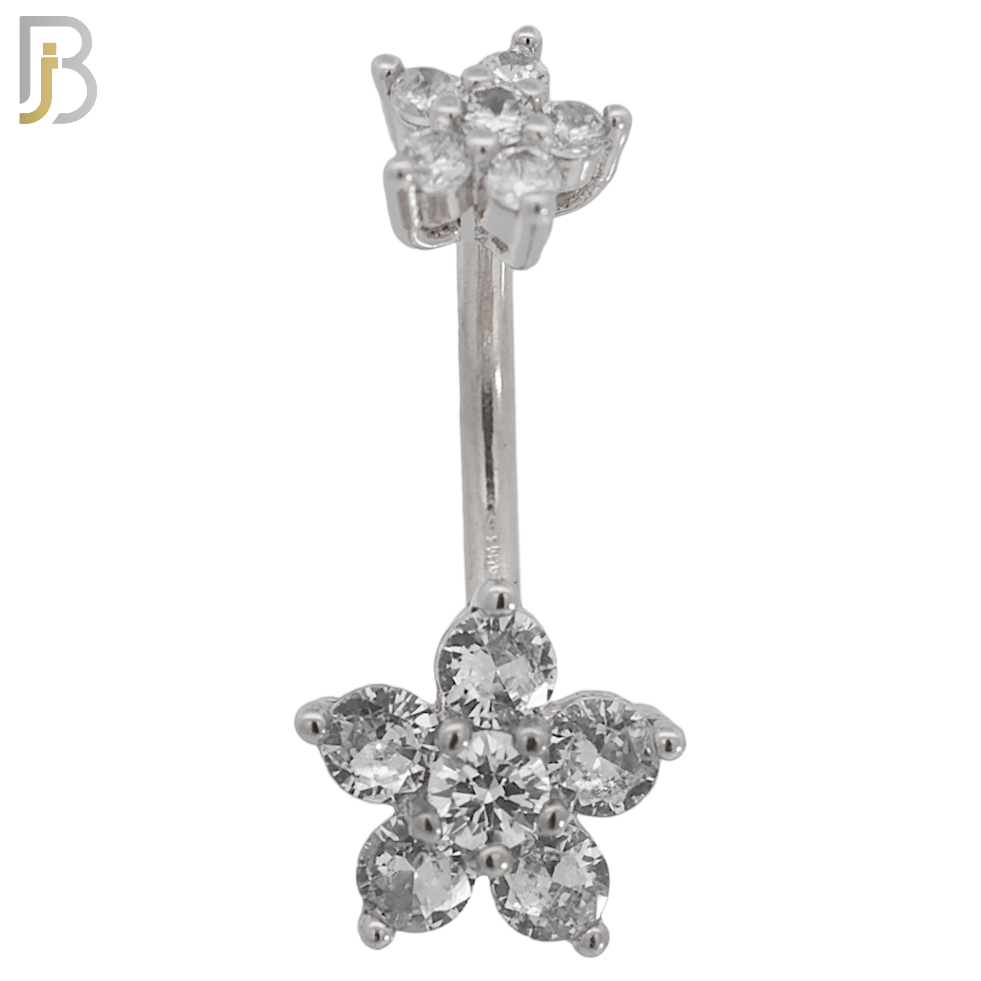 316L Stainless Steel Banana Belly Ring with Double Flower Cubic Zirconia