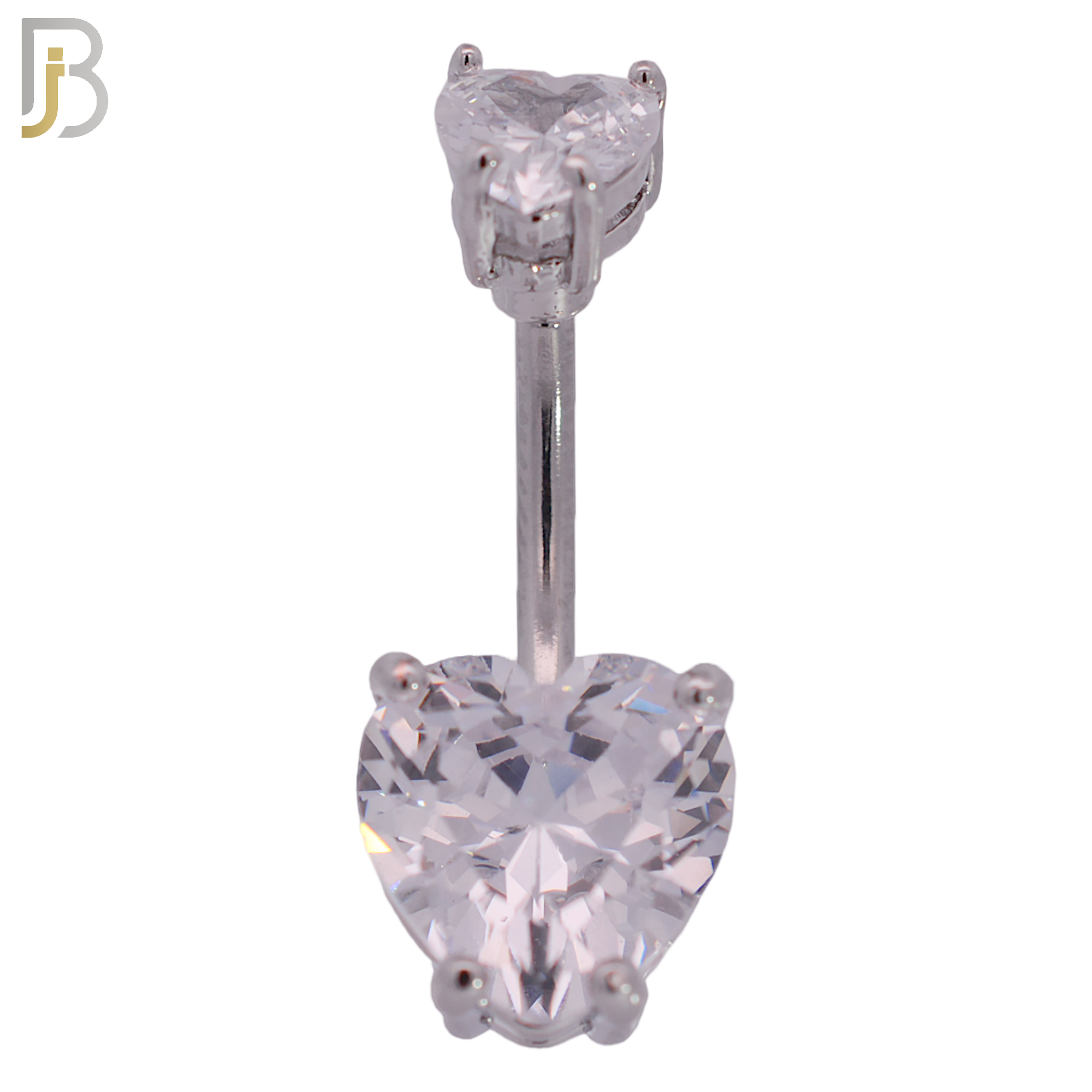 316L Stainless Steel Banana Belly Ring with Prong Set Double Heart Shaped Cubic Zirconia