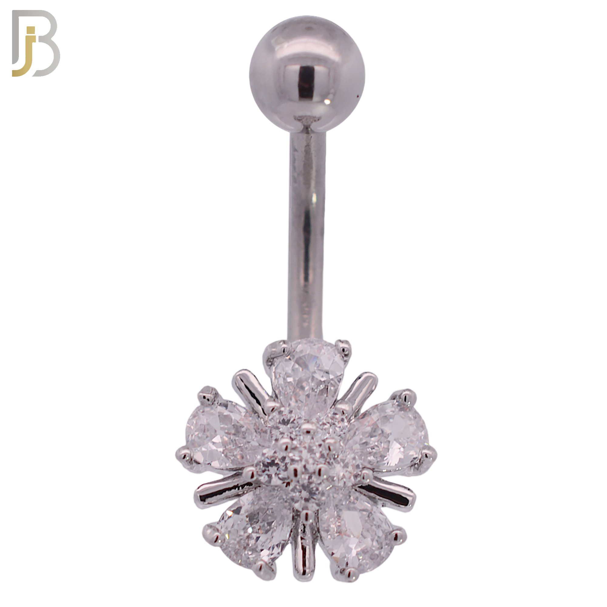 316L Stainless Steel Banana Belly Ring with Flower Cubic Zirconia