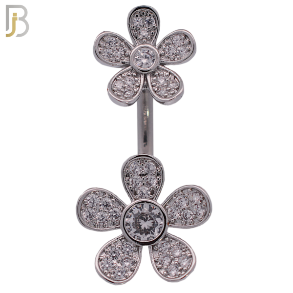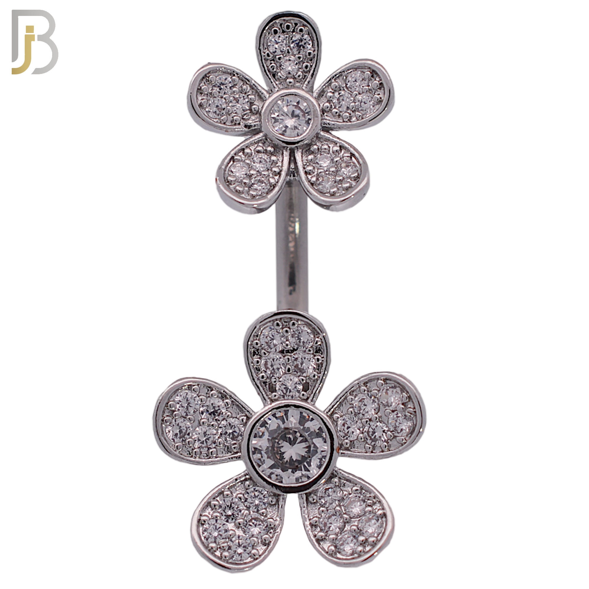NB78 – 316L Stainless Steel Banana Belly Ring with Double Flower with Multi Cubic Zirconia