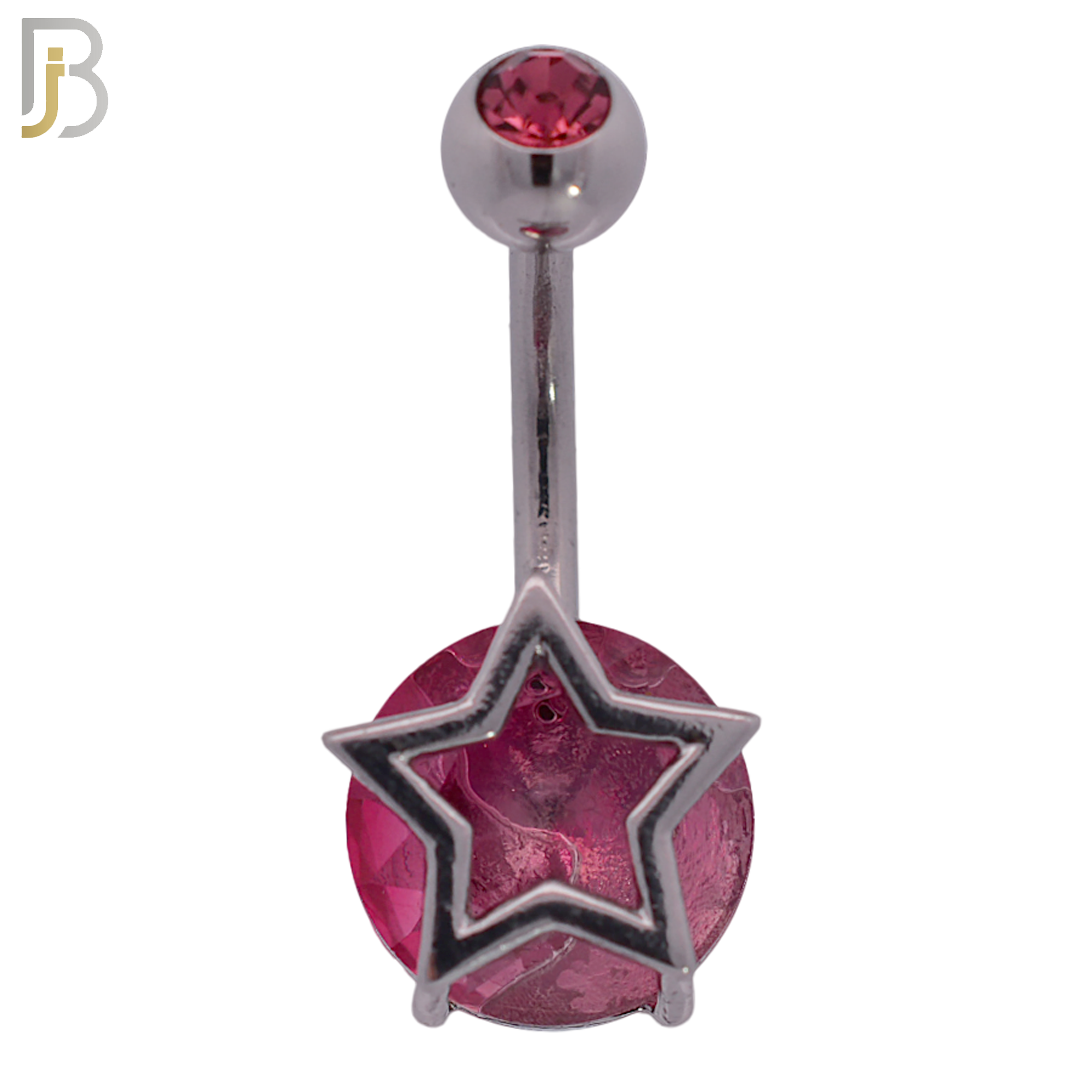316L Stainless Steel Round Shaped CZ and Hollow Star Strap Frame Belly Ring