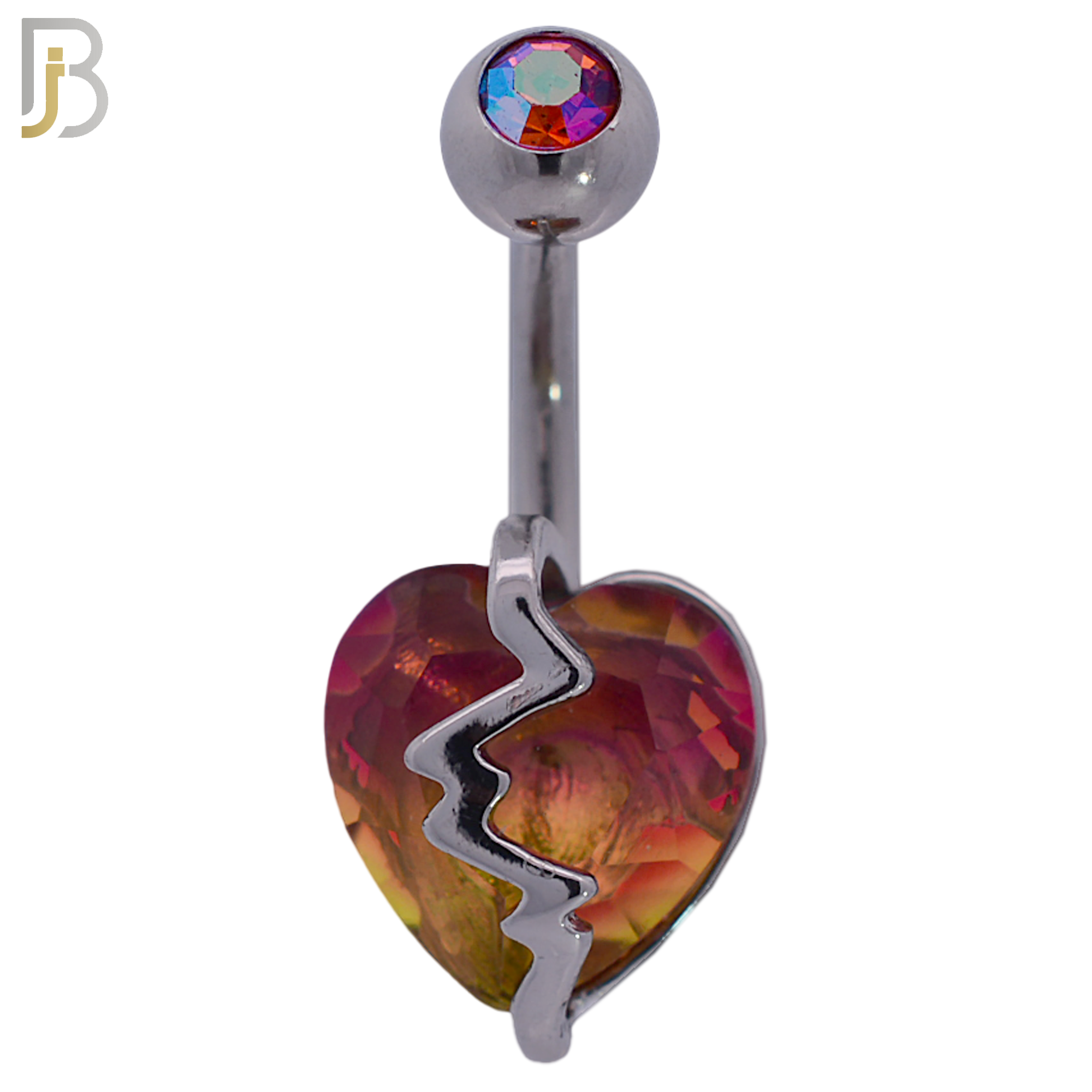 316L Stainless Steel Heart Shaped CZ and Vertical Heart Beat Strap Belly Ring and 5mm Screw Ball