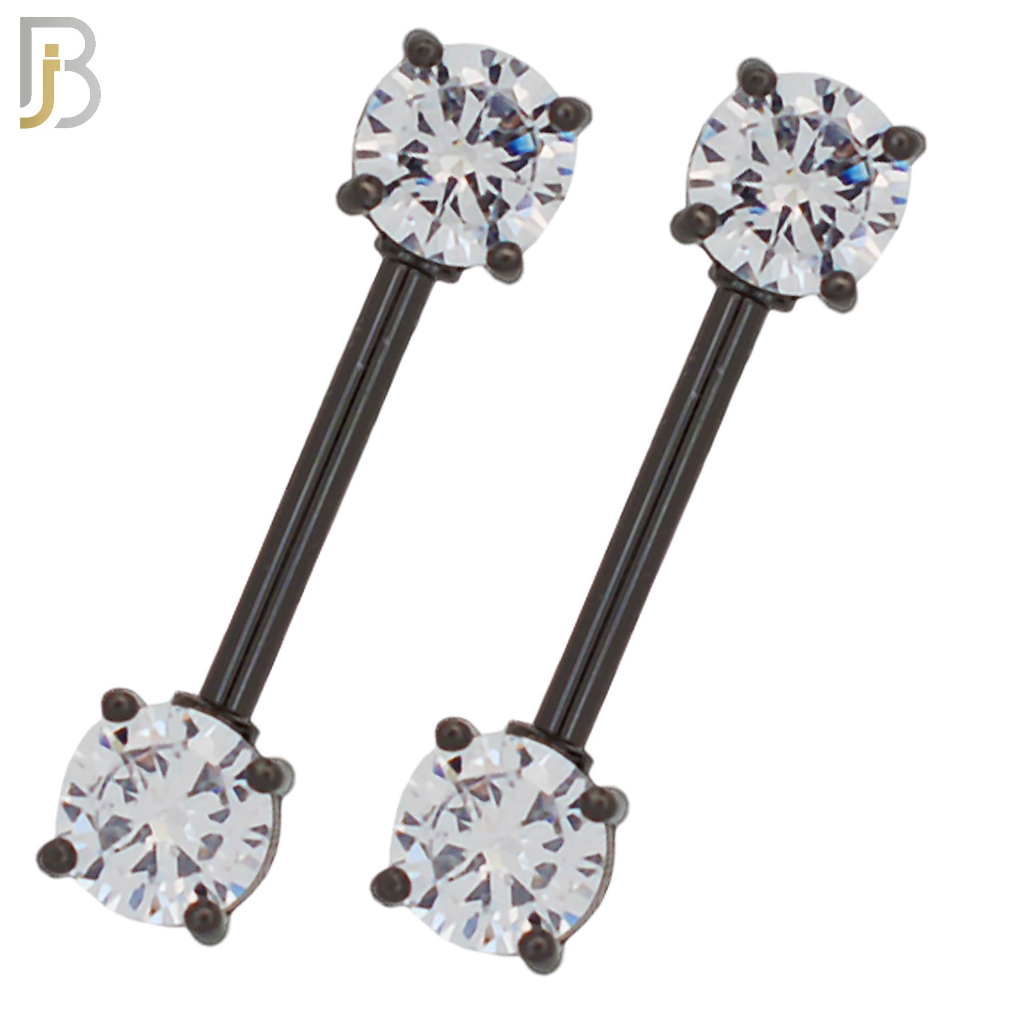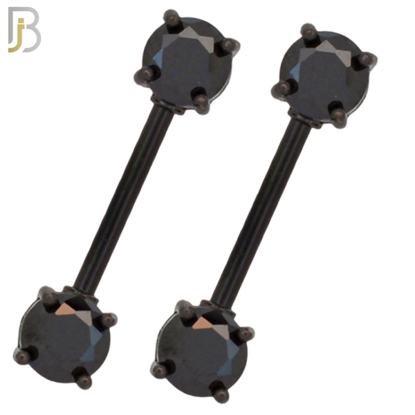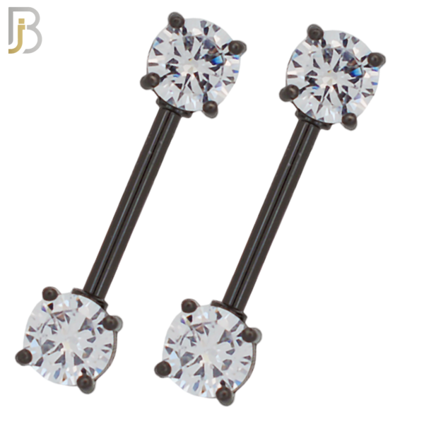 316L Surgical Steel Black Plated Screw Prong Round Zircon Nipple Ring Piercing