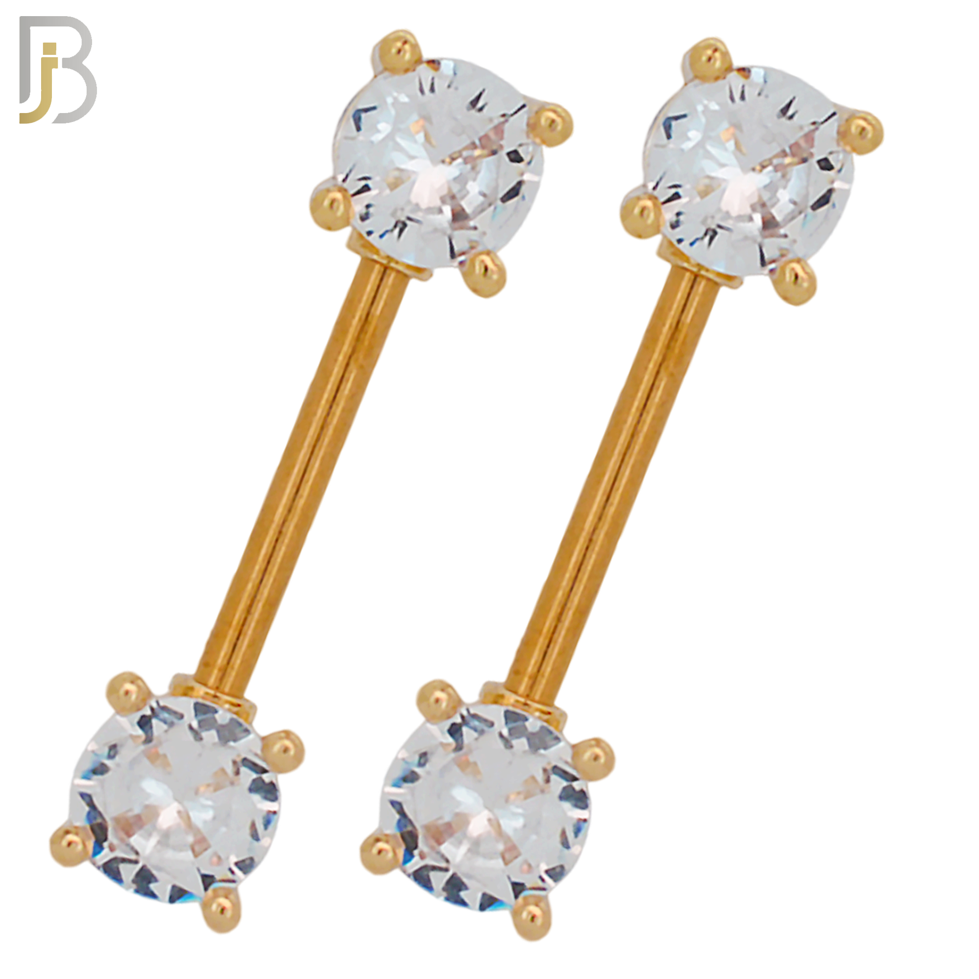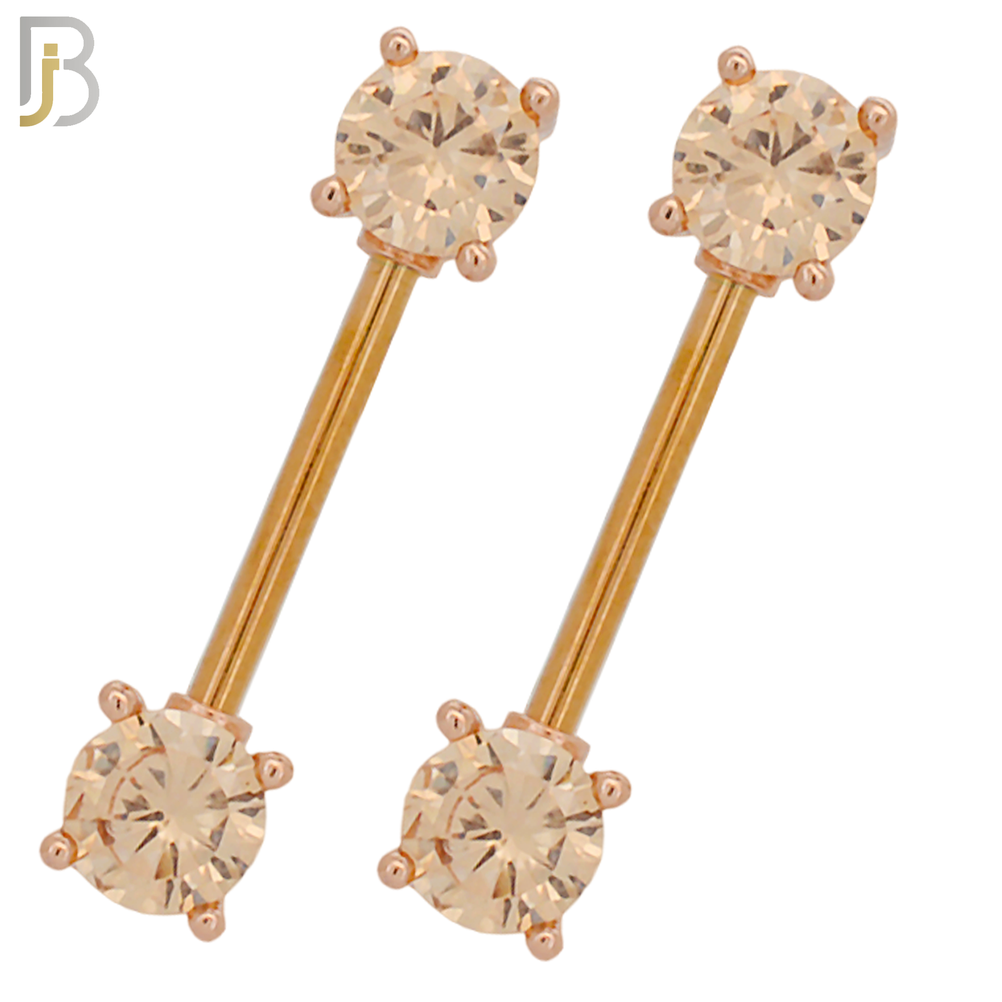 NP02R – 316L Surgical Steel Rose Gold Plated Screw Prong Round Zircon Nipple Ring Piercing