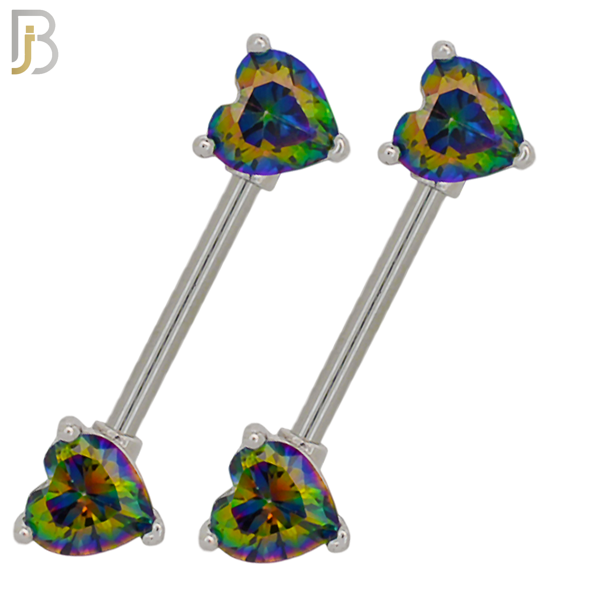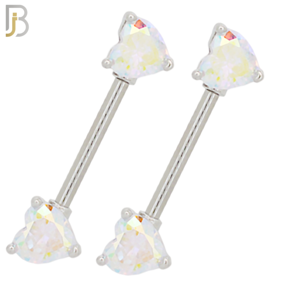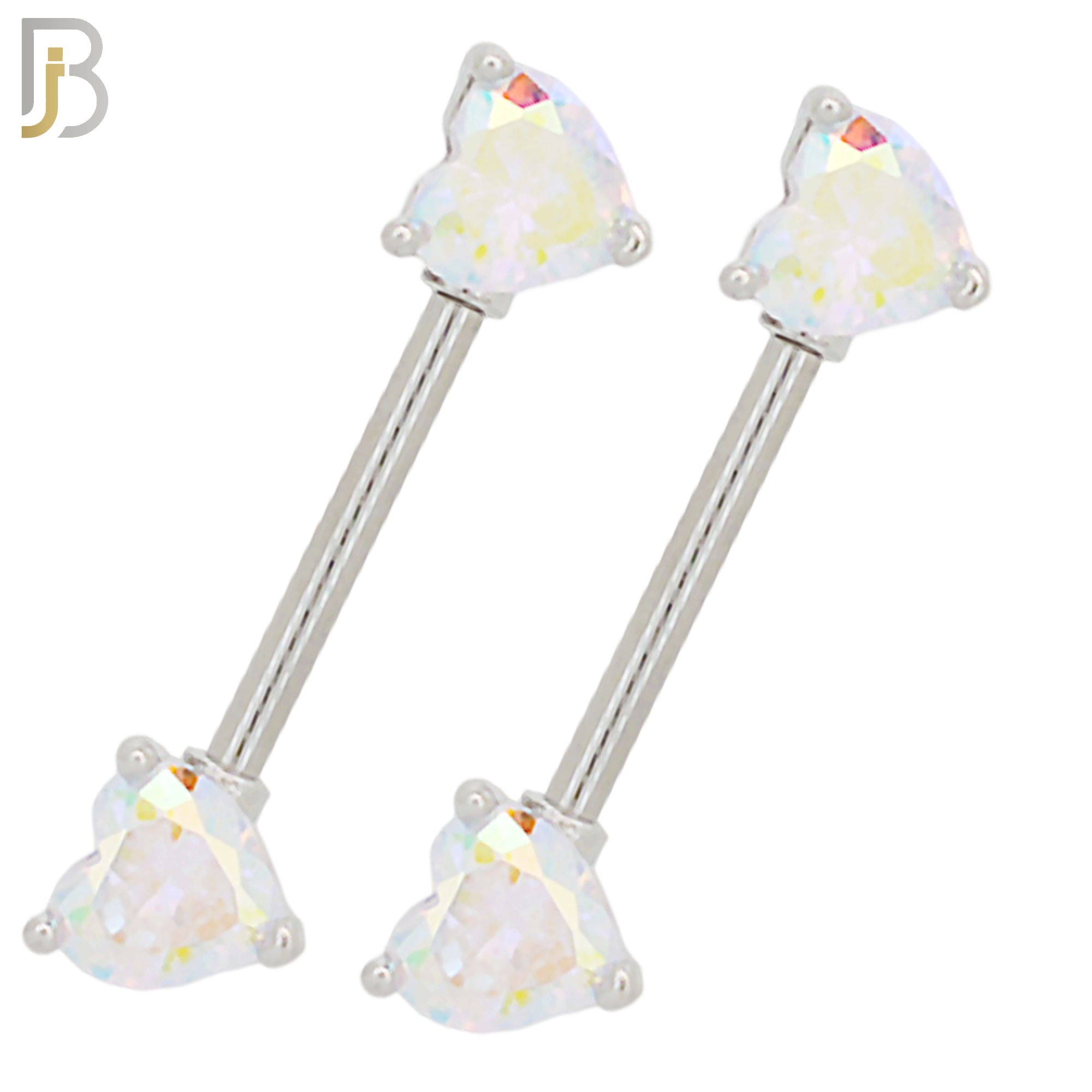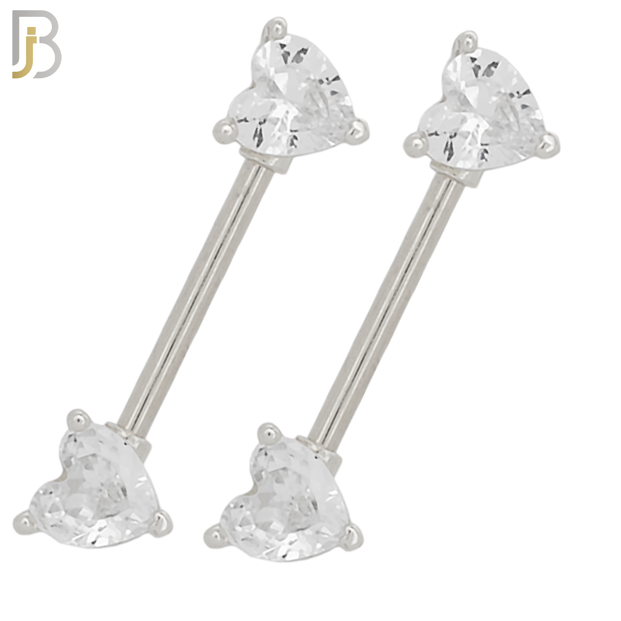 316L Surgical Steel Screw Prong Heart Zircon Nipple Ring Piercing