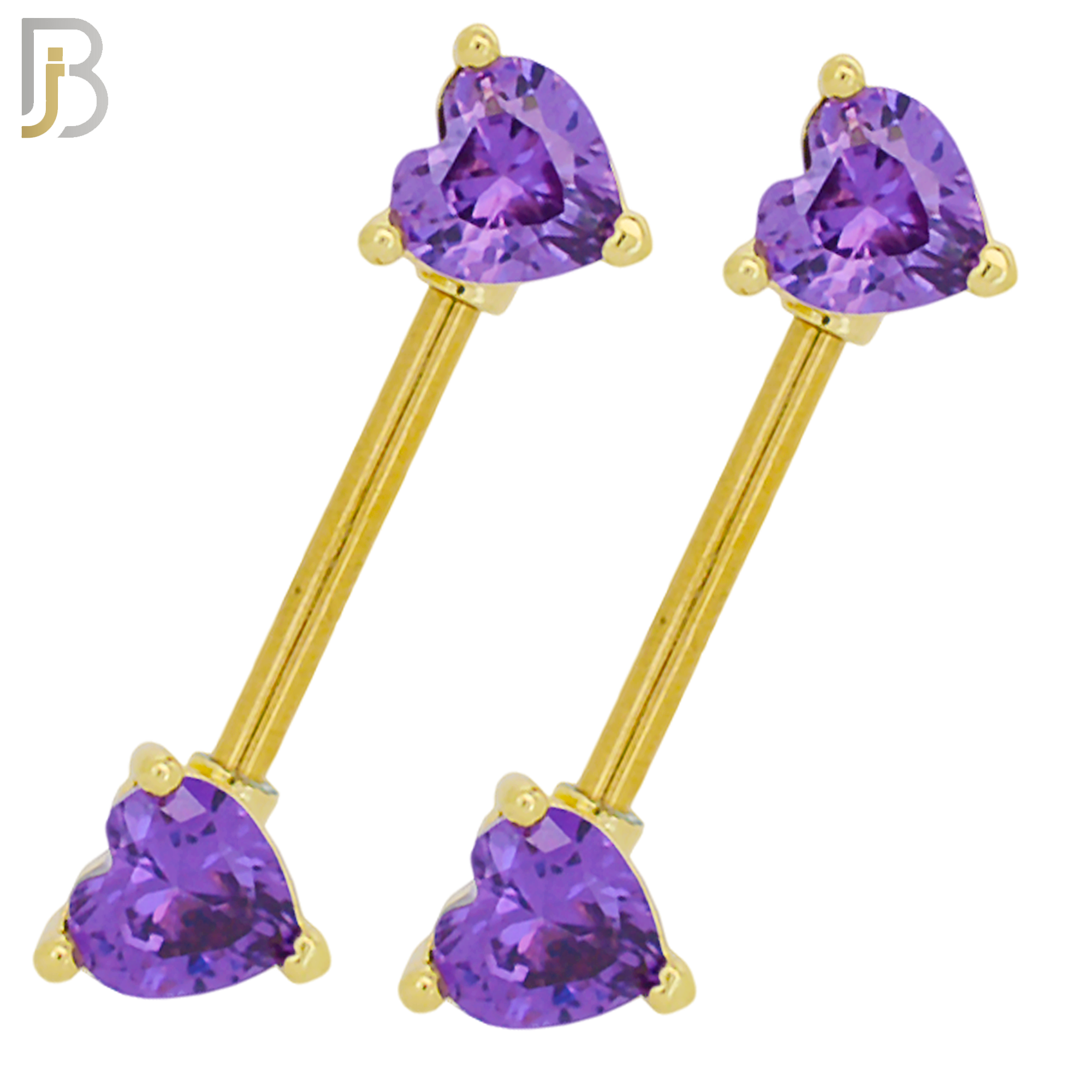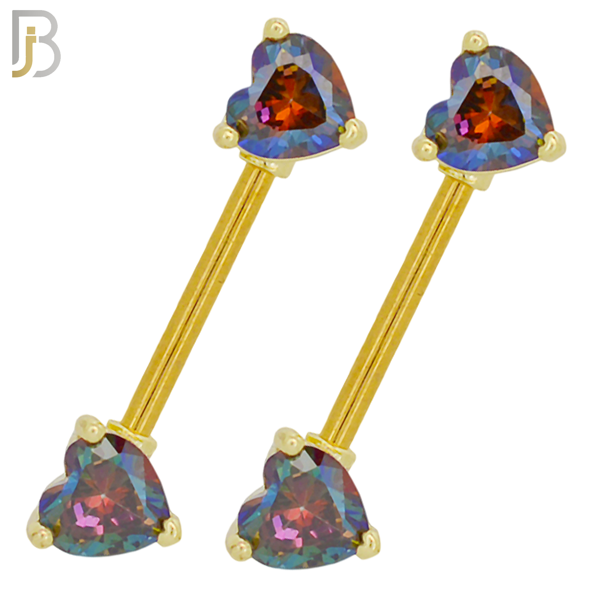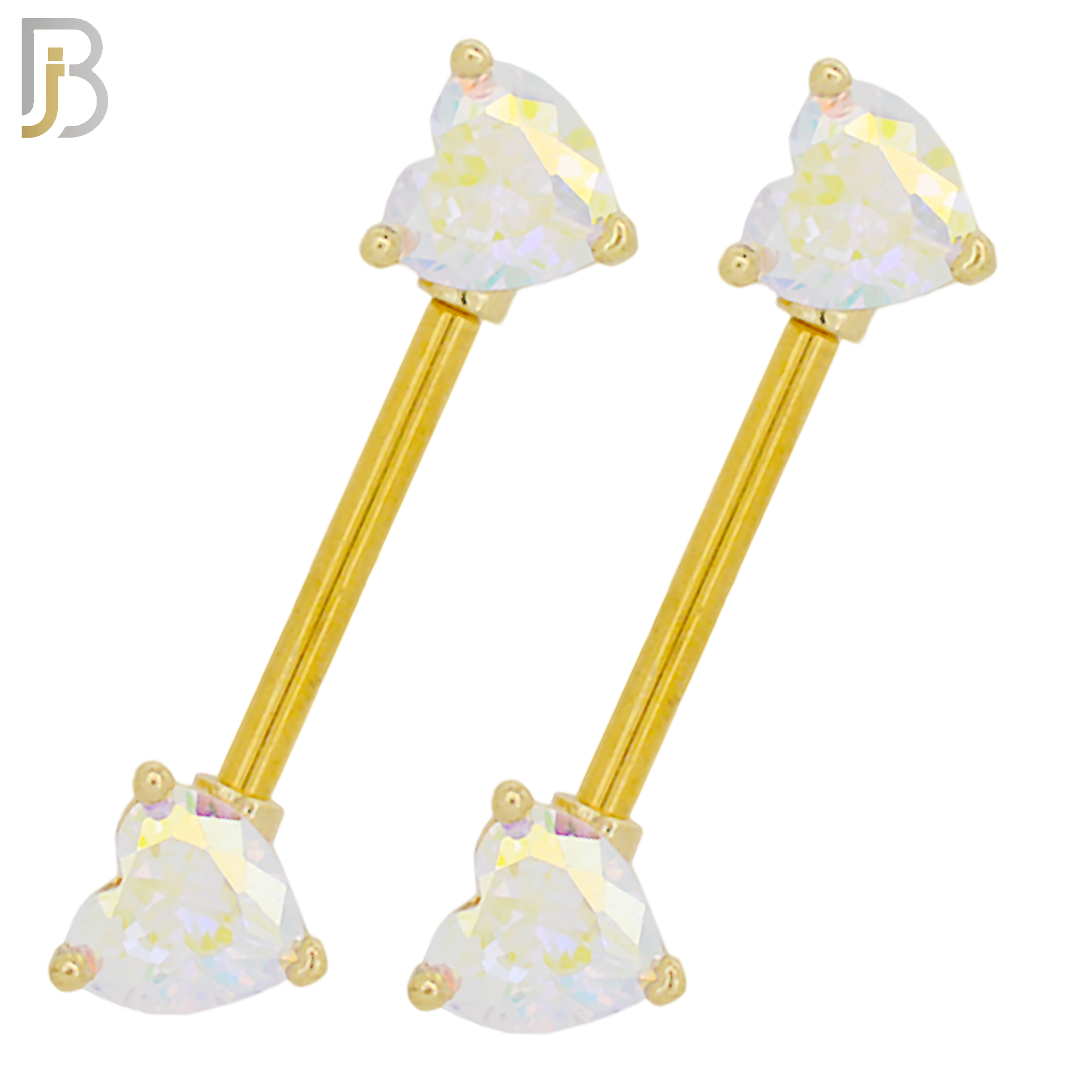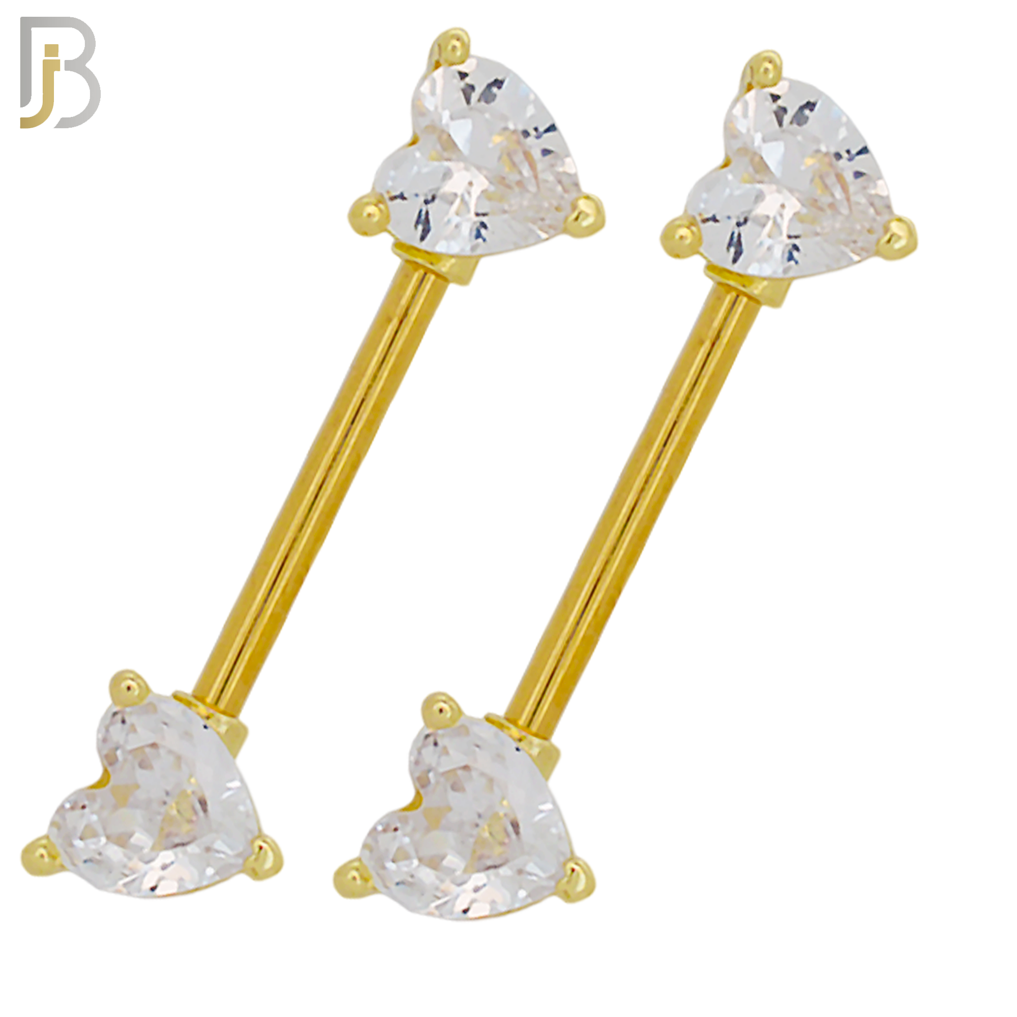 316L Surgical Steel Gold Plated Screw Prong Heart Zircon Nipple Ring Piercing