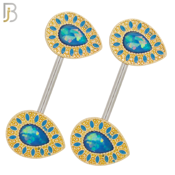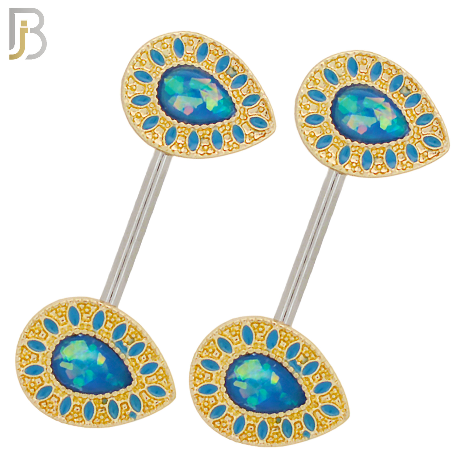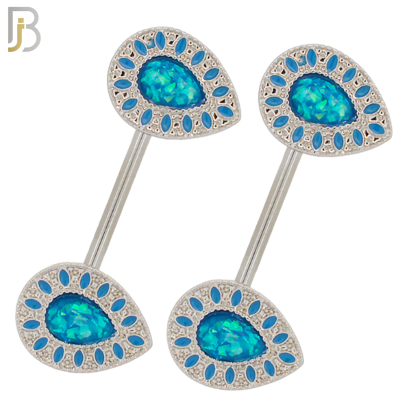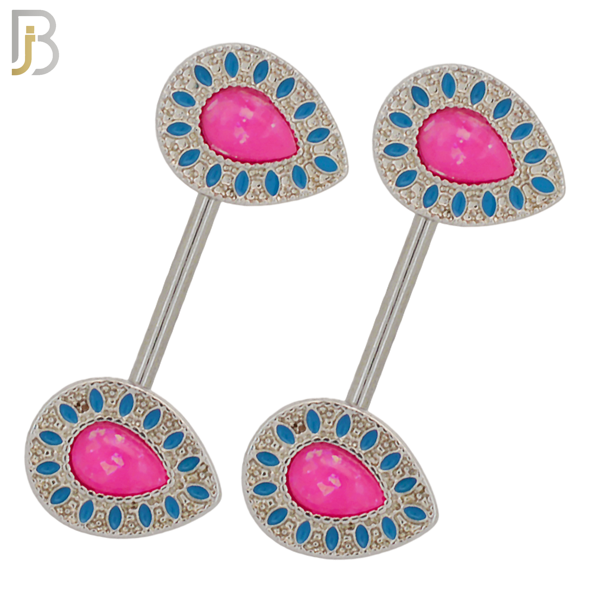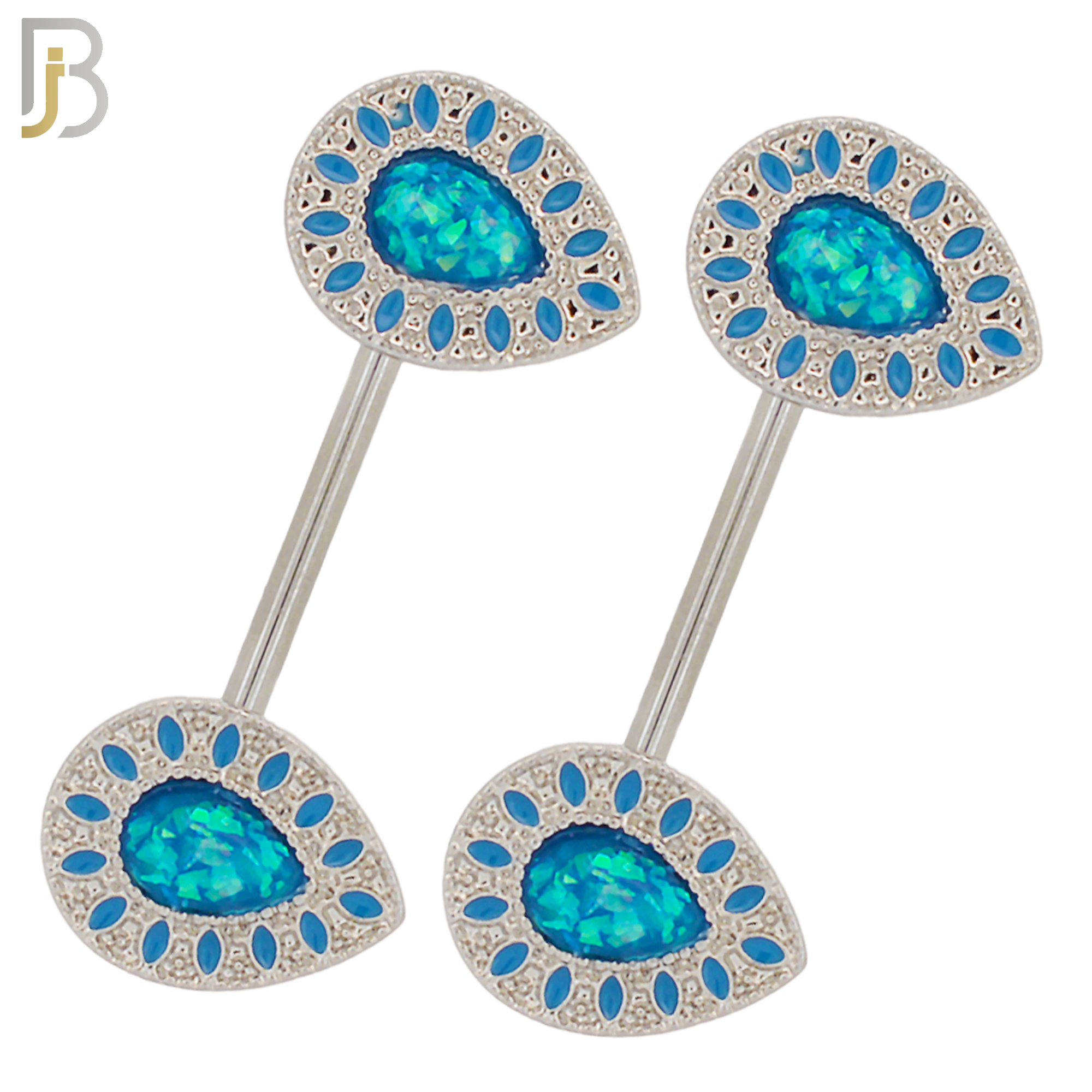 316L Surgical Steel Screw Teardrop Opal with Oval Enamel Nipple Ring Piercing