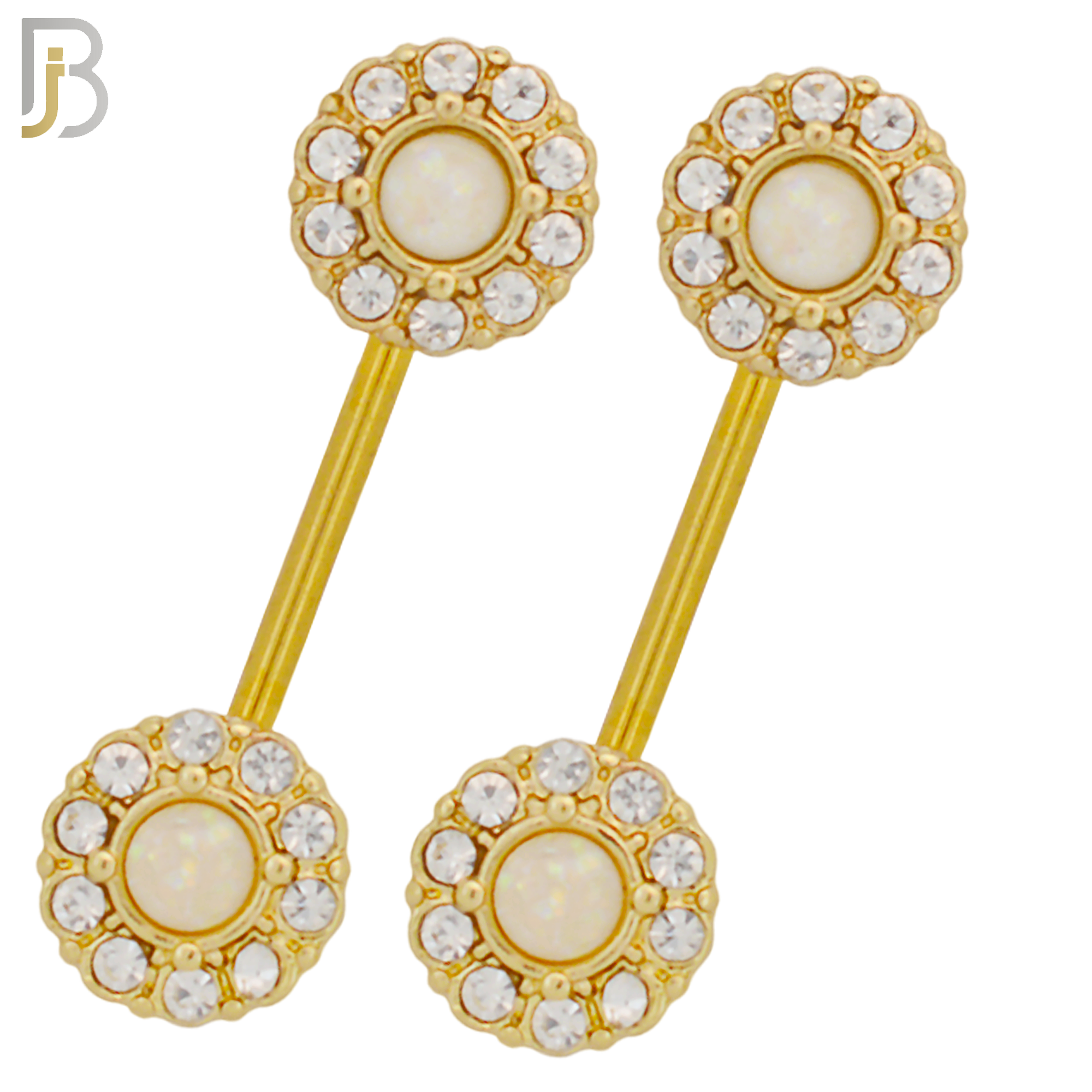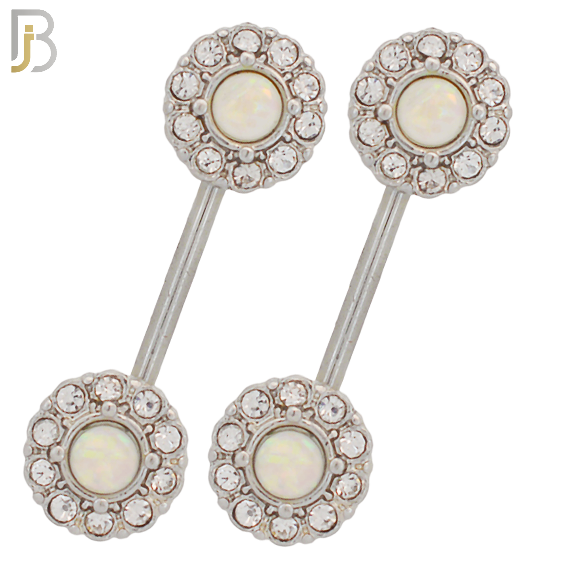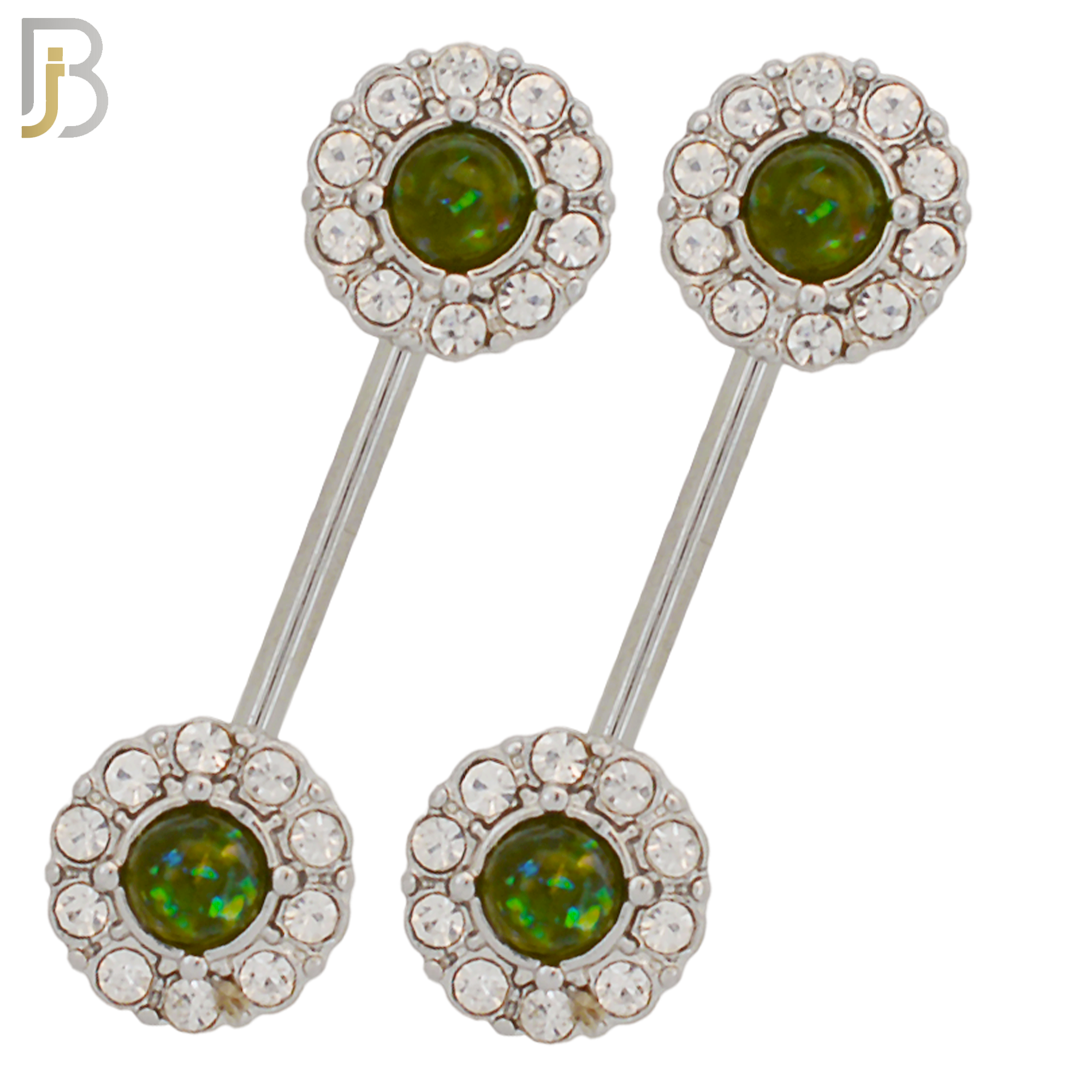 316L Surgical Steel Screw Round Opal with Multi Zircon Nipple Ring Piercing
