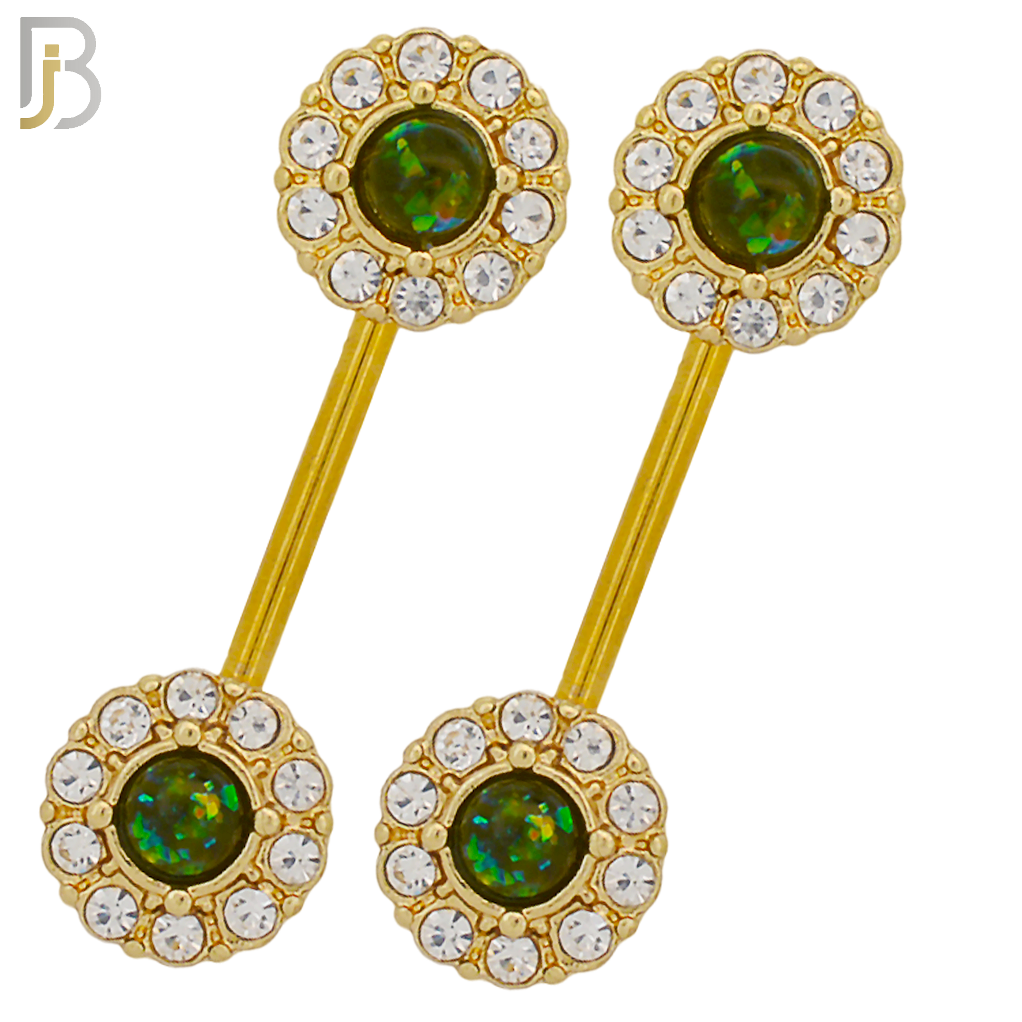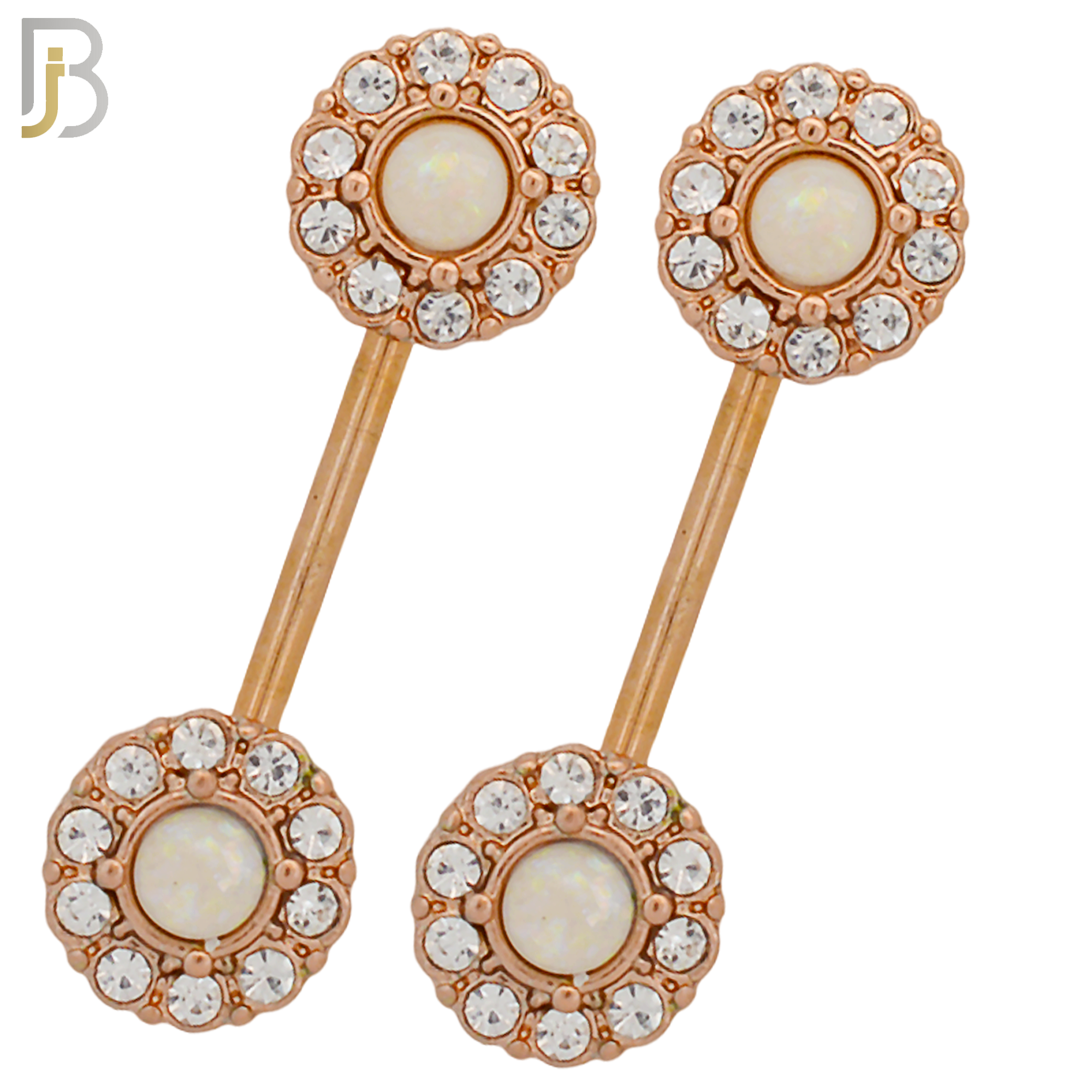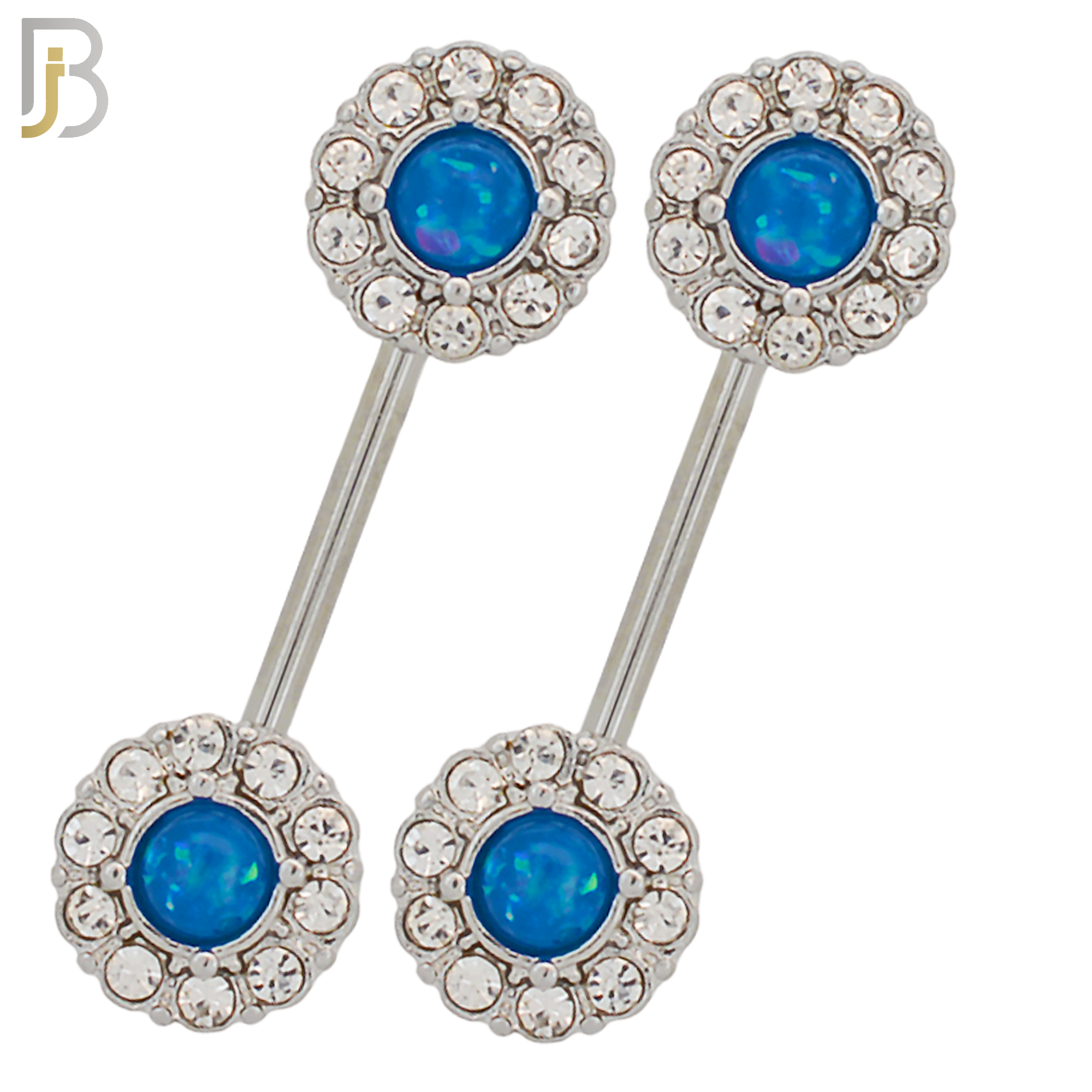 316L Surgical Steel Screw Round Opal with Multi Zircon Nipple Ring Piercing