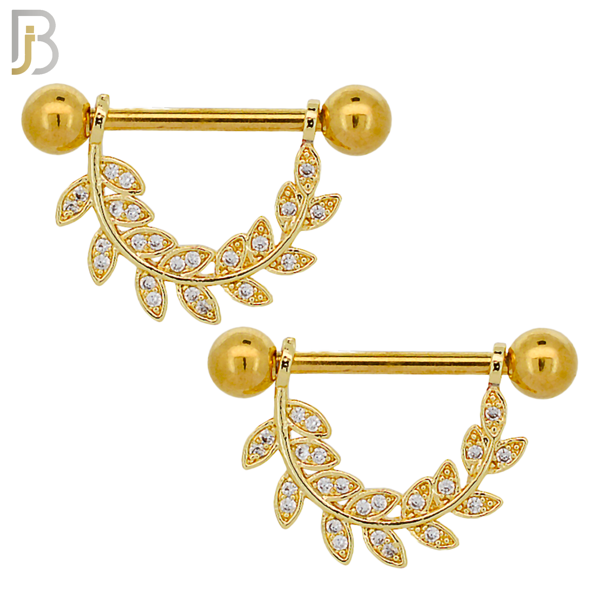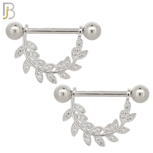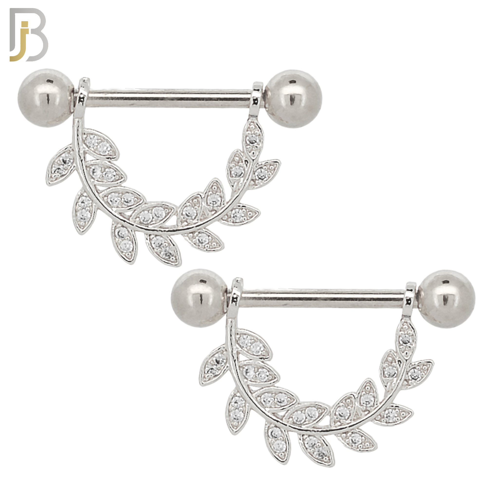 NP24 – 316L Surgical Steel Screw Bar with Vine Leaf Zircon Pair
